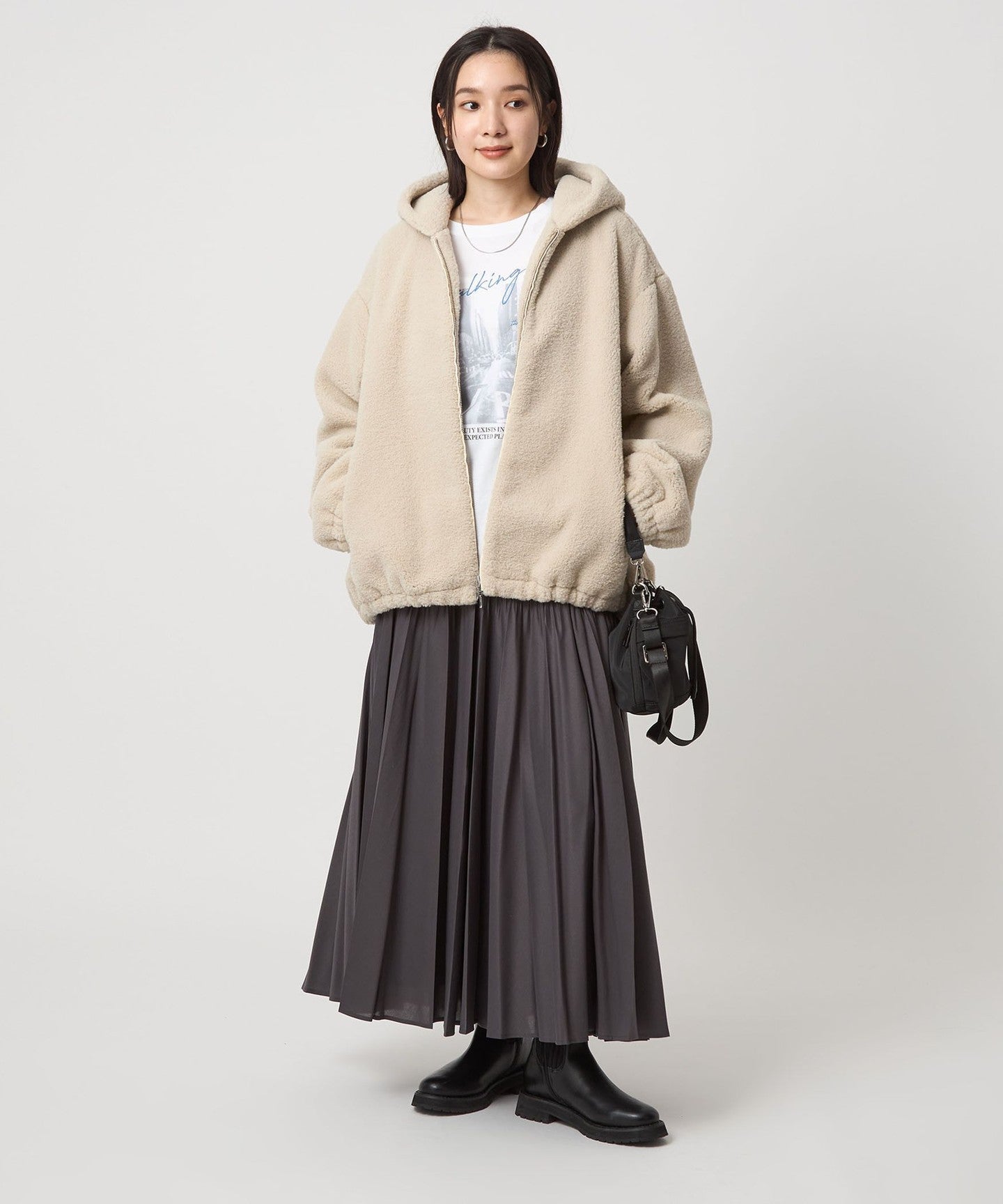 It goes well with slim pants as well as long skirts and other long bottoms.