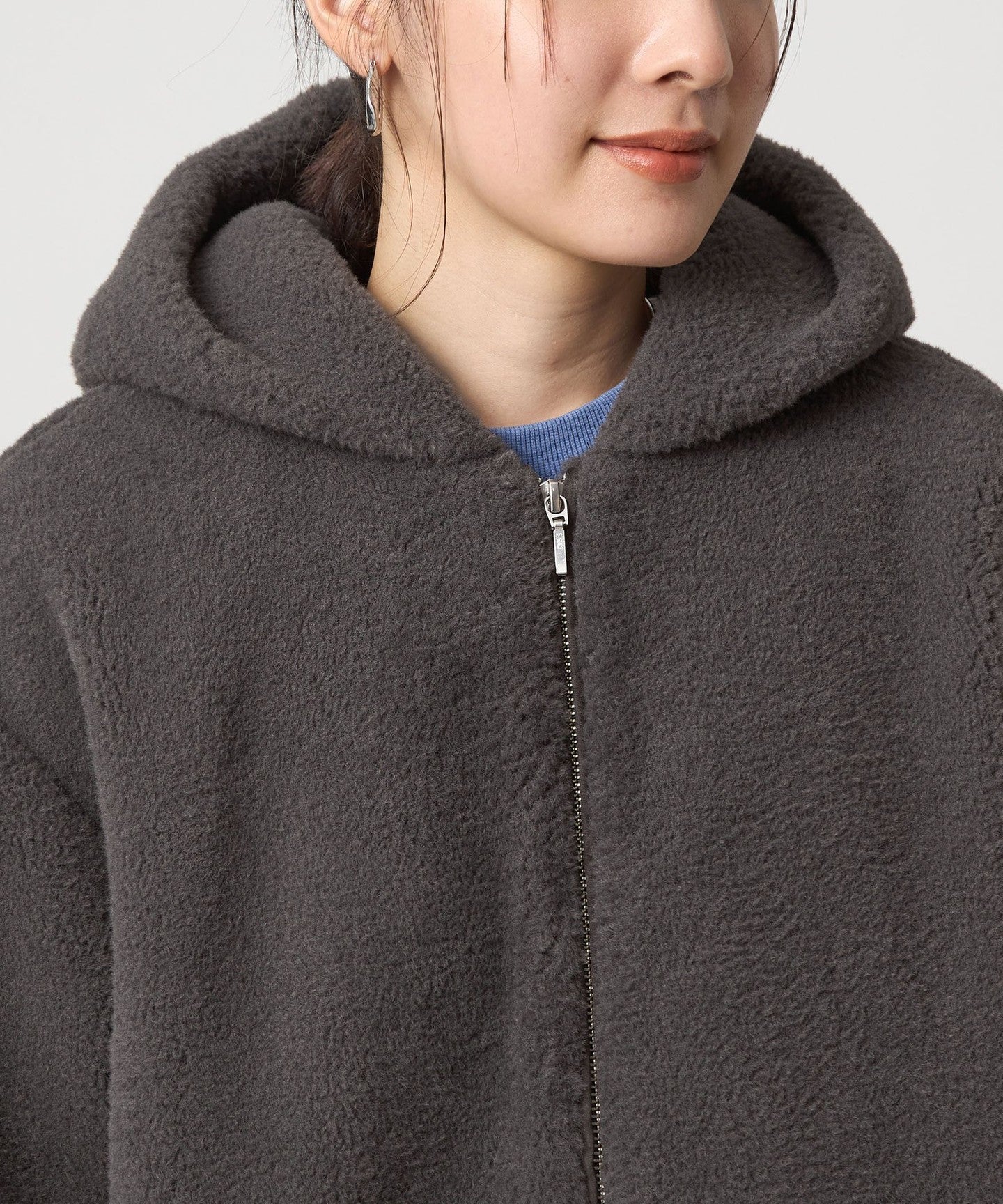 A hooded jacket made of soft, fluffy, and warm material with a fluffy texture.