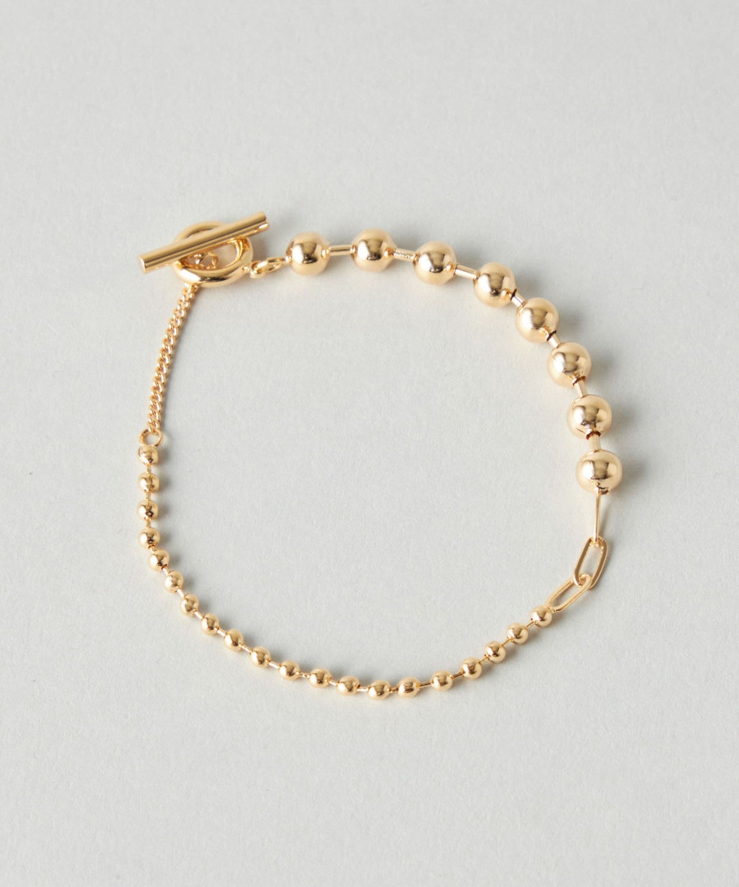 A bracelet that combines ball chains of different sizes and chains of different styles.