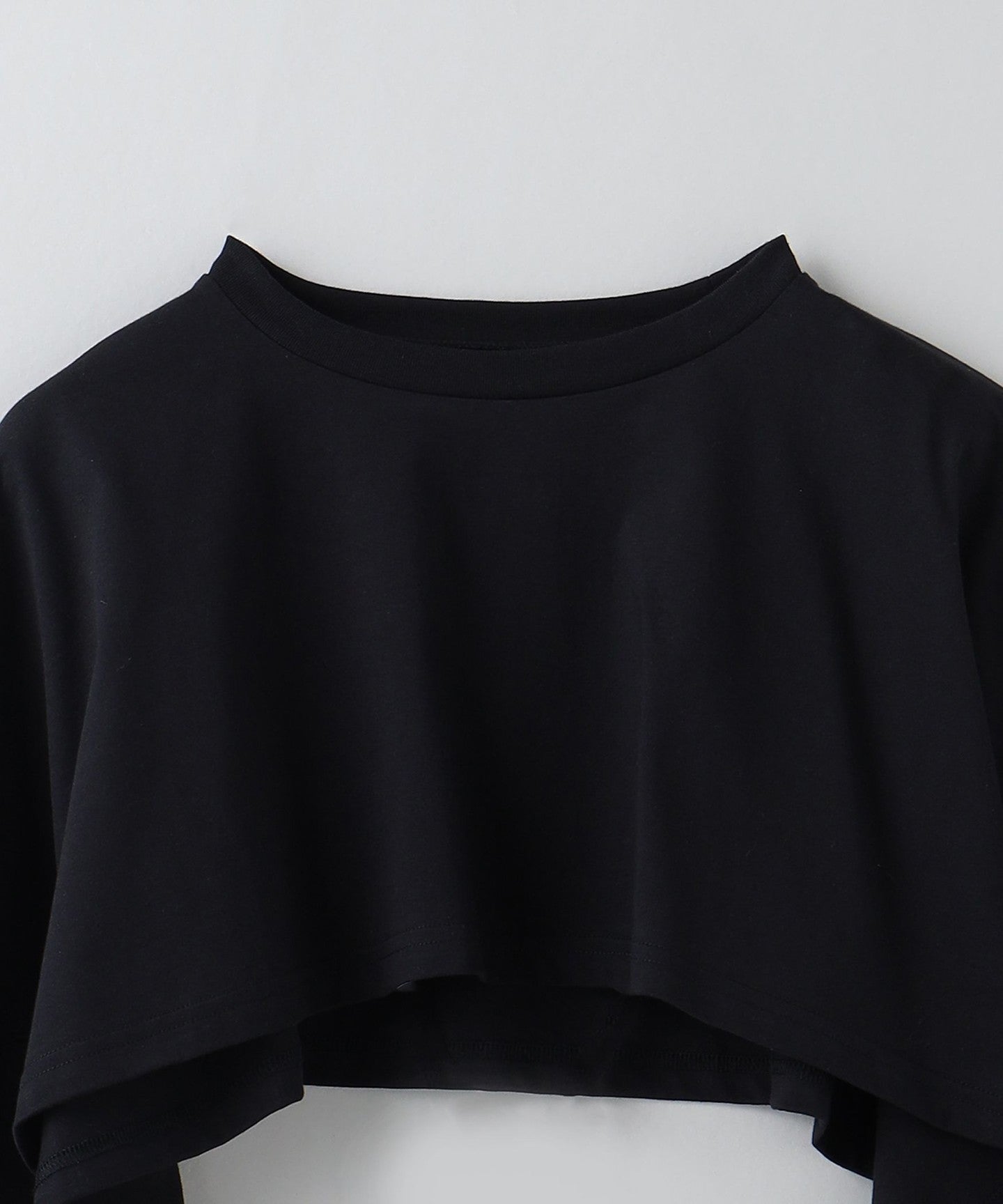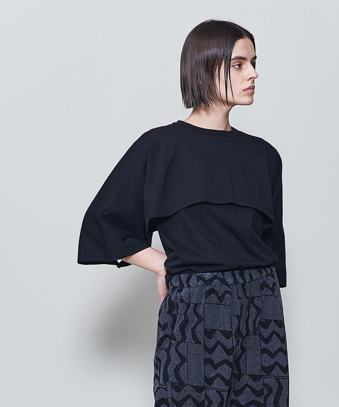 It can be worn with just the sleeveless top, or with the short top. SLEEVE Arrived SNAP BUTTON You can also remove it and wear it like a cape.