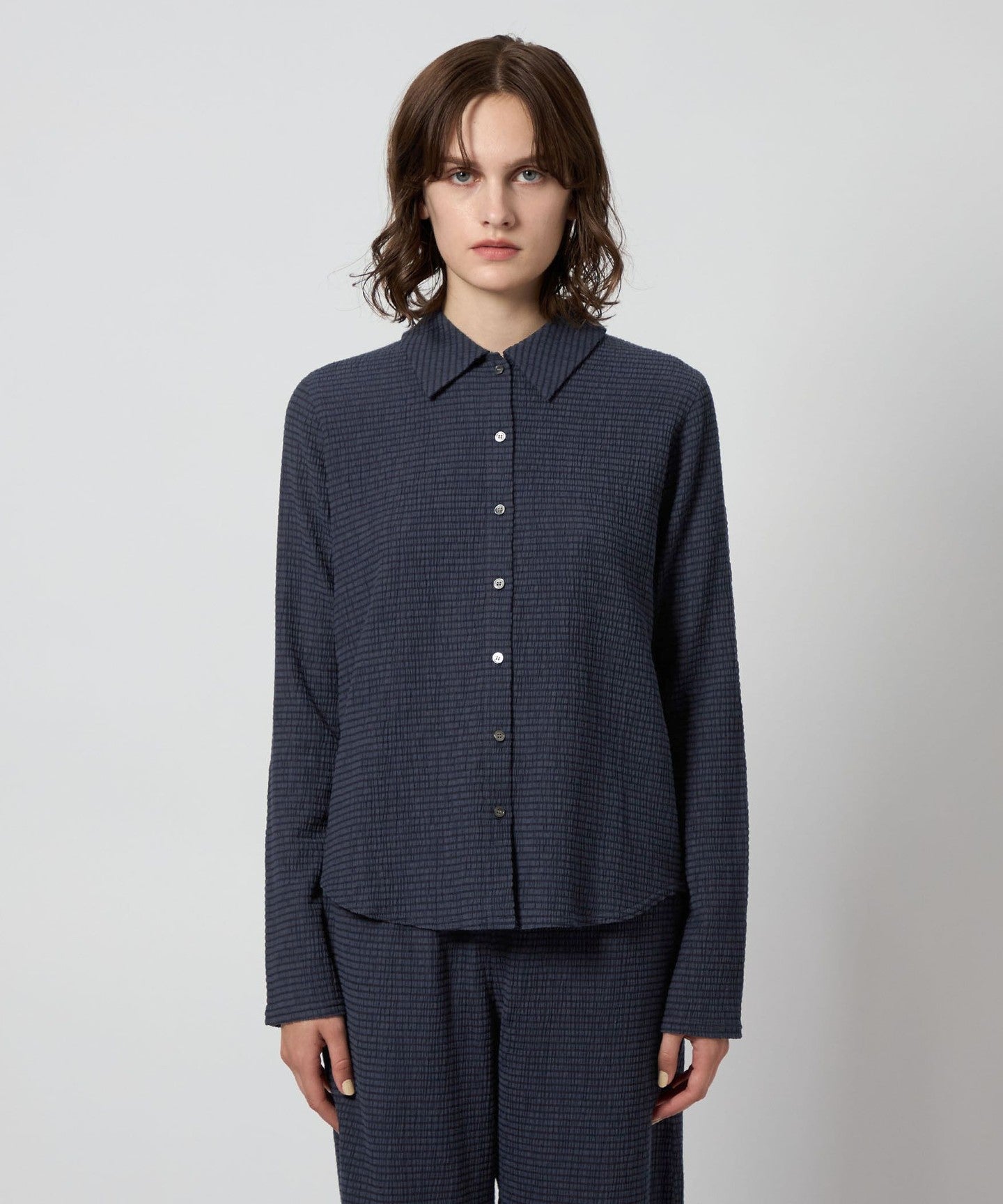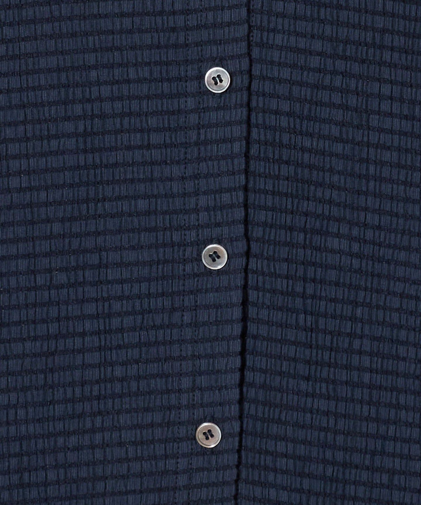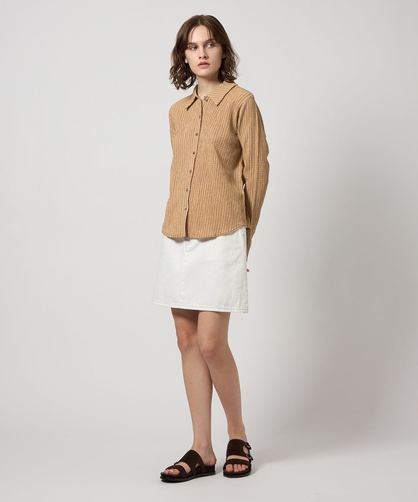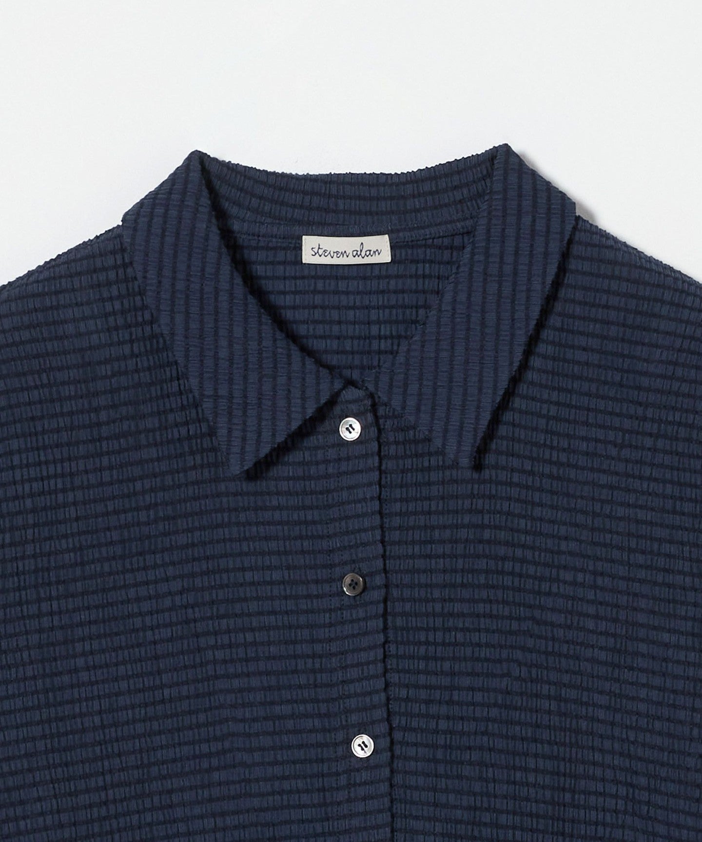 With its minimalist design featuring a small collar and clean silhouette, it is recommended not only as a stand-alone piece but also as a jacket for the height of summer.