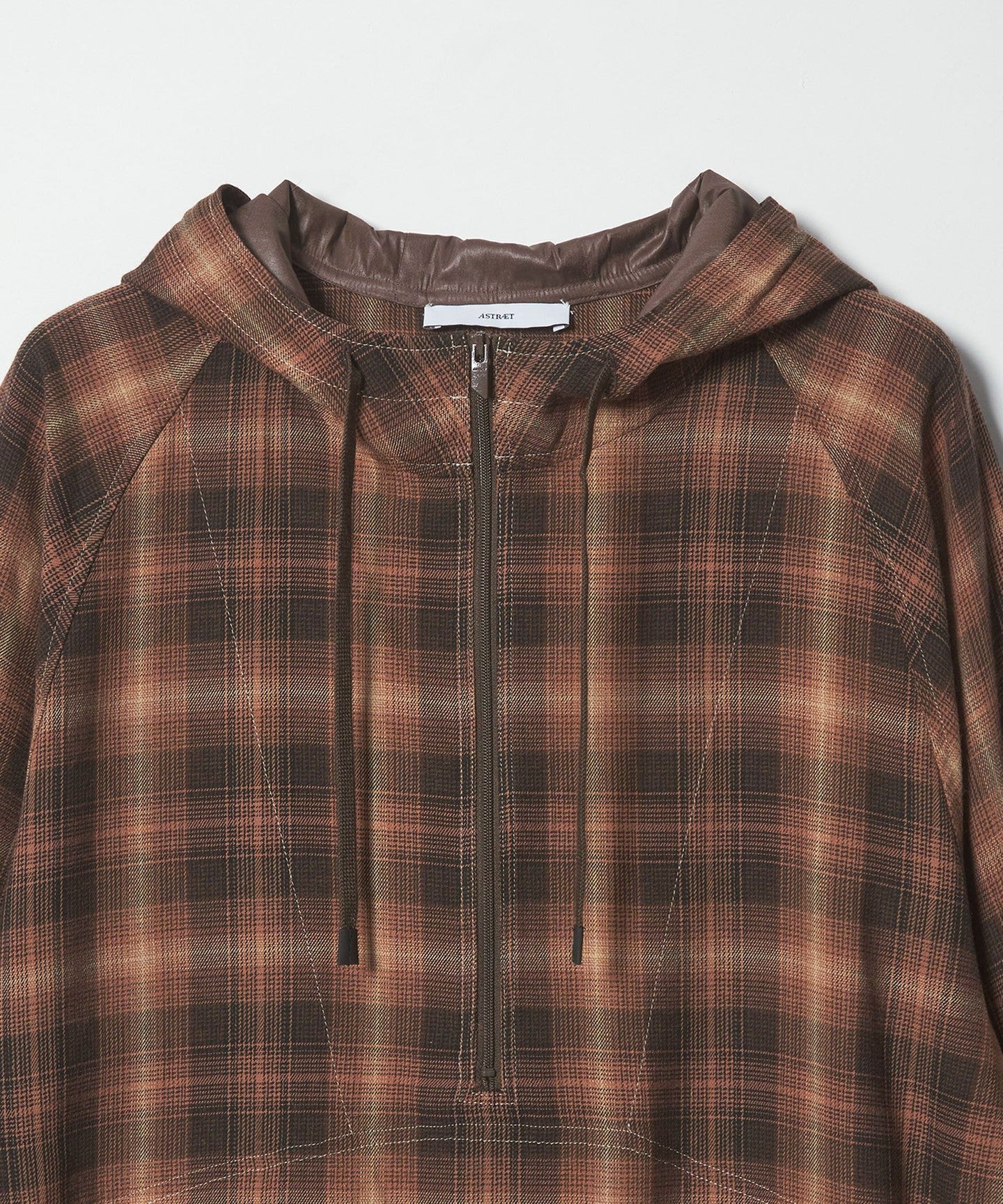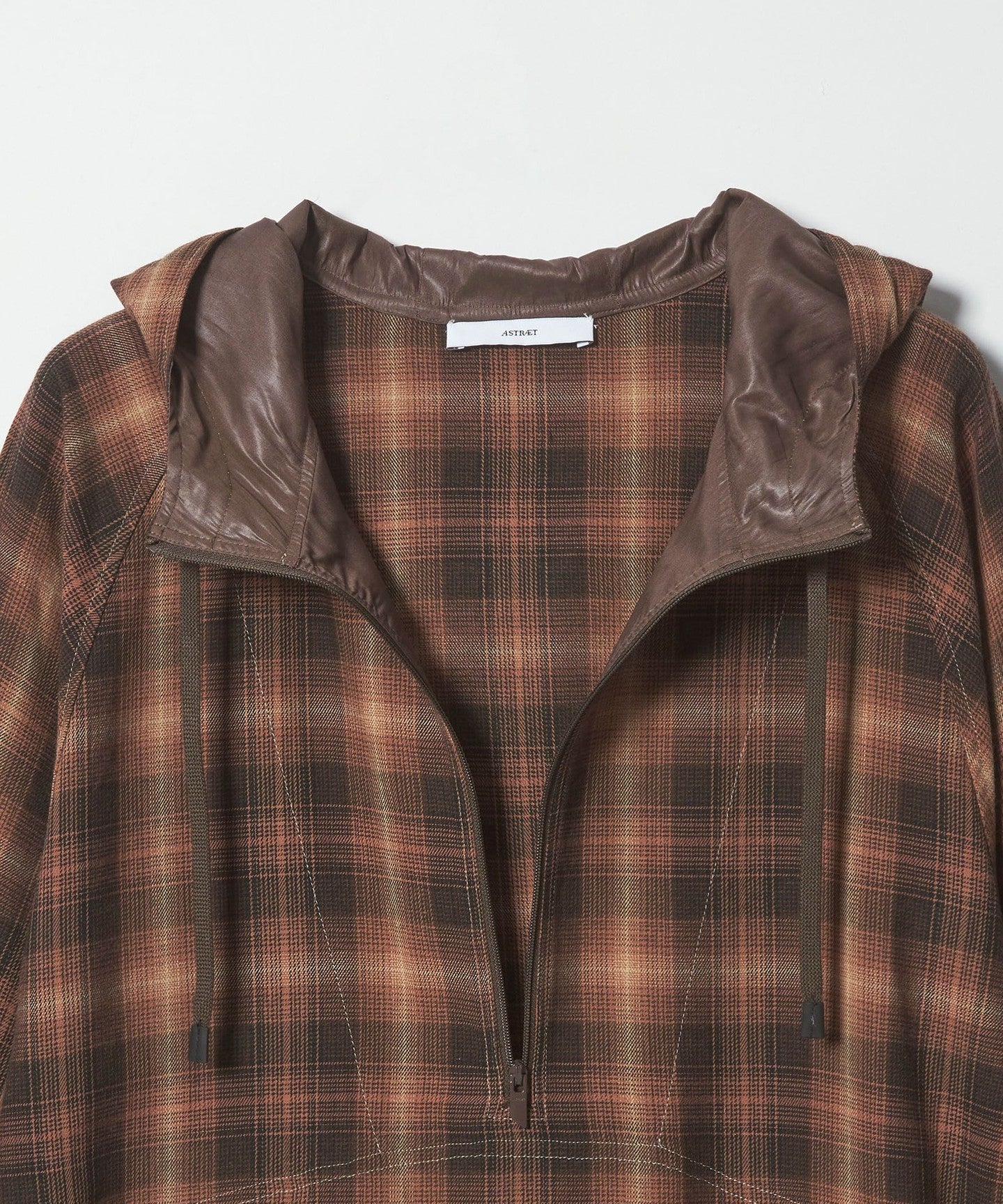 ダークトーンのチェック柄が大人カジュアルにも取り入れやすいアノラックタイプのプルオーバー。