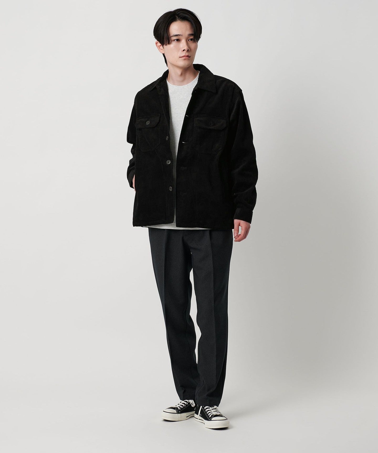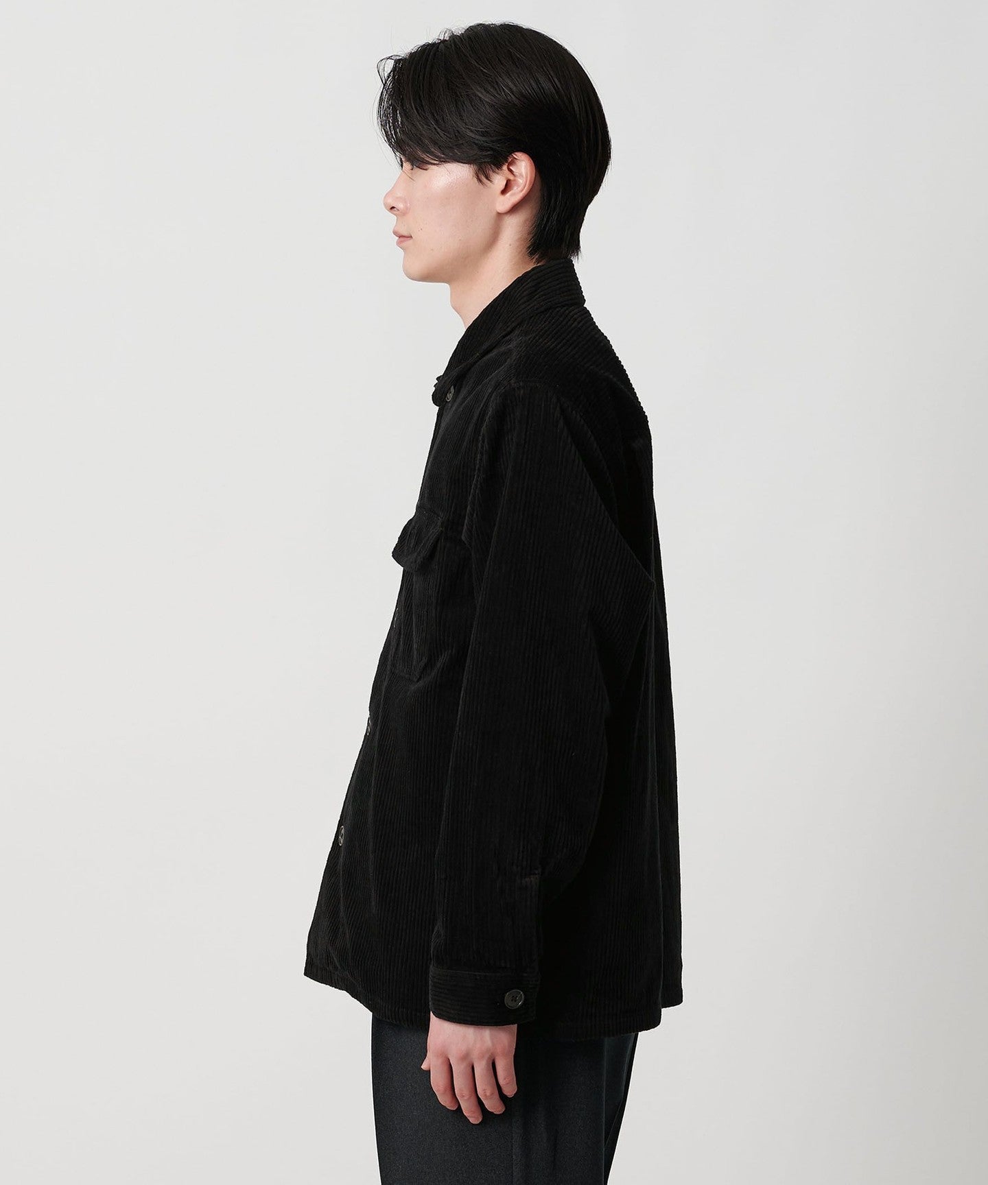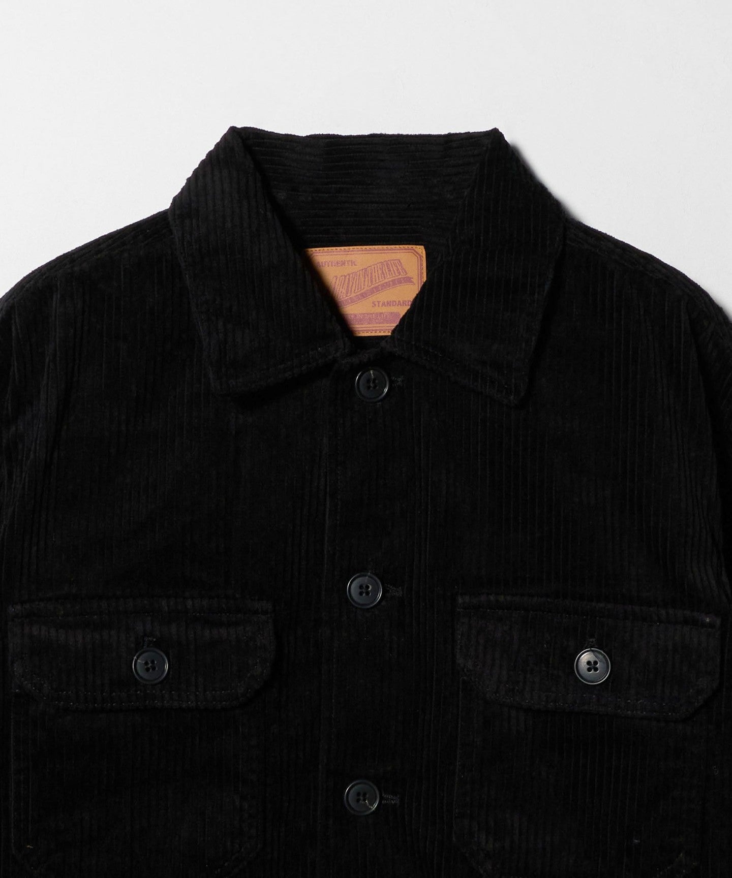 CPO jacket made of thick corduroy material.