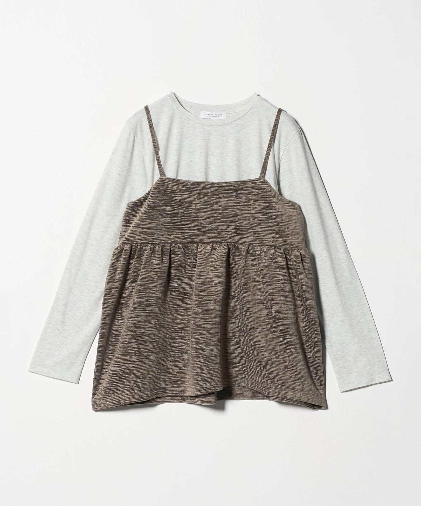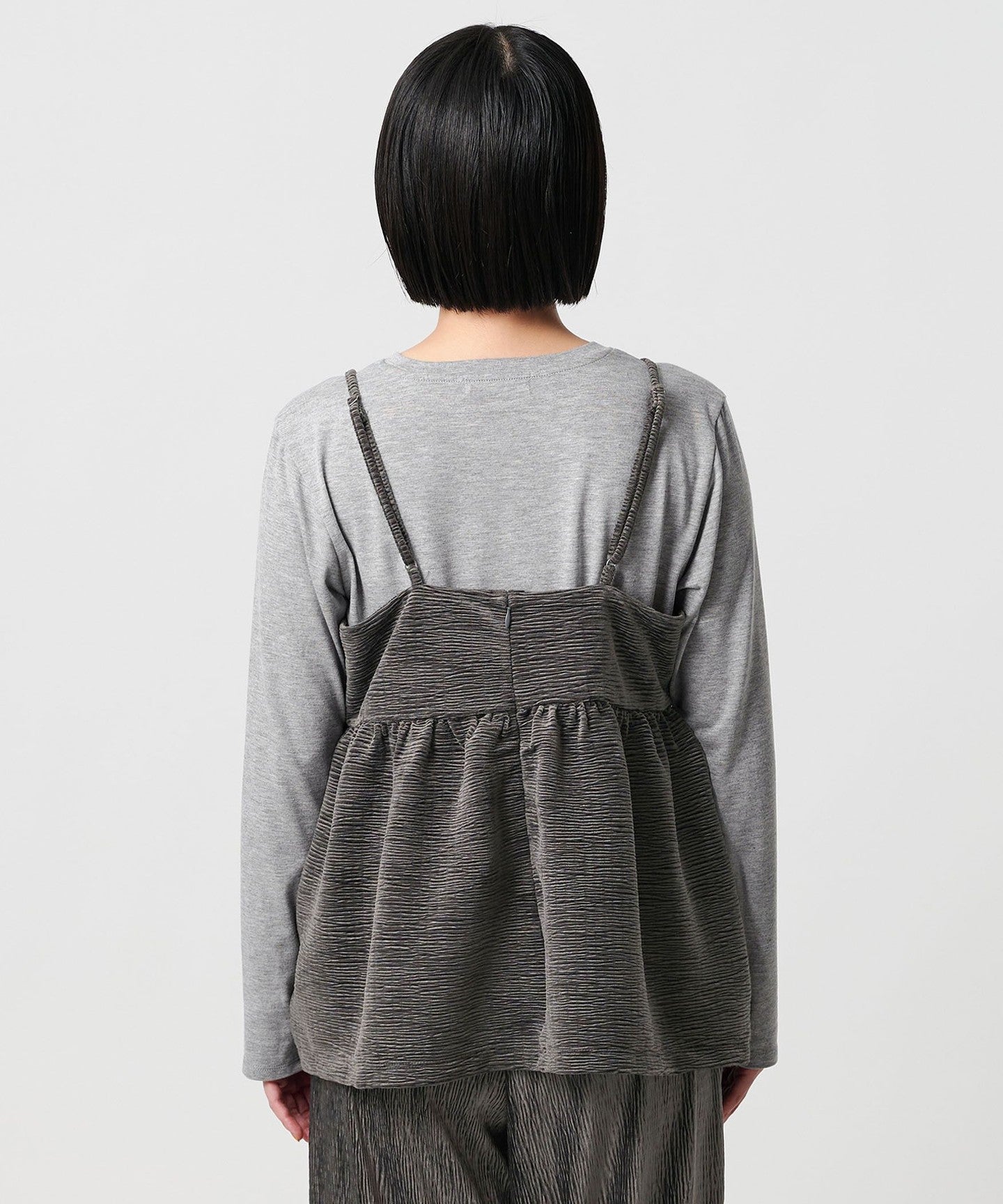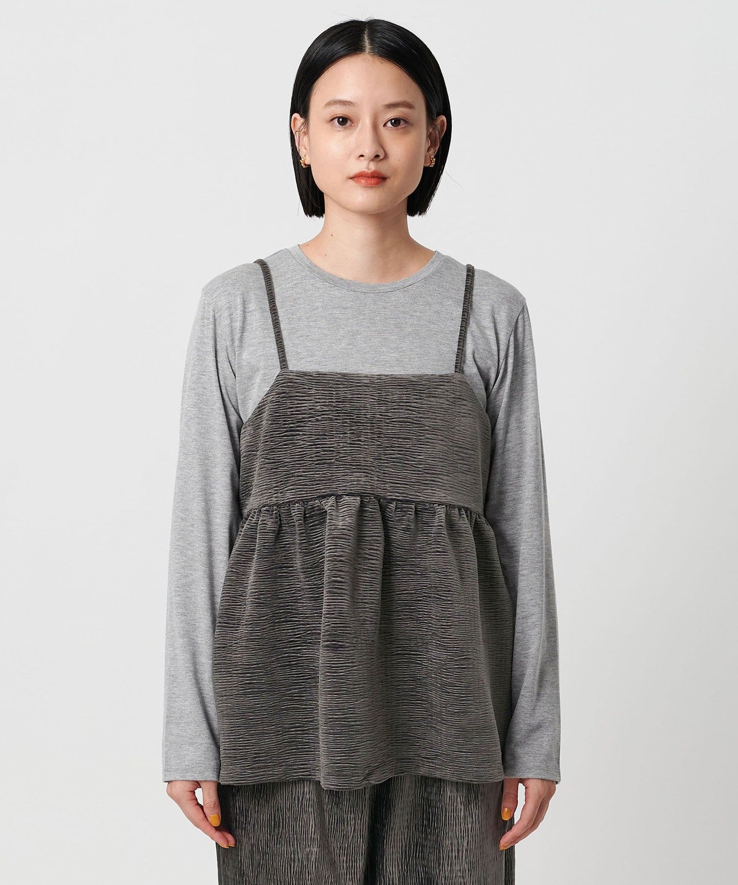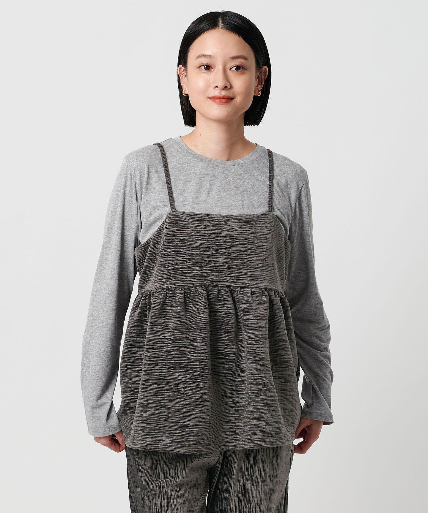 A set of a velour cami that looks great in autumn and a simple cut-and-sew top.