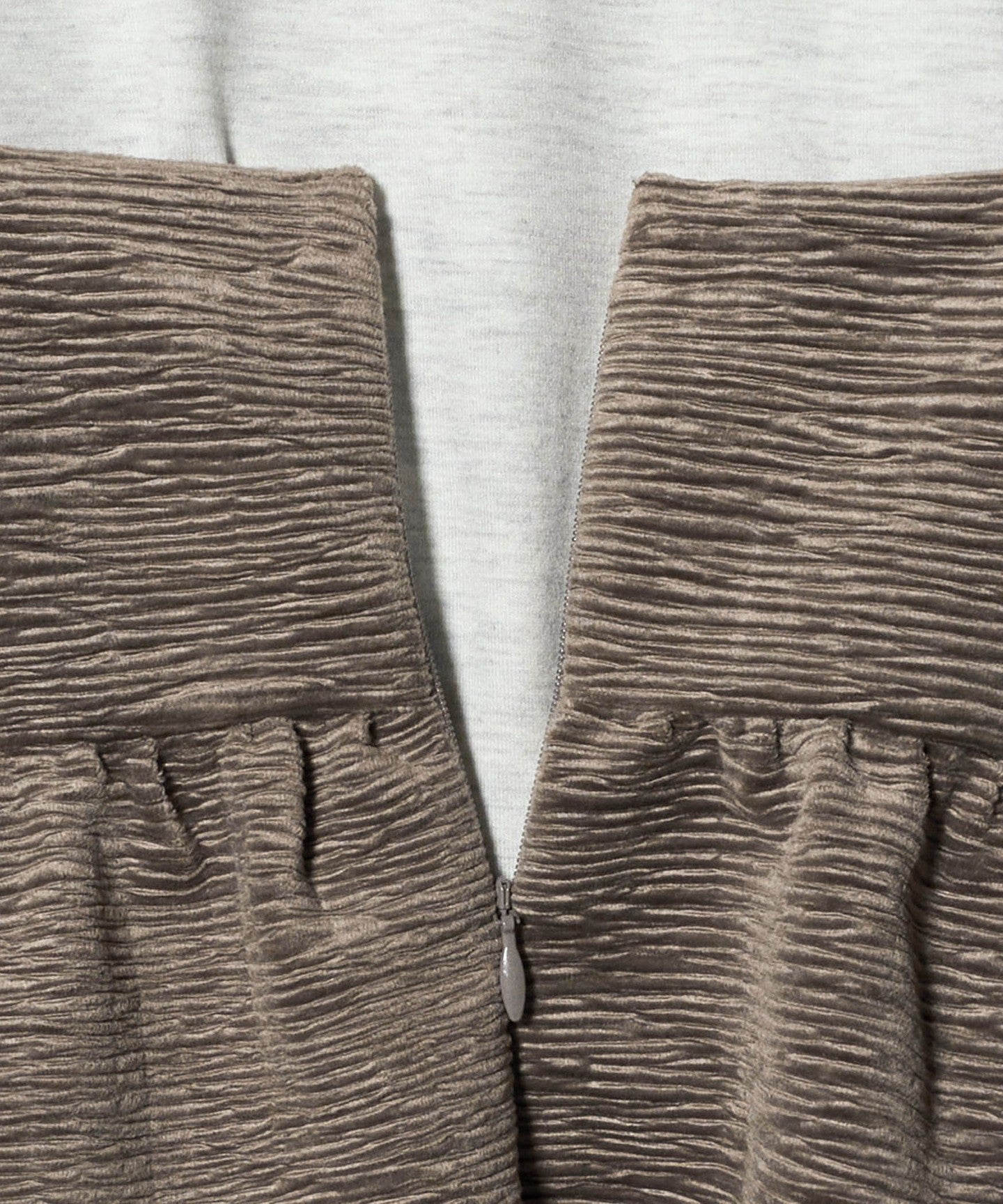 By applying a crinkle finish to the velour to create a three-dimensional texture, we have created a fabric with a unique look.