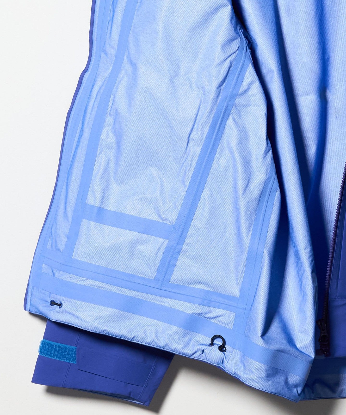 This mountain parka has an eye-catching blue lining and outer coloring that gives it a 90's vibe.