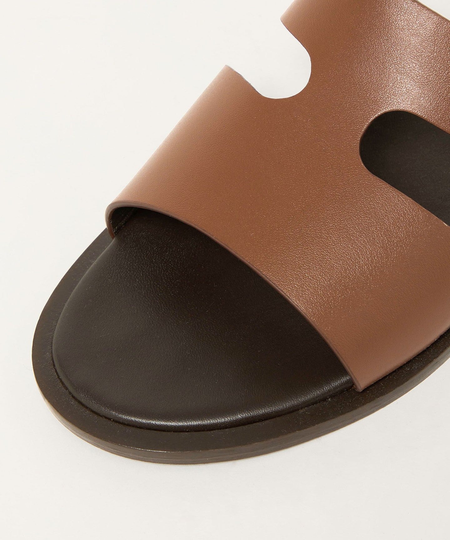 The dark-toned insole is combined with smooth leather in a contrasting black and reddish brown.