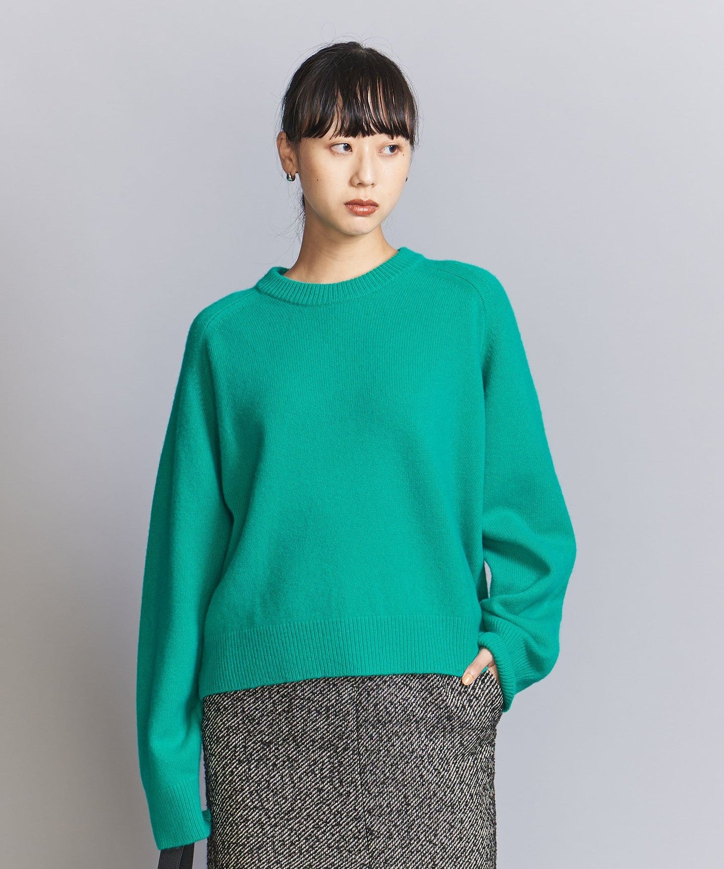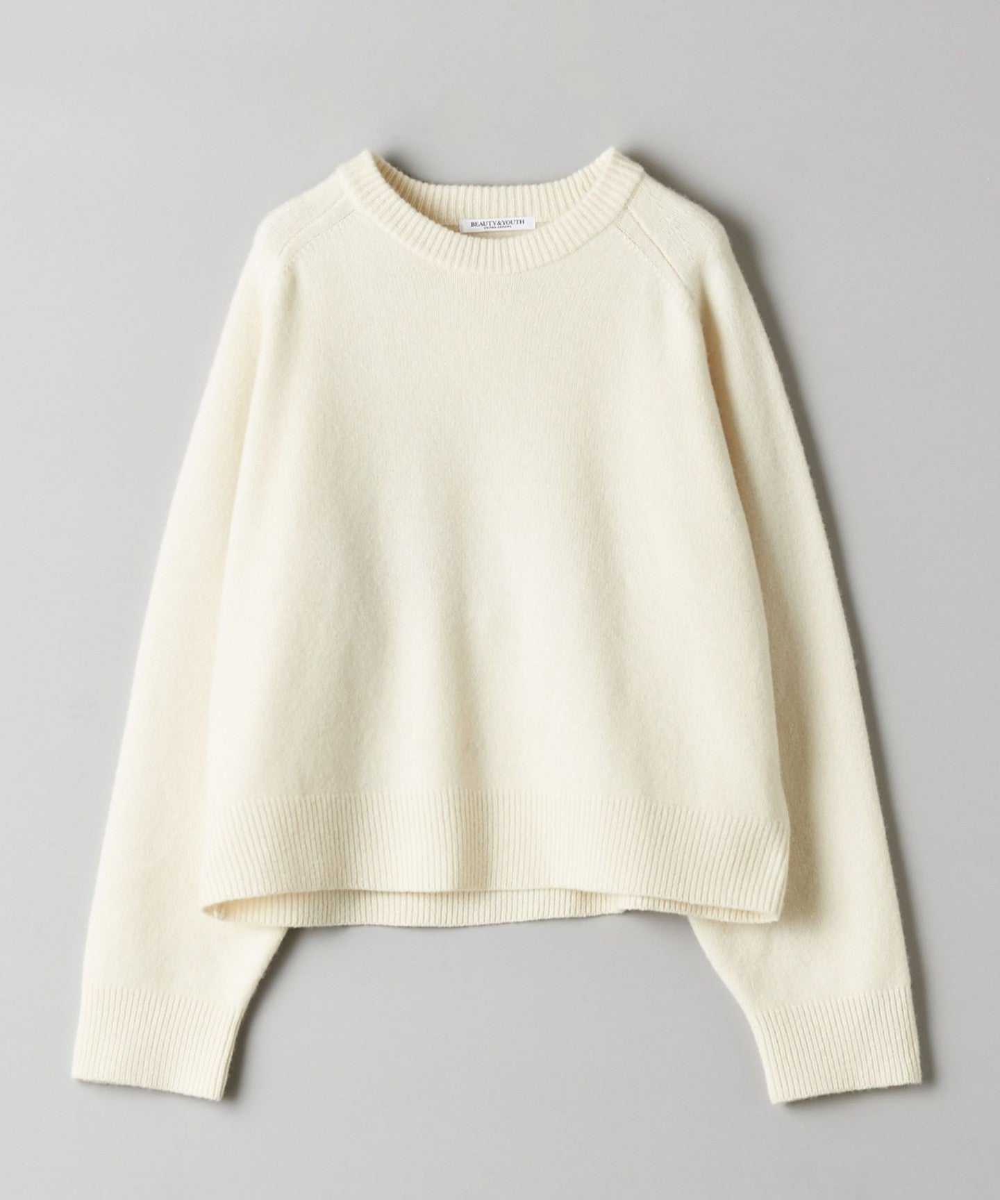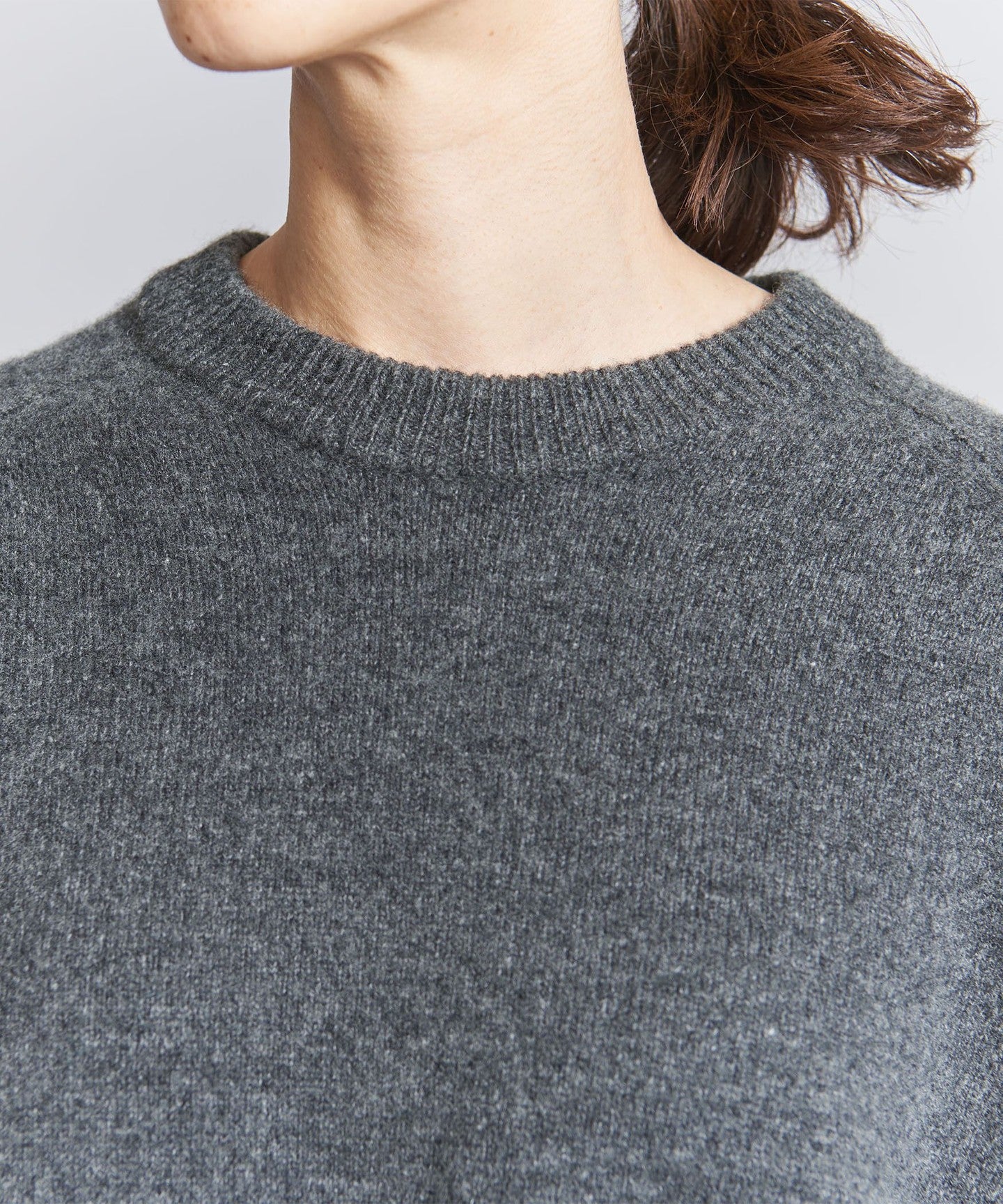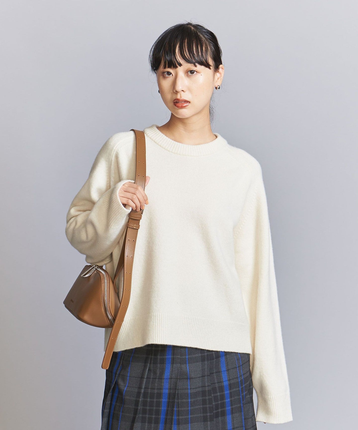 A crew neck knit pullover made from a luxurious cashmere blend material.