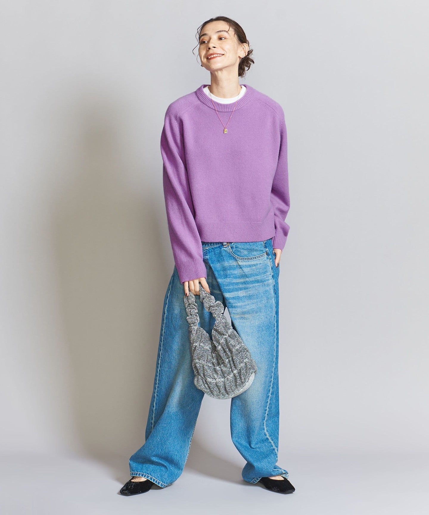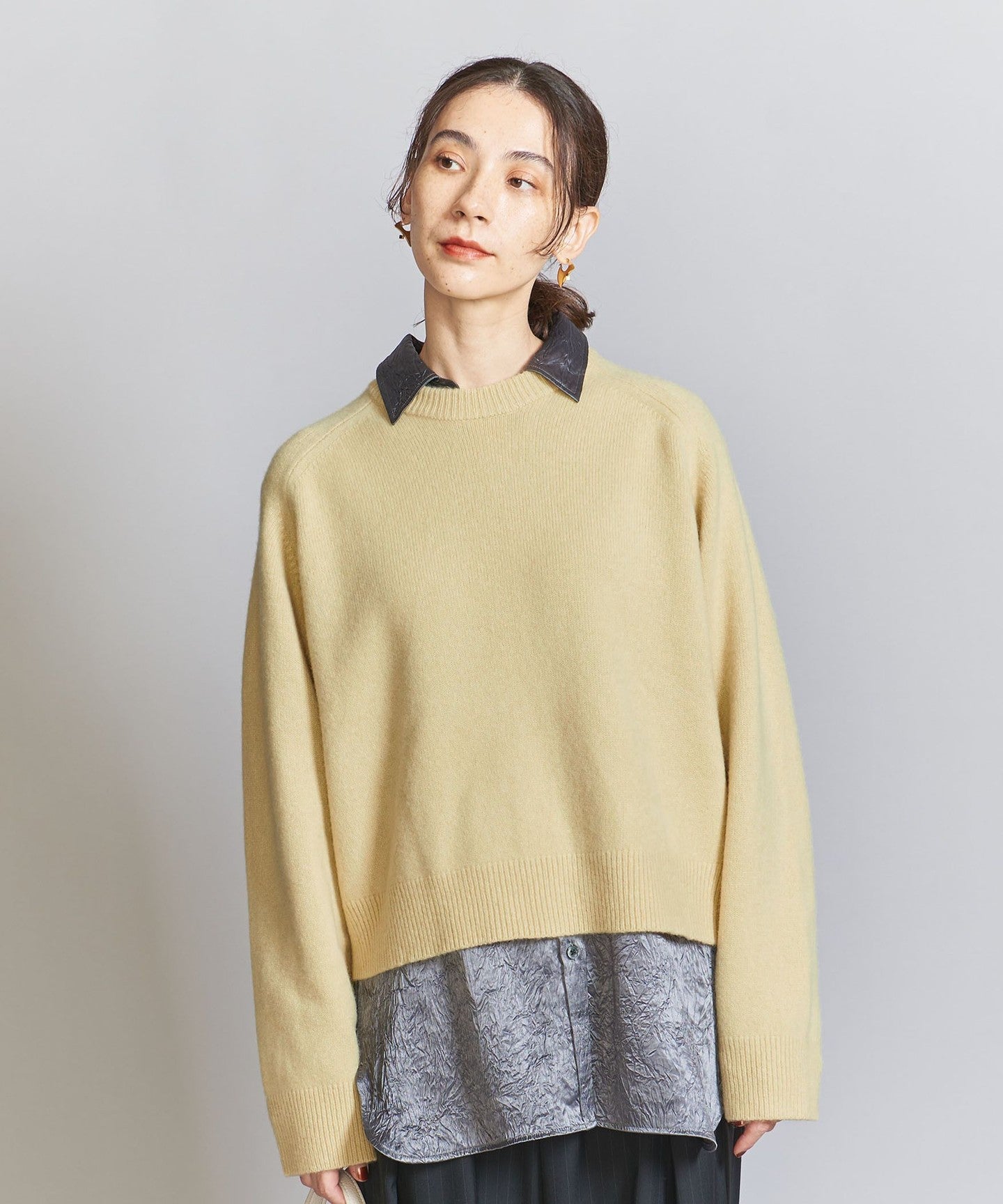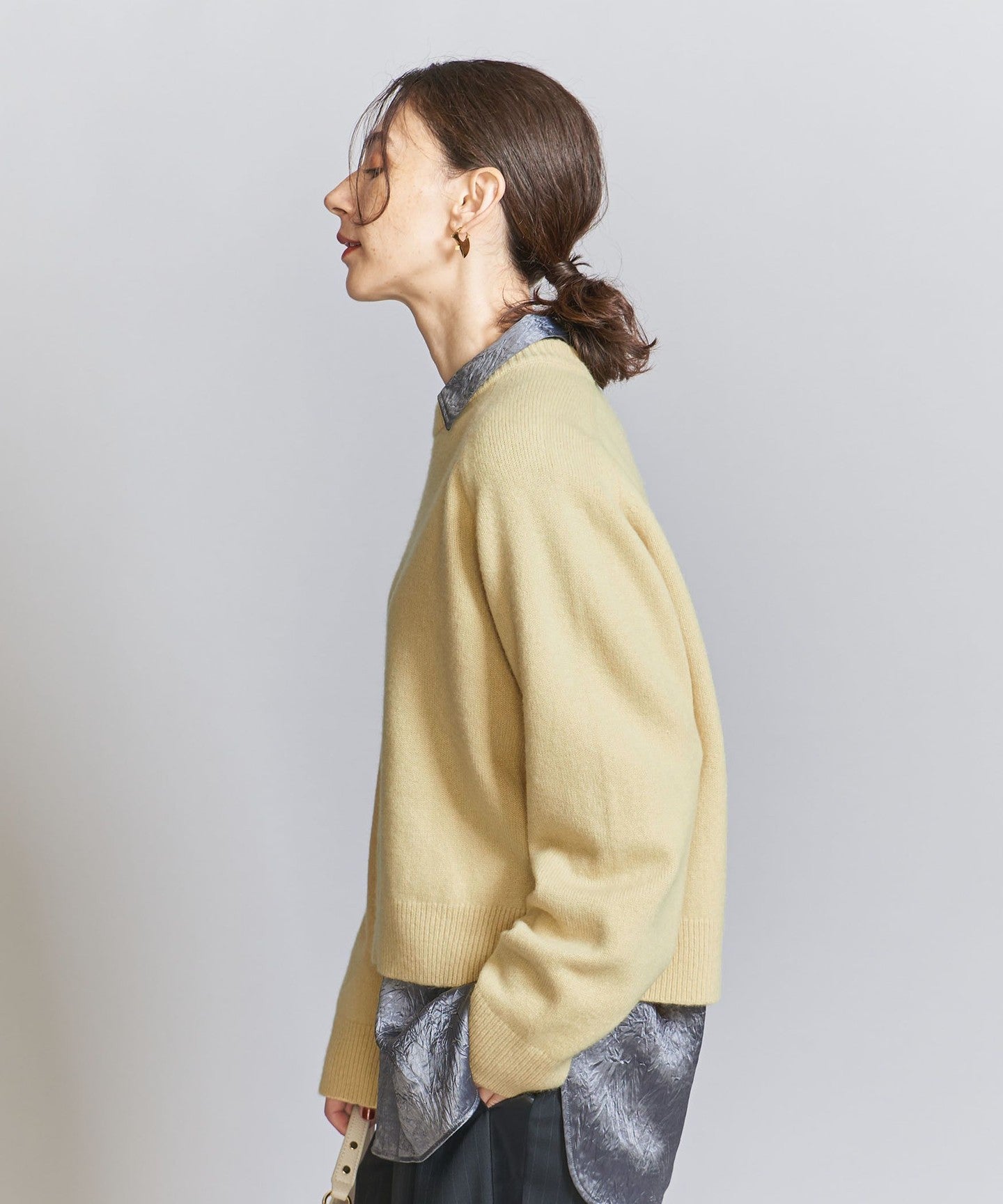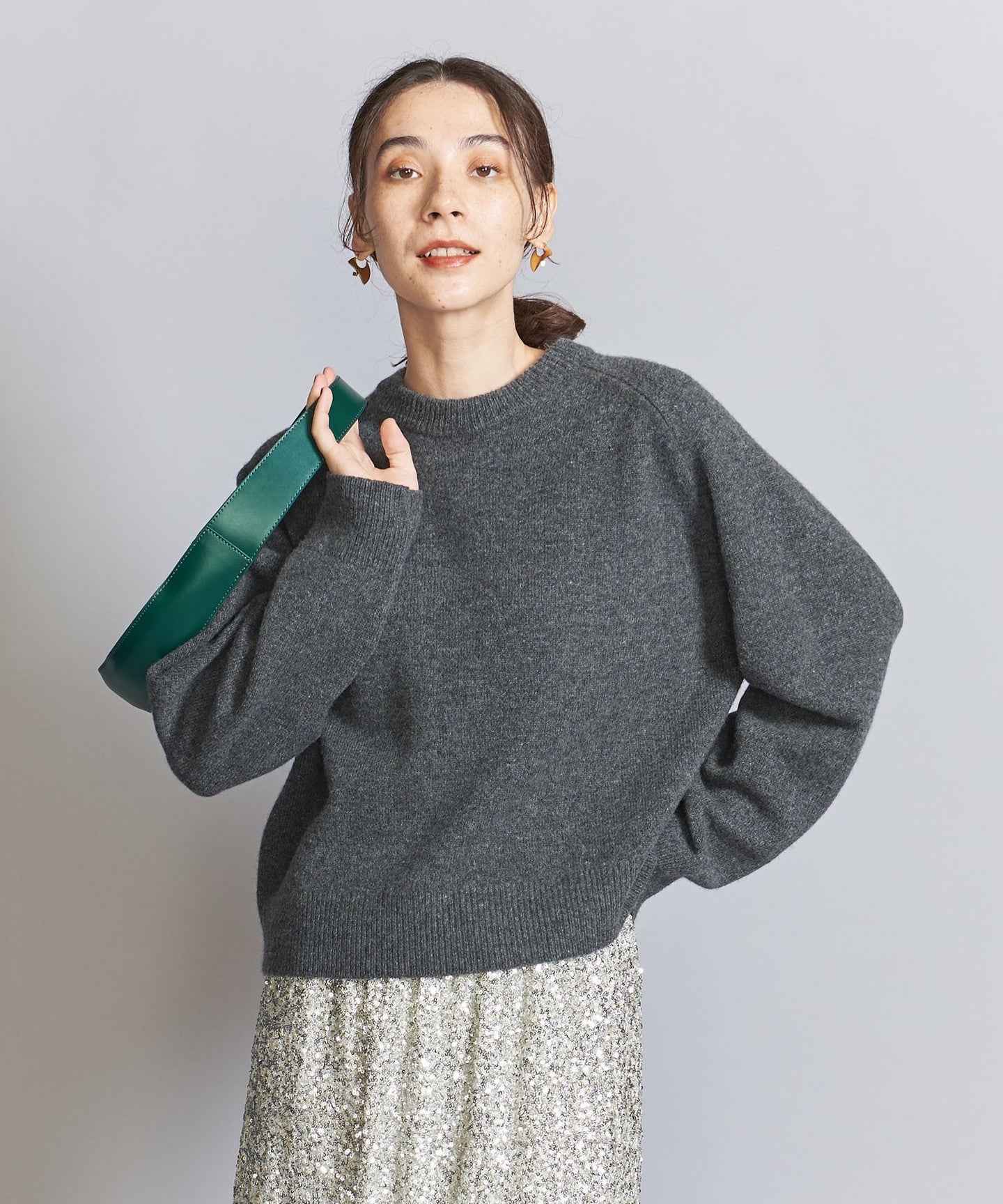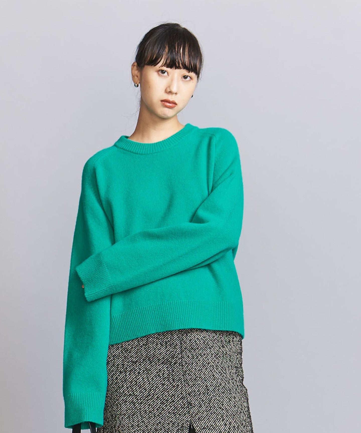 A crew neck knit pullover made from a luxurious cashmere blend material.