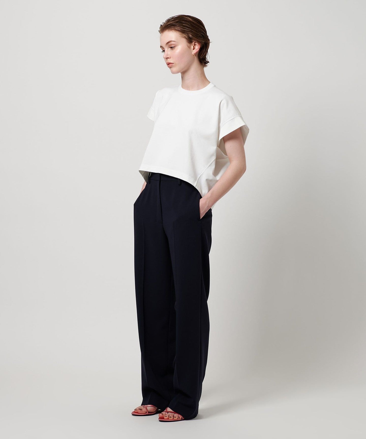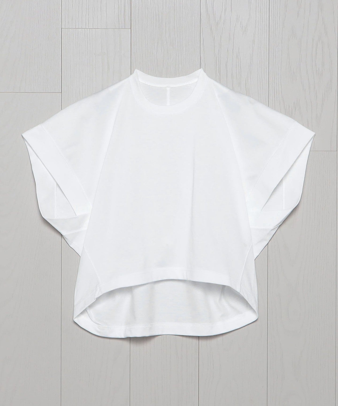 This short-sleeved top is made from cotton jersey with a clear surface that is minimally pilling. Its slightly wide body and shifted neckline create a modern design with a difference between the front and back. The light length and loose sleeves create a relaxed feel, while the slightly tight neckline keeps the overall look minimal. It creates a unique look as you put it on, achieving a simple yet flattering style with subtle nuances.