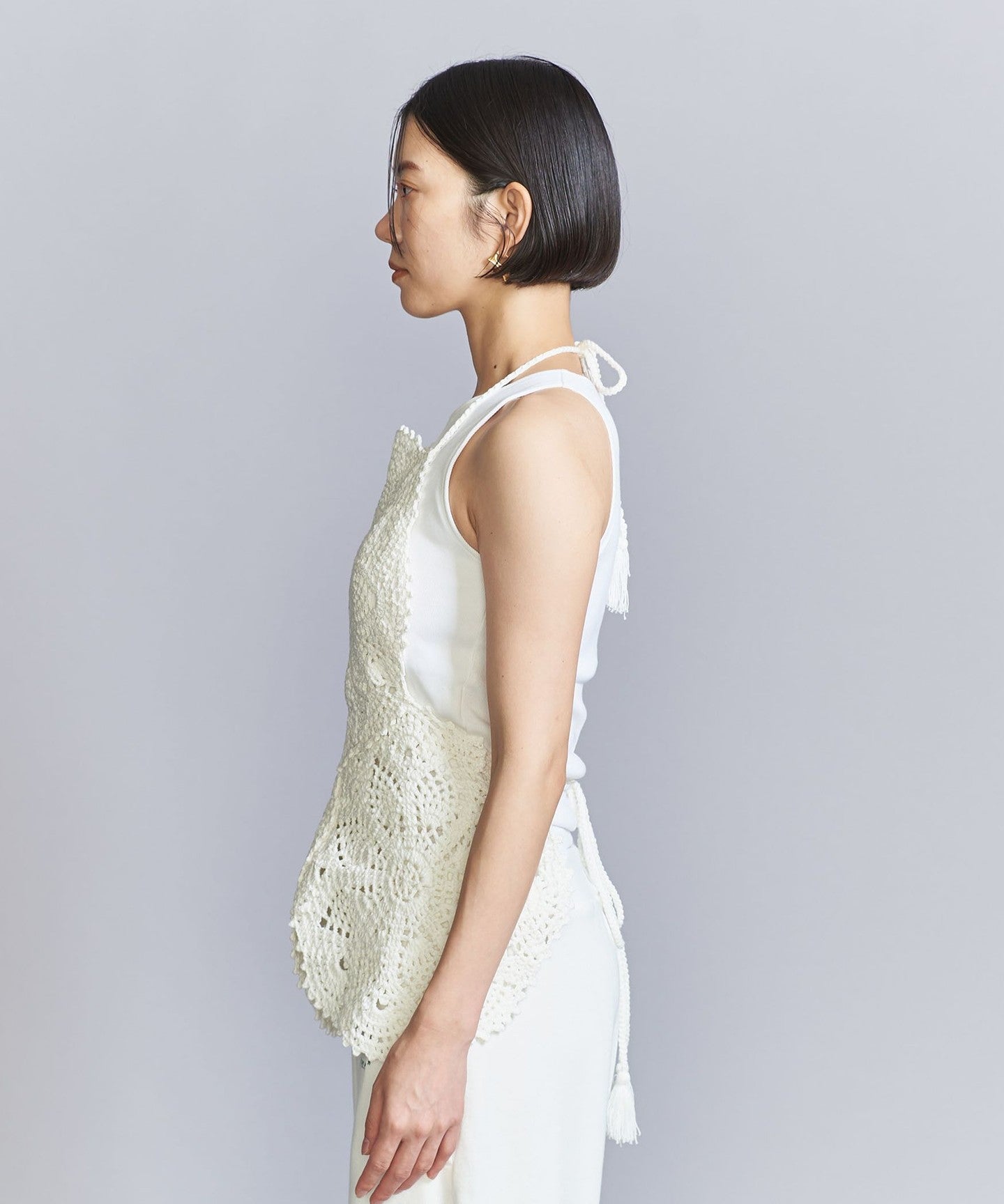 You can also wear it in a lace-up style by passing the waist string through the holes, or by bringing the string side to the front.