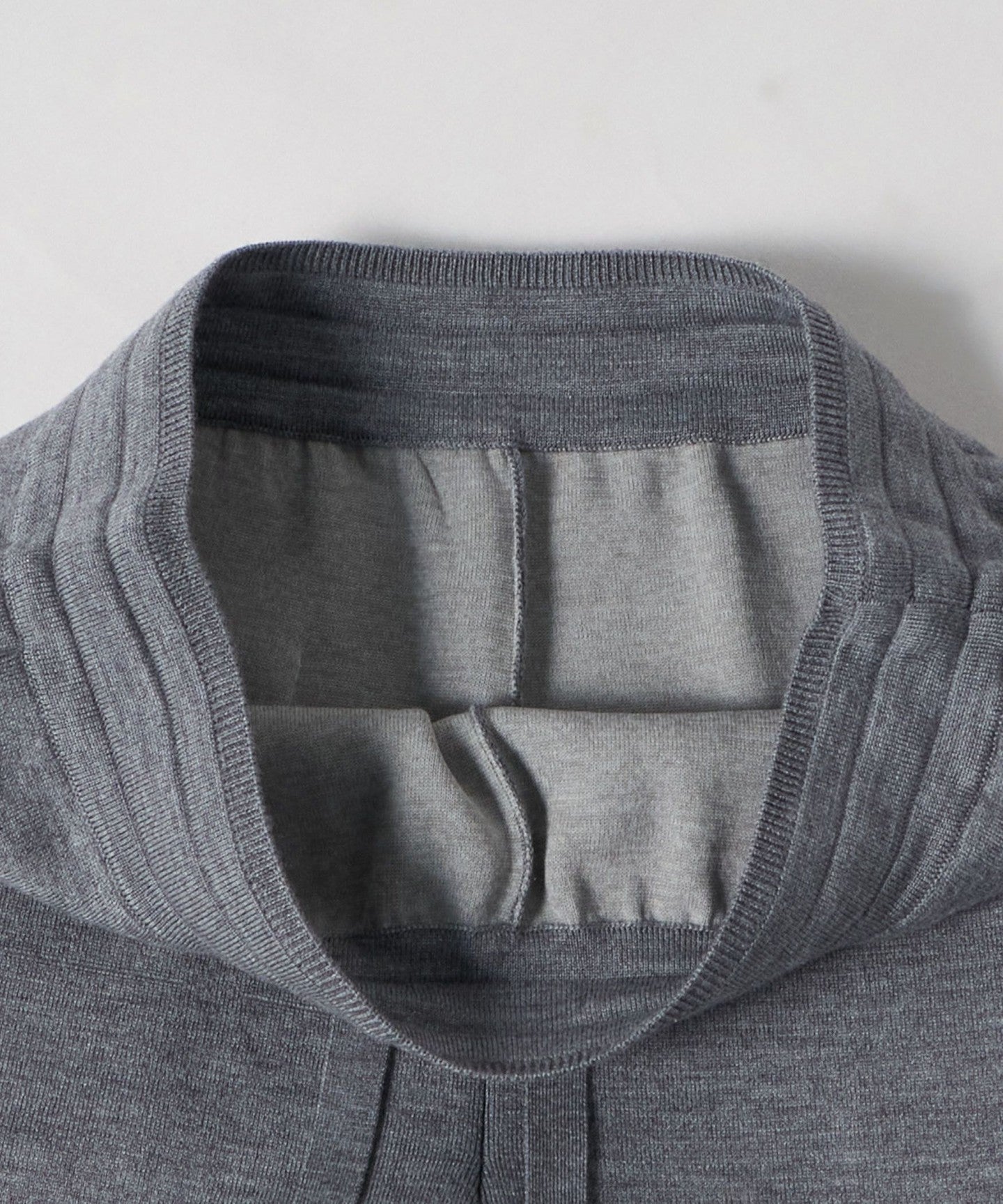 表側はシルク混のウールで編みたて、裏側は張りのあるさらりとしたポリエステルの糸を使用したダブルフェイスのニット地。