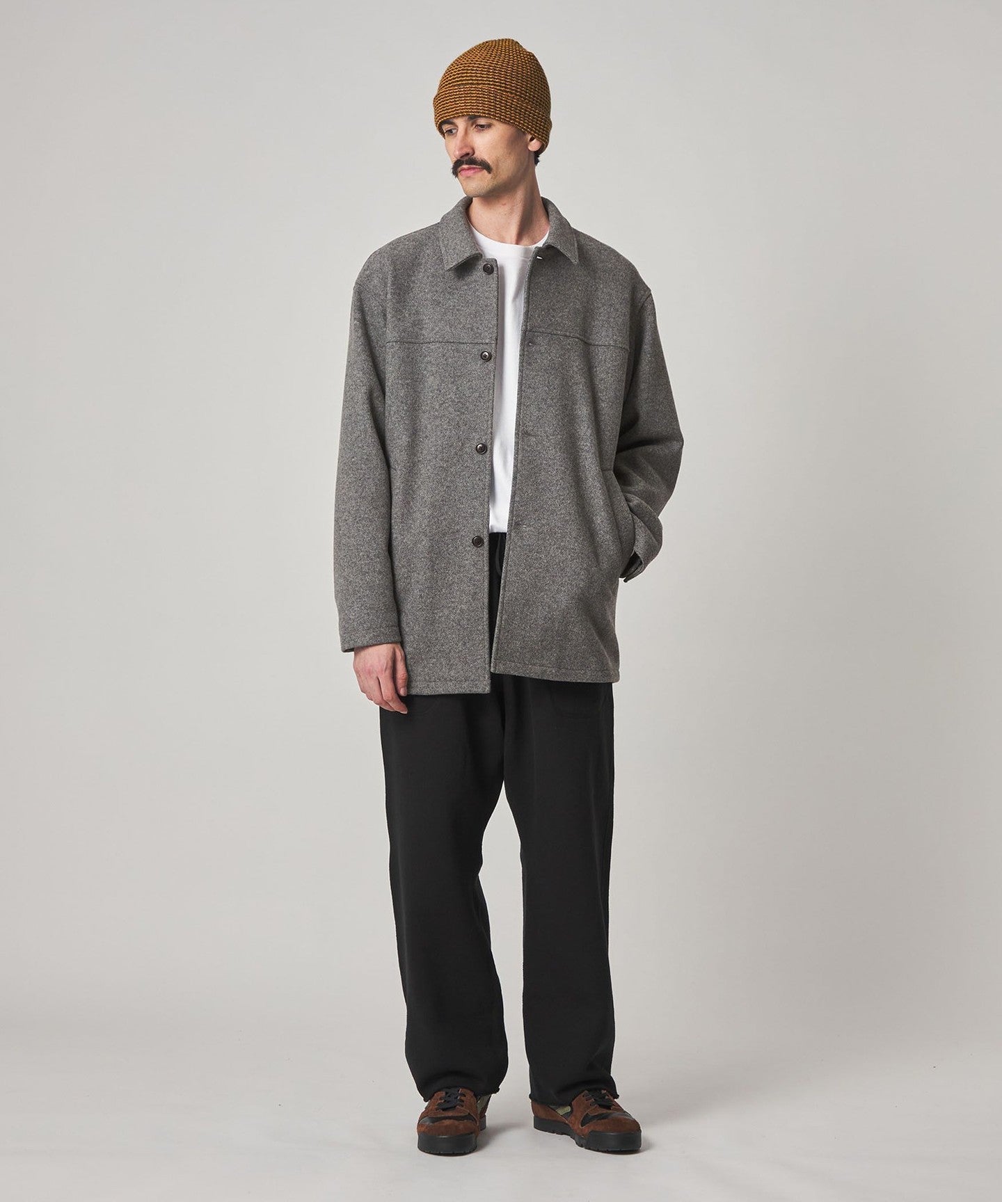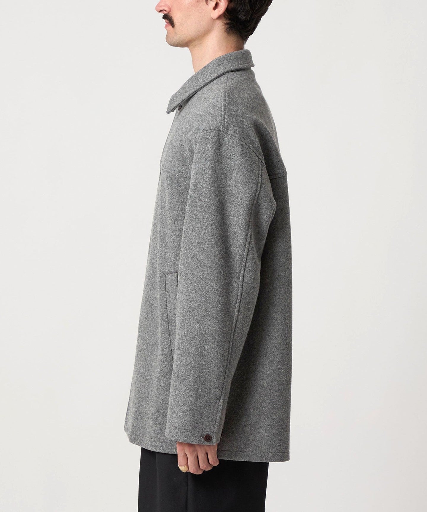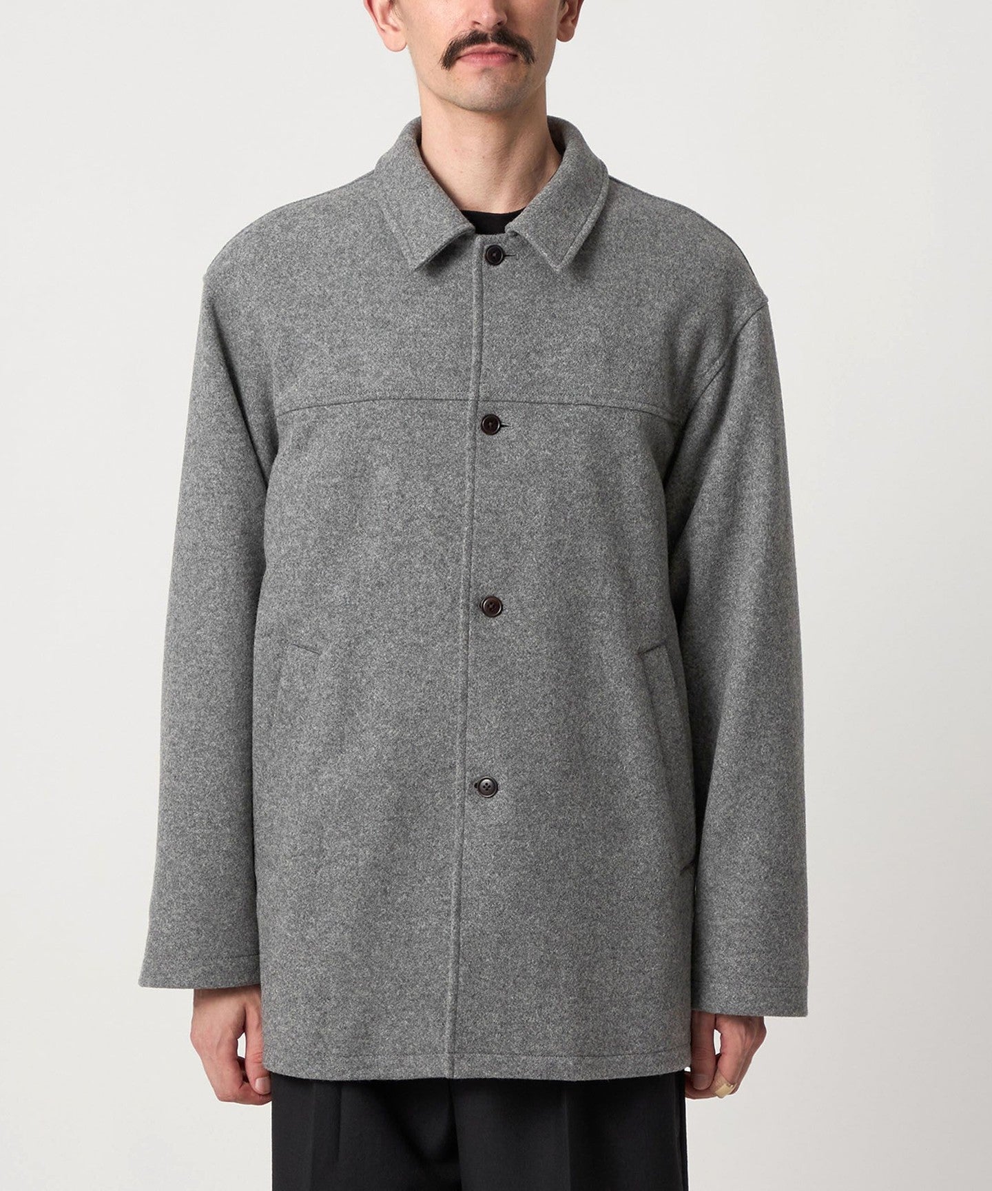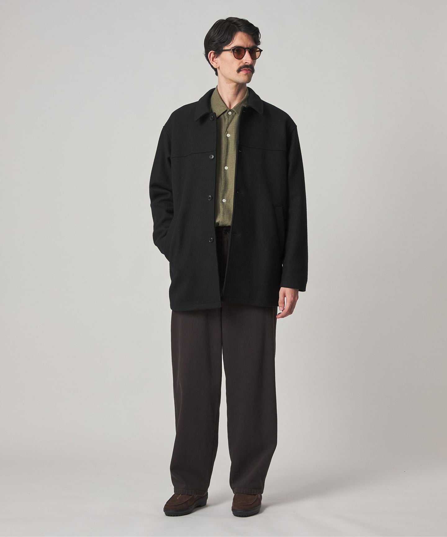 トラディショナルなカーコートをベースに、モダンな素材で作製したコート。