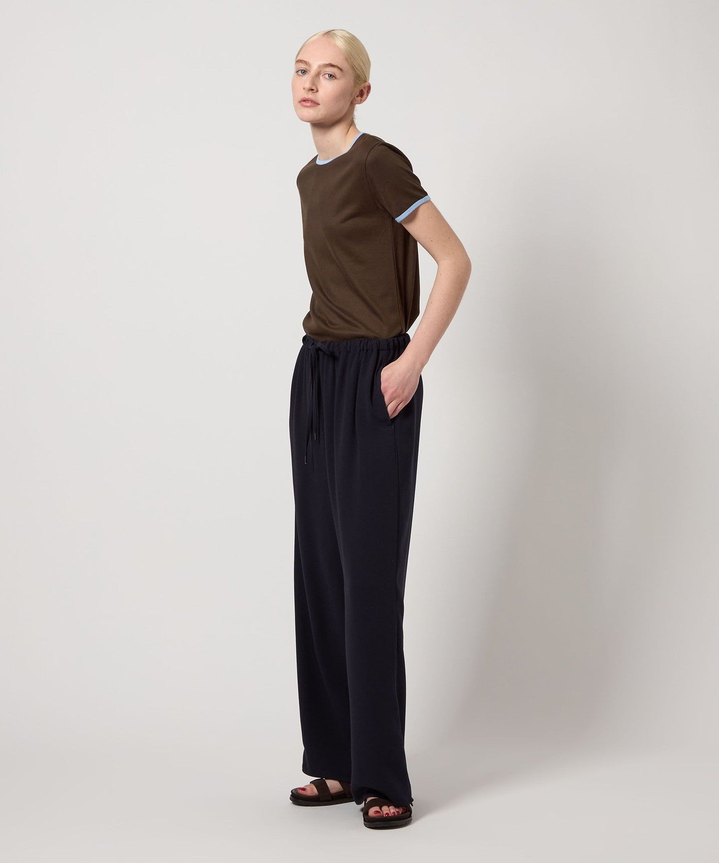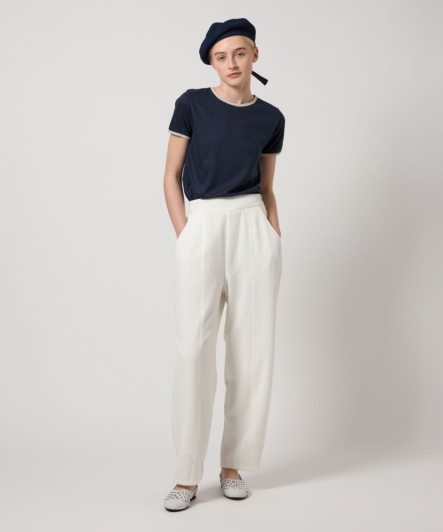 The key features are the elegant thin ribbed fabric and ringer design with a carefully selected color scheme.