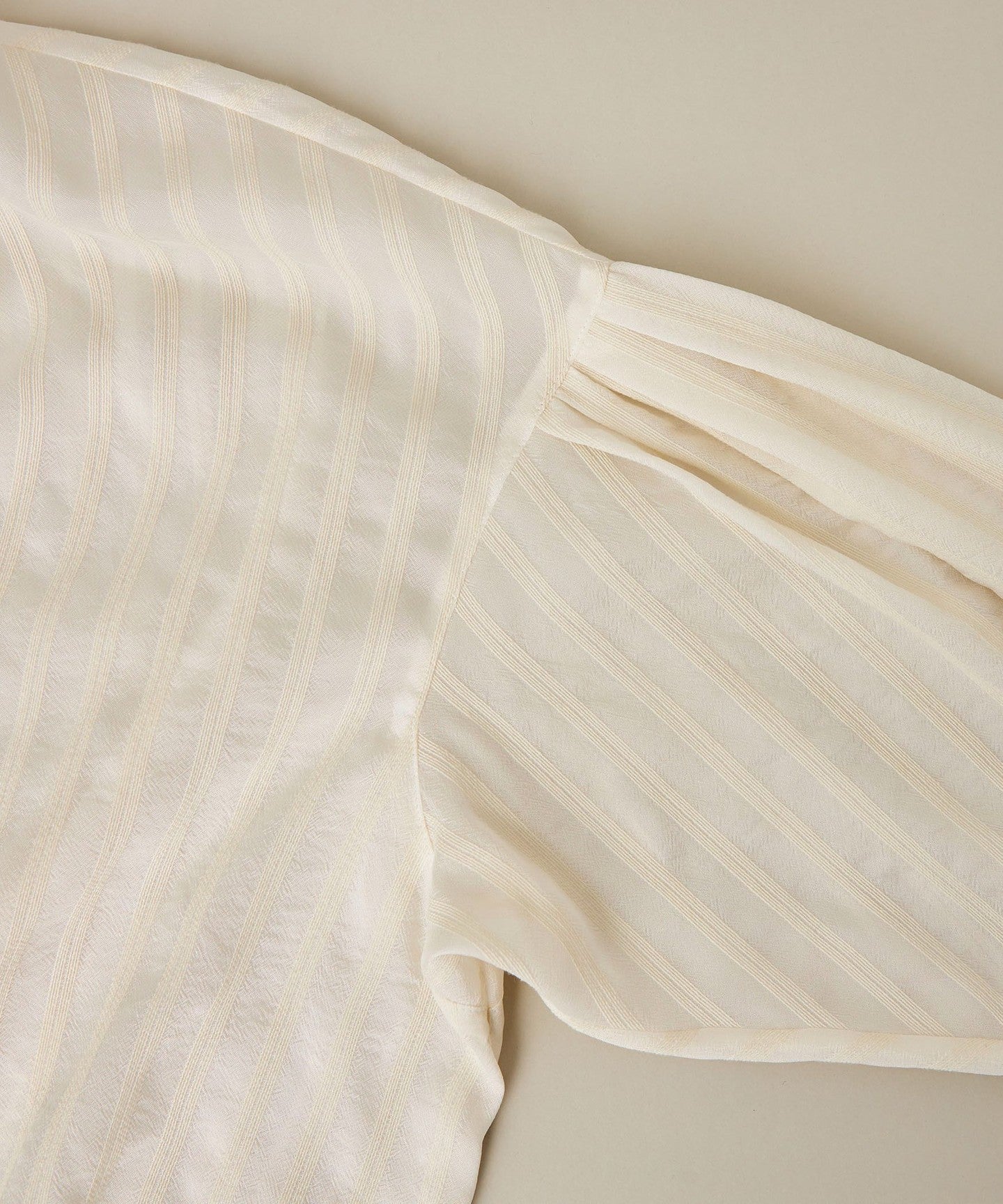 A voluminous sleeve blouse featuring a unique cord stripe surface.