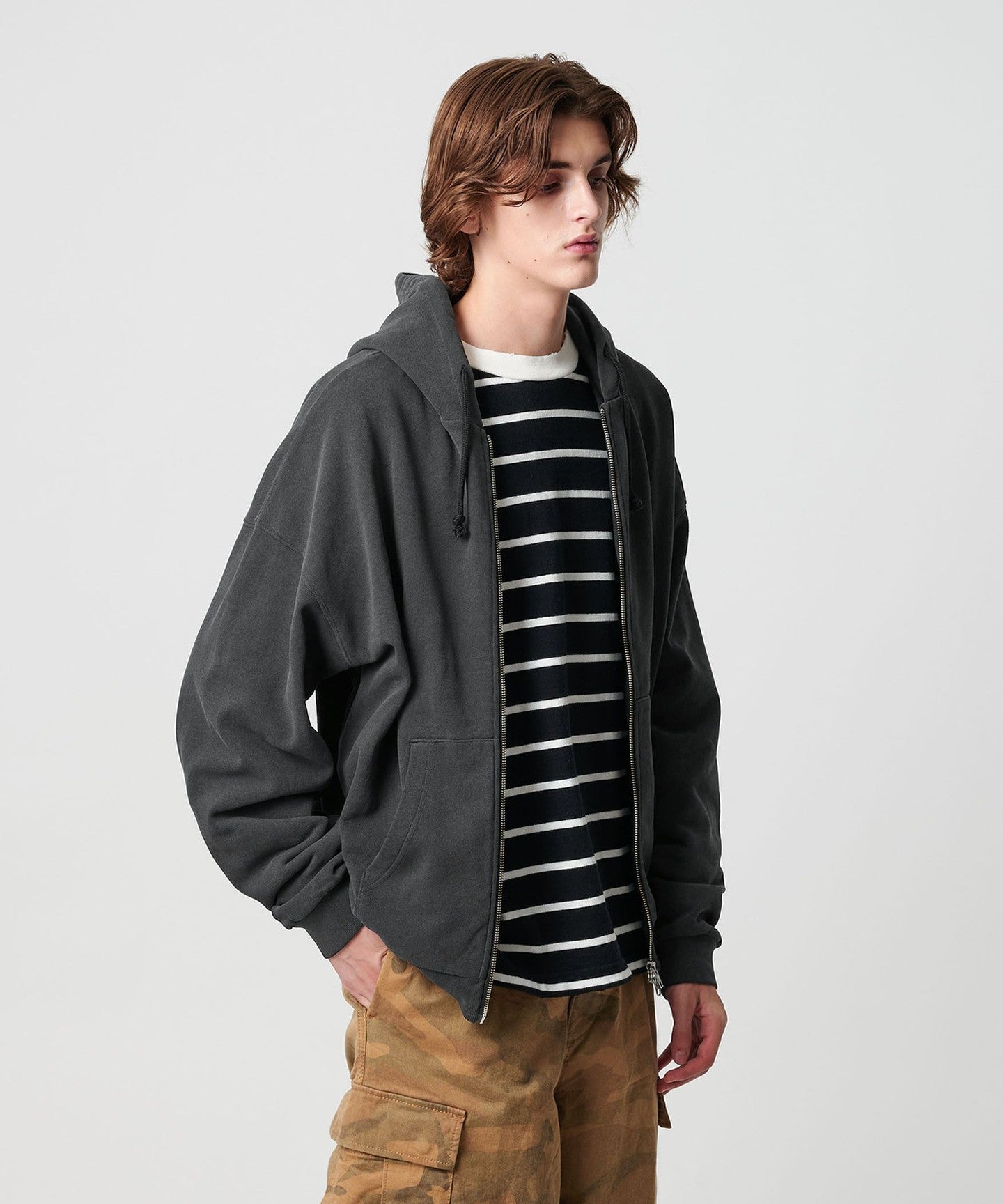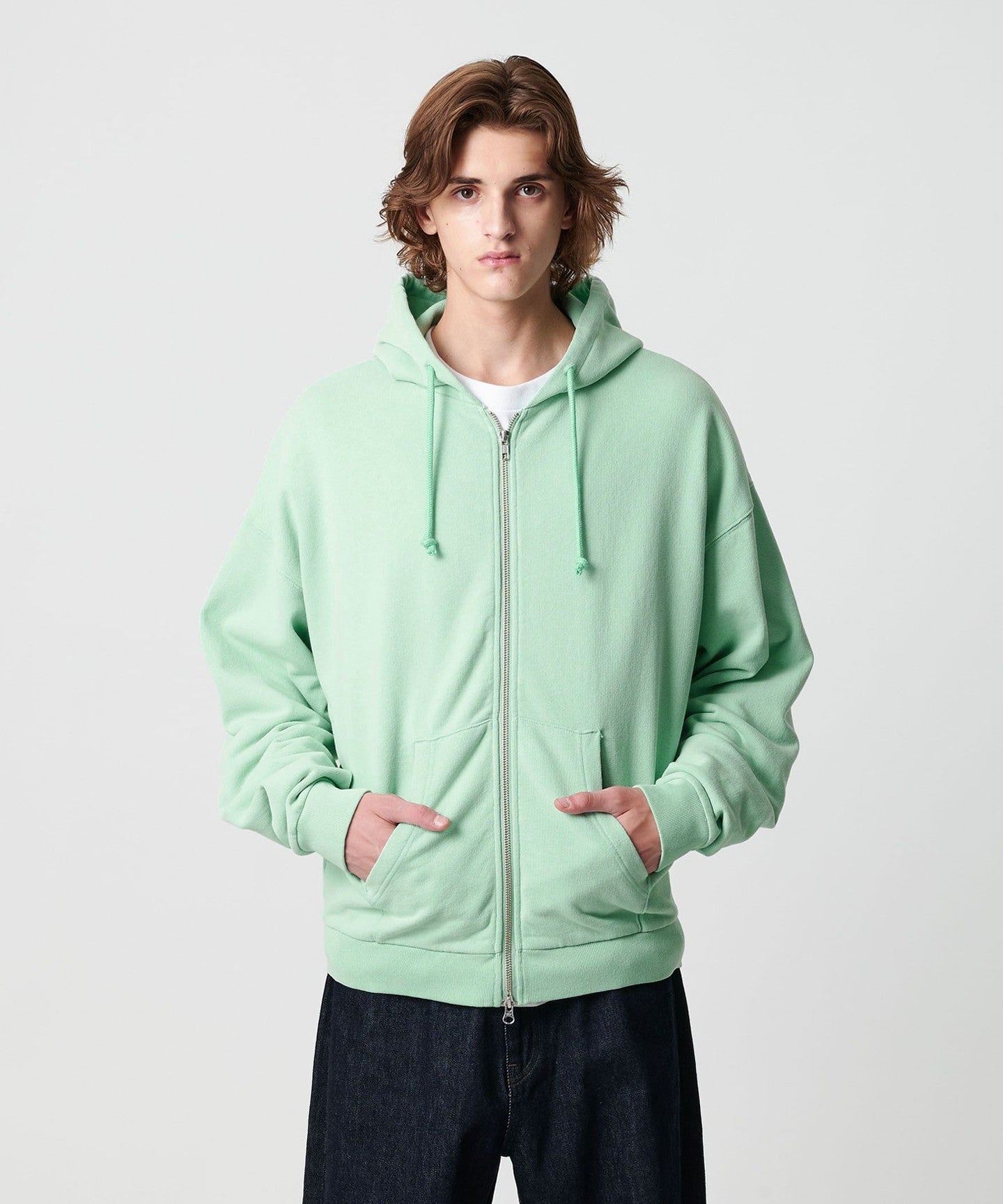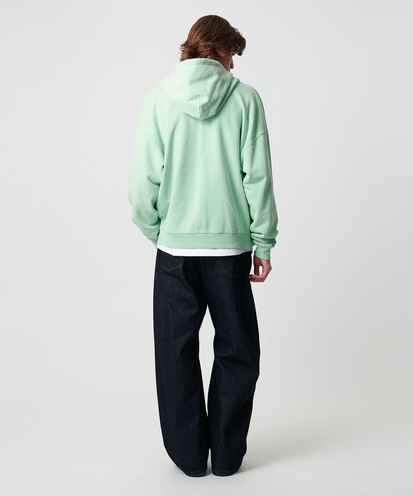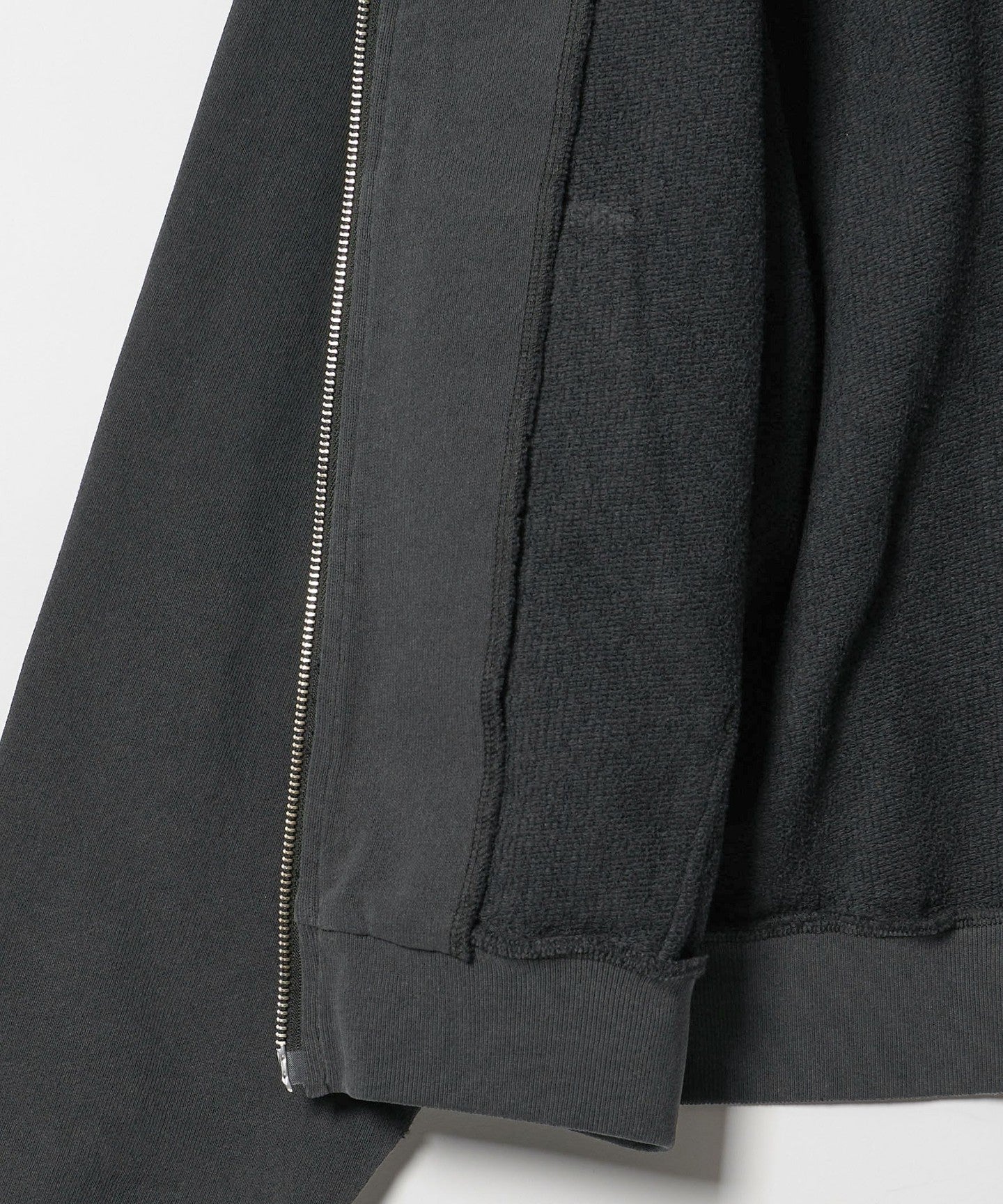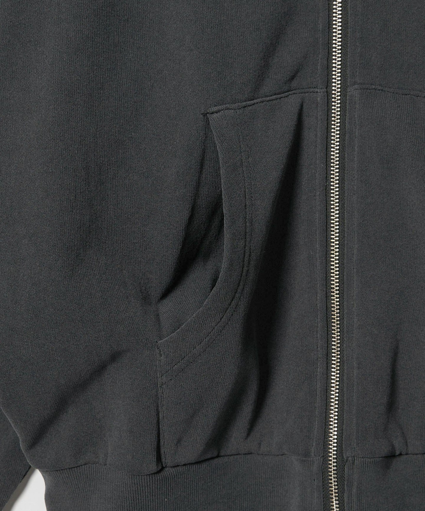 裏毛(裏起毛なし)のフレンチテリー生地を使用しており、秋口から春先まで長く着やすいアイテム。