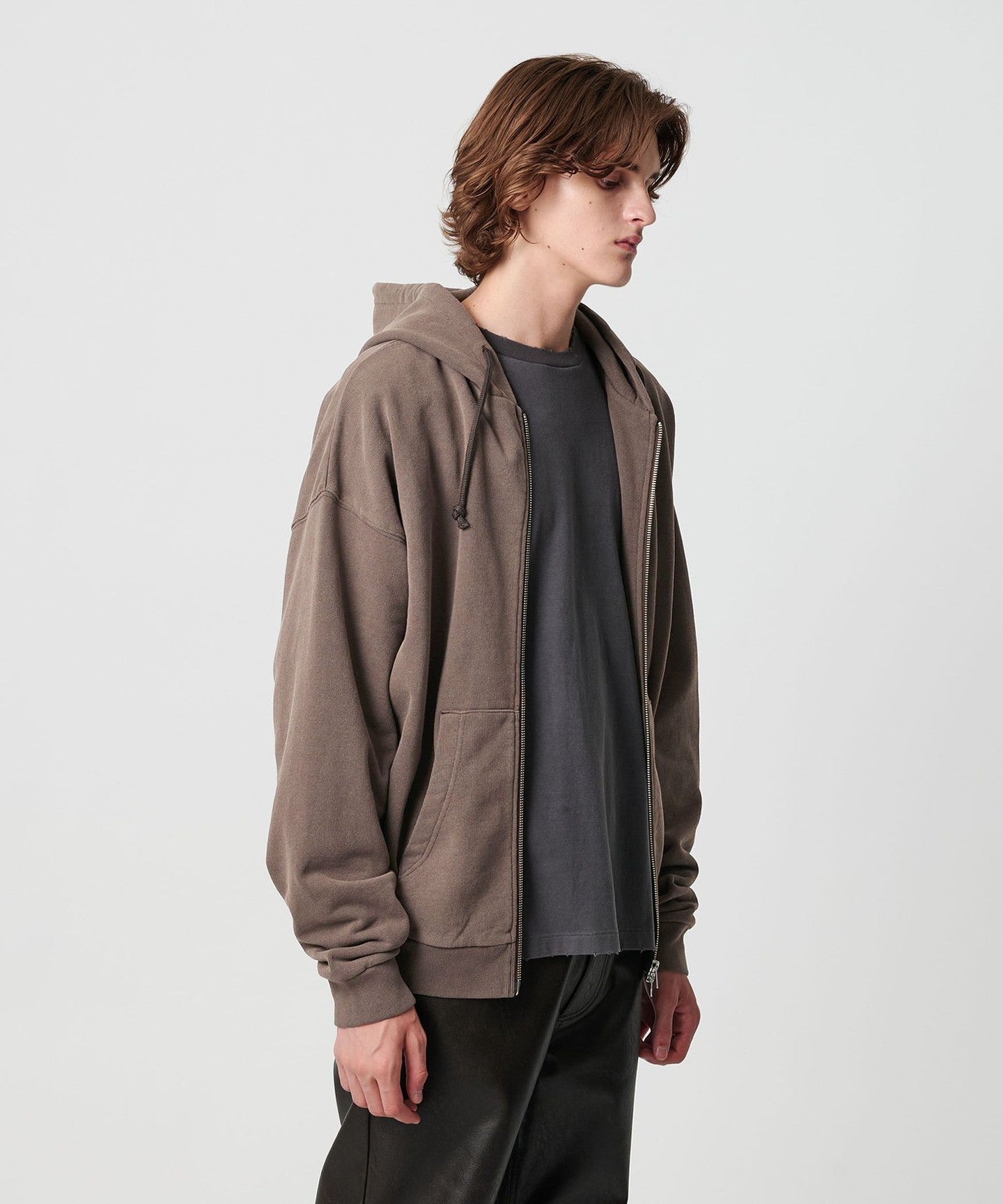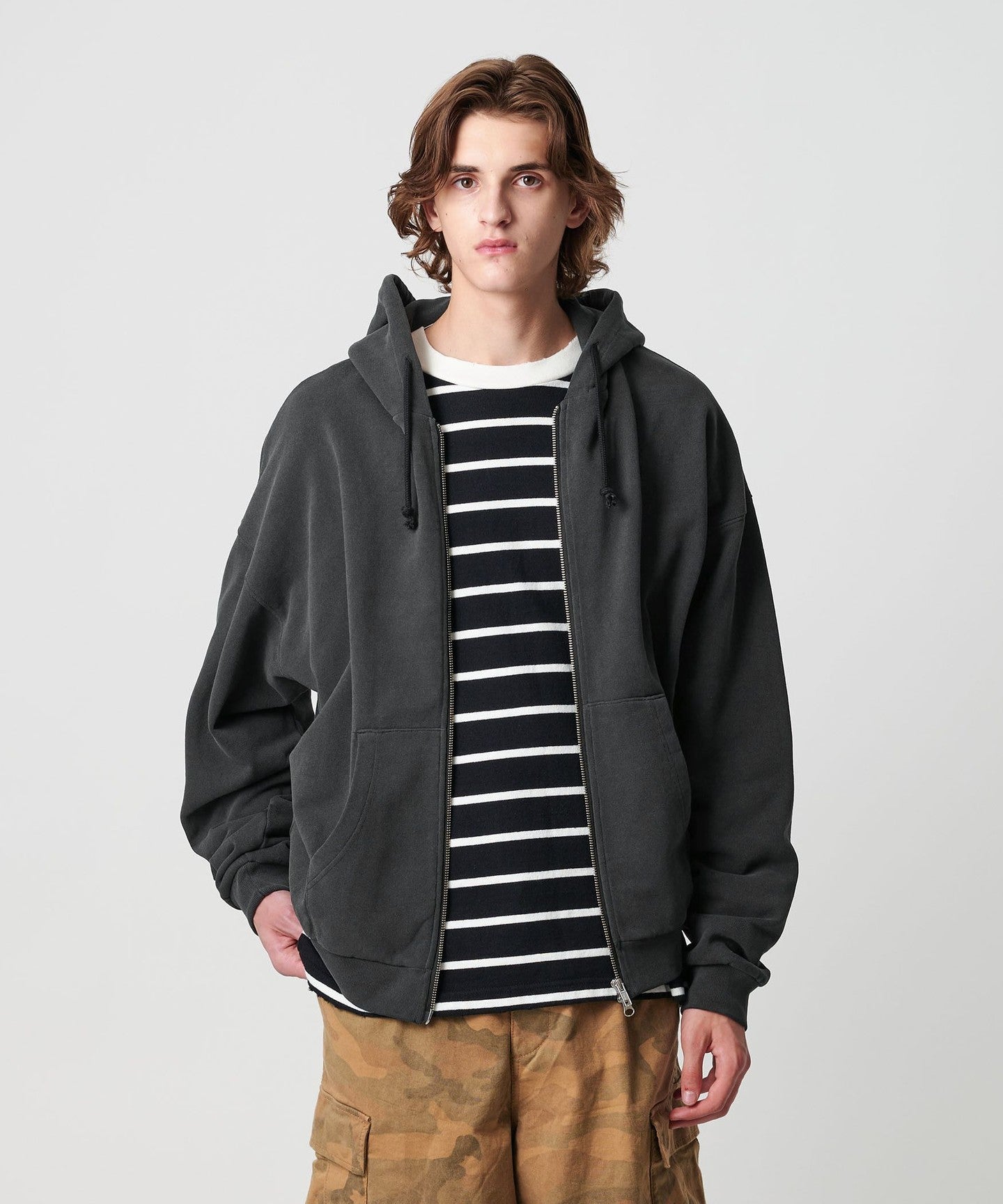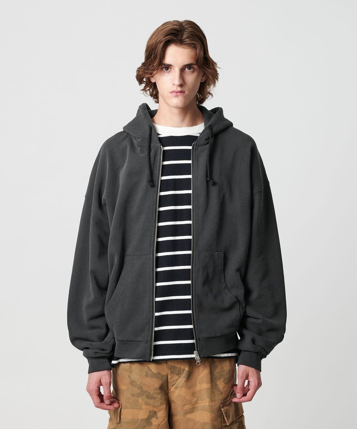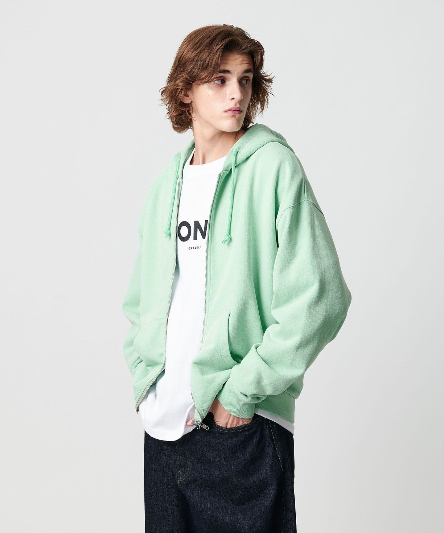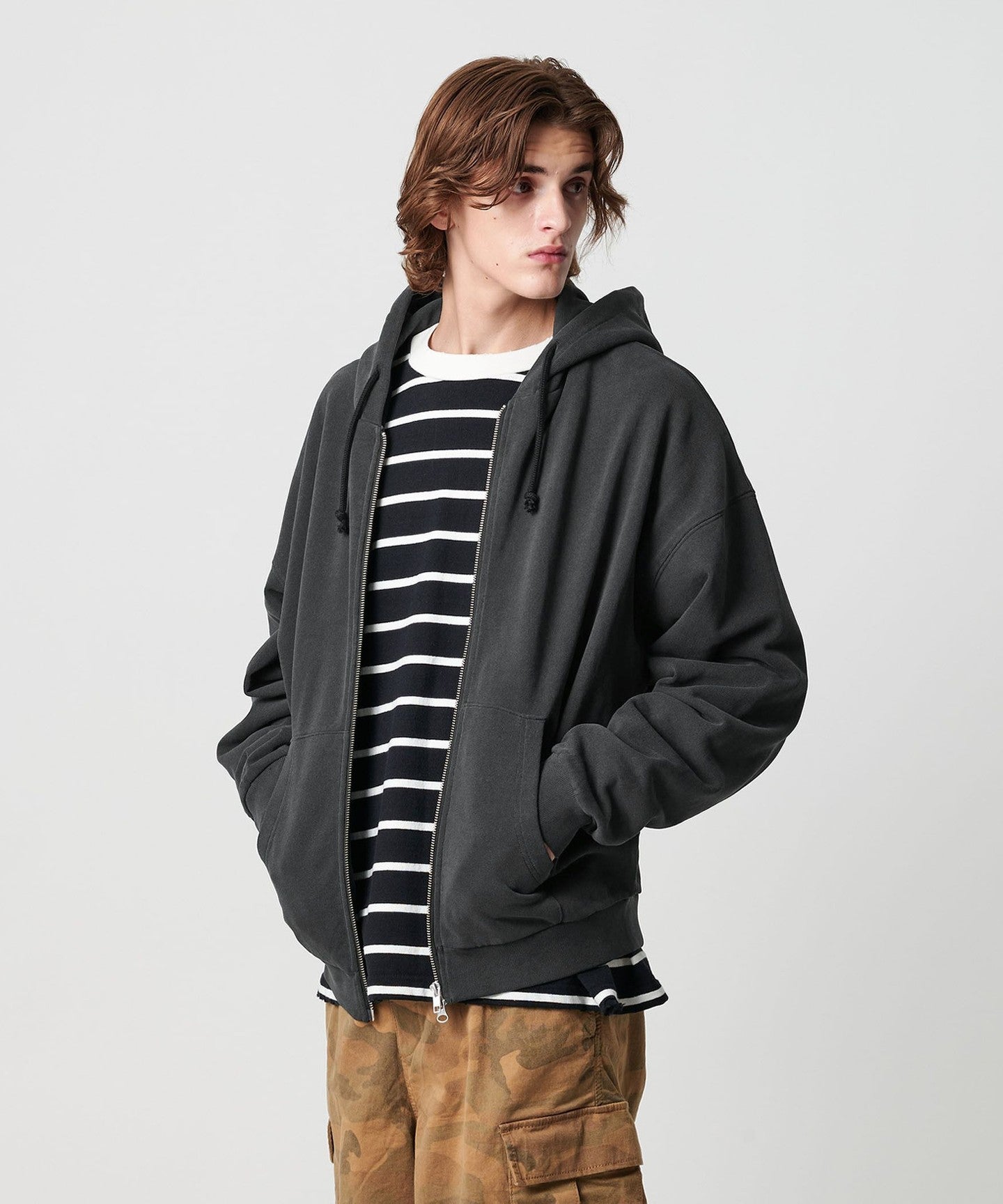 裏毛(裏起毛なし)のフレンチテリー生地を使用しており、秋口から春先まで長く着やすいアイテム。