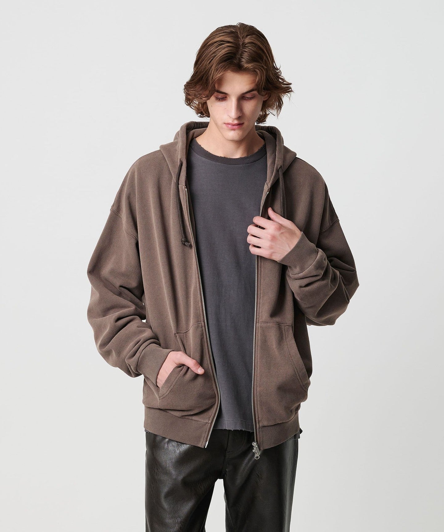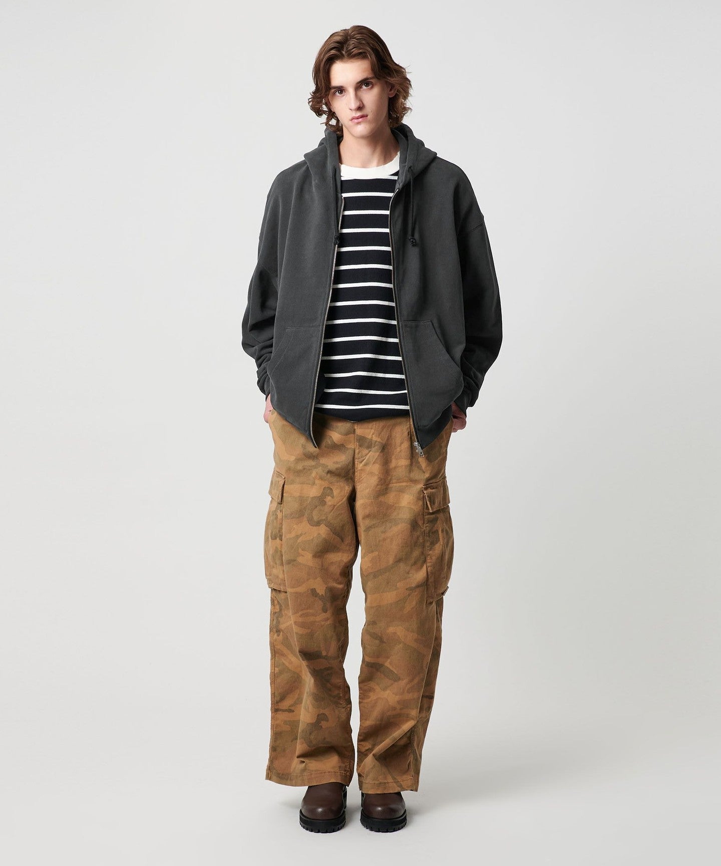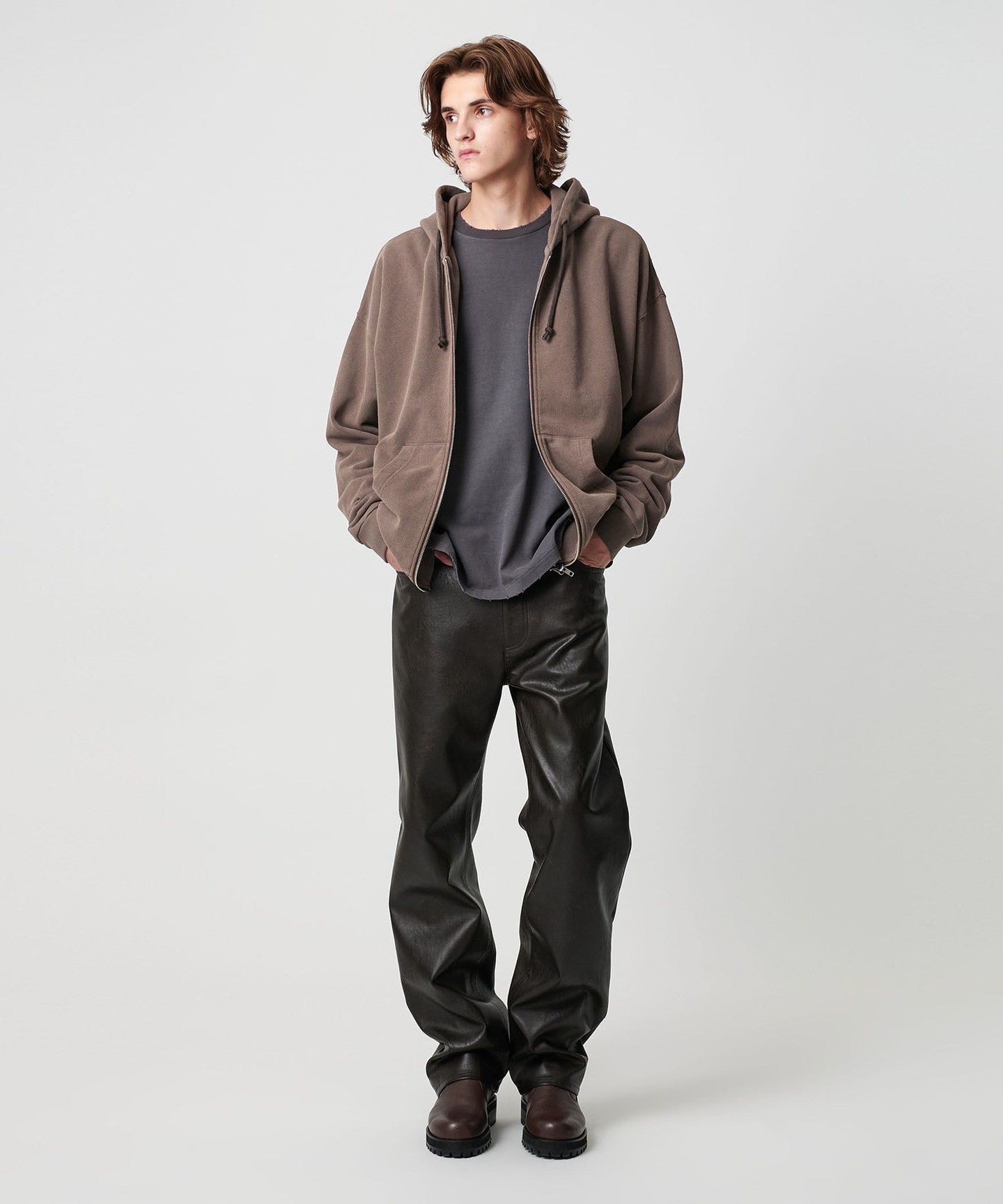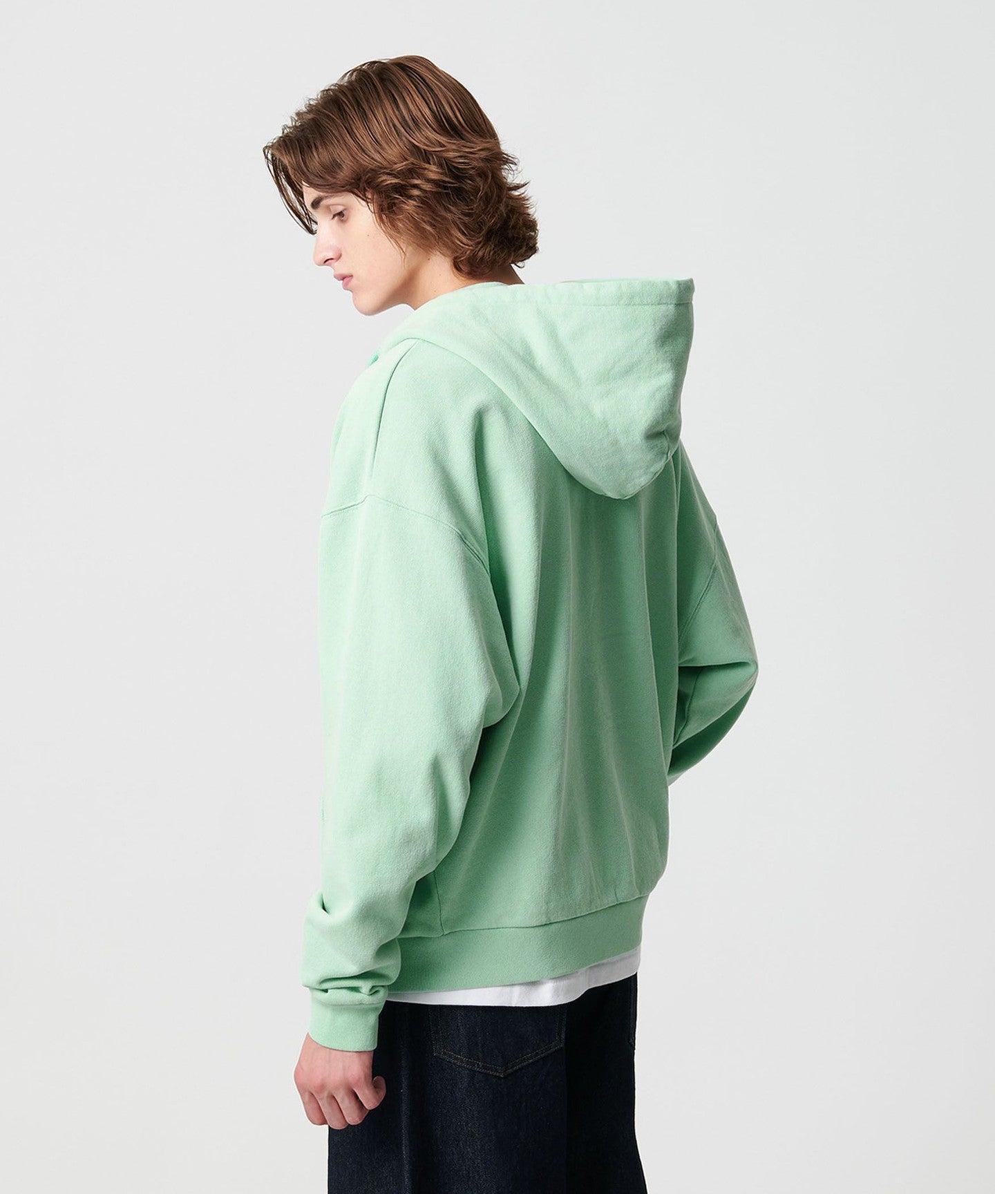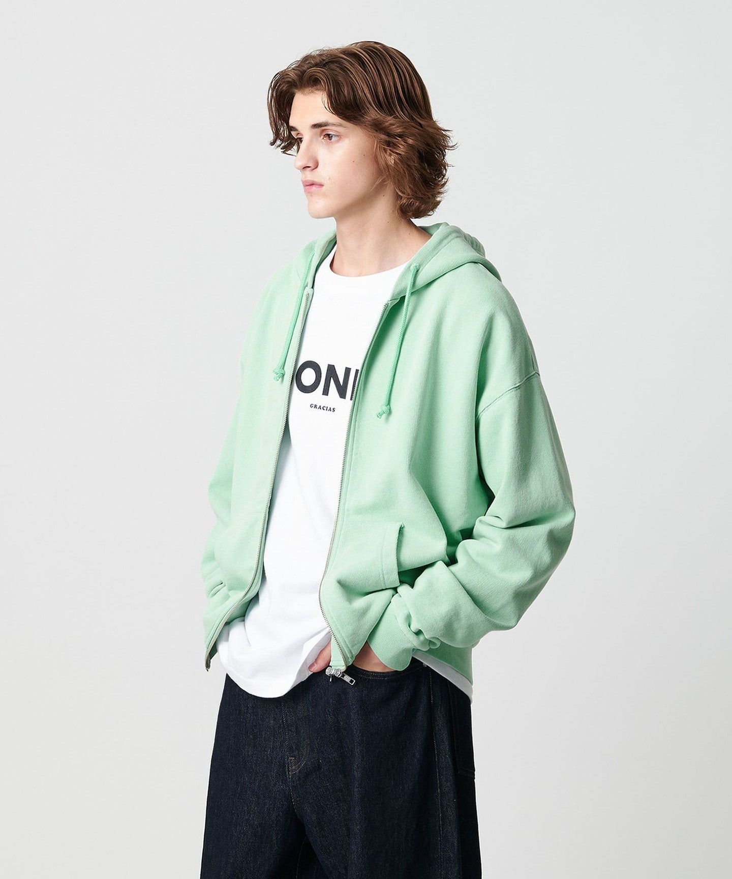 裏毛(裏起毛なし)のフレンチテリー生地を使用しており、秋口から春先まで長く着やすいアイテム。