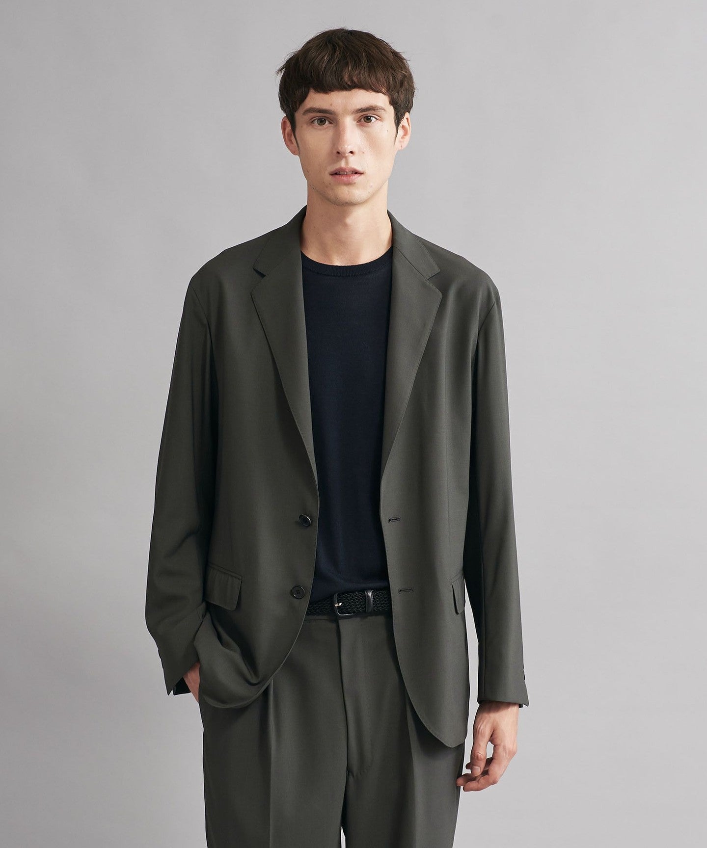 SOVEREIGNSolid Olive 2B Tailored Jacket RELAX MODEL -2WAY Stretch-