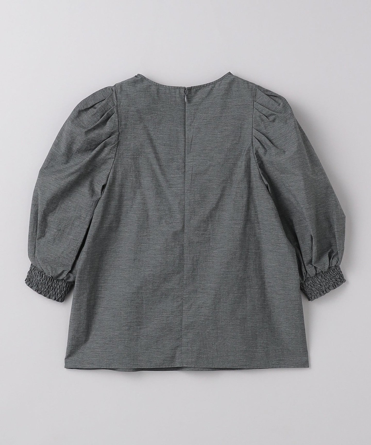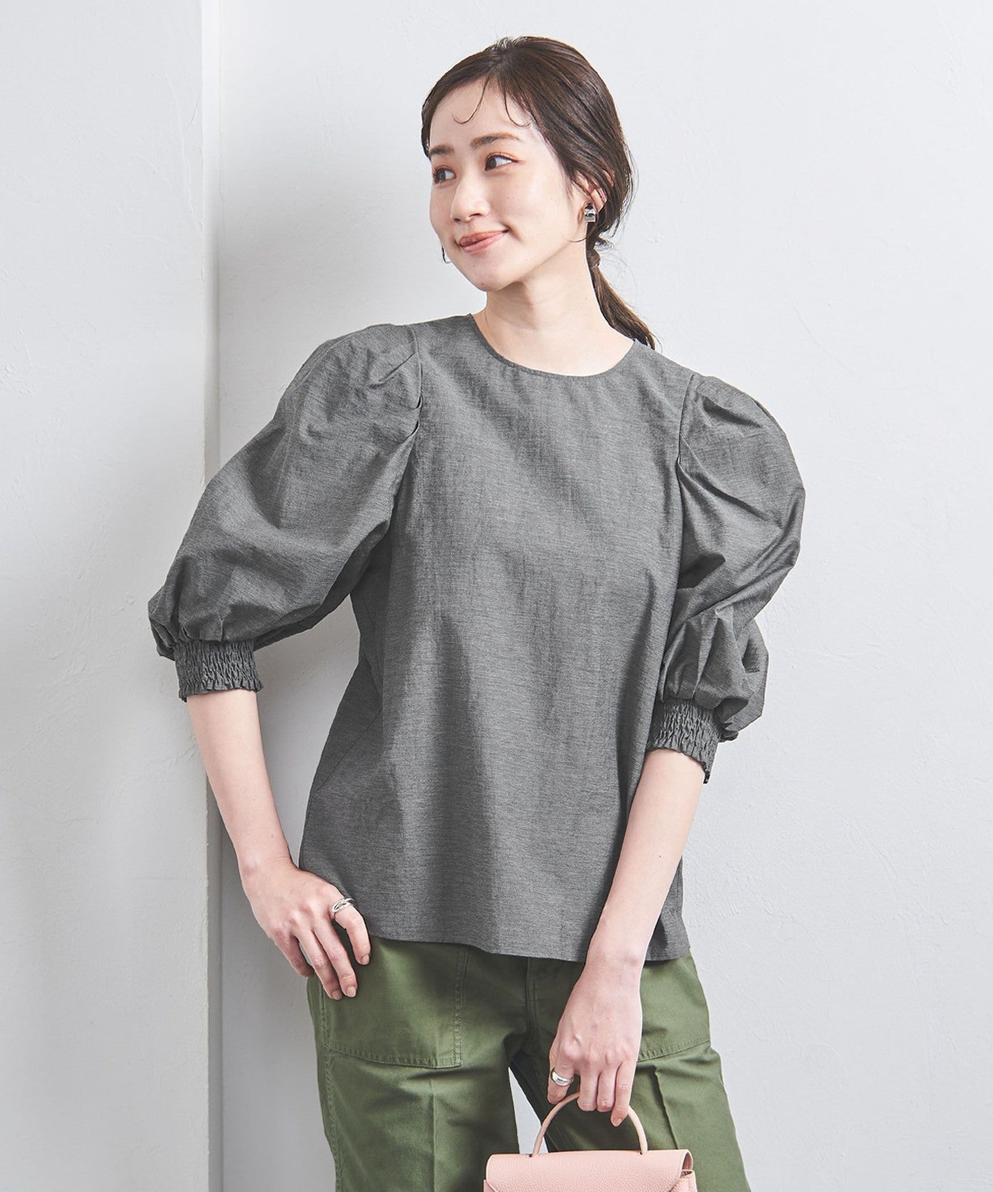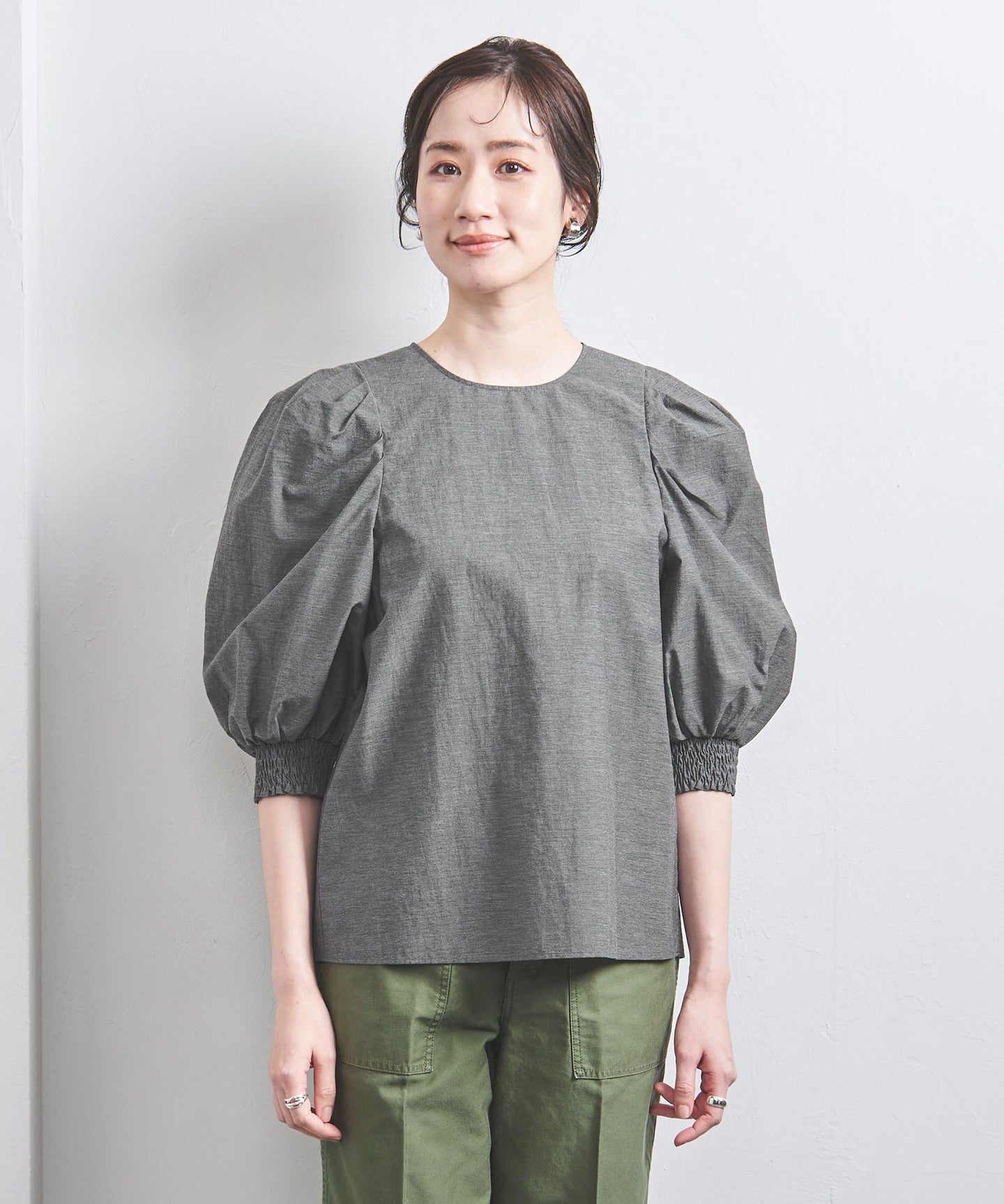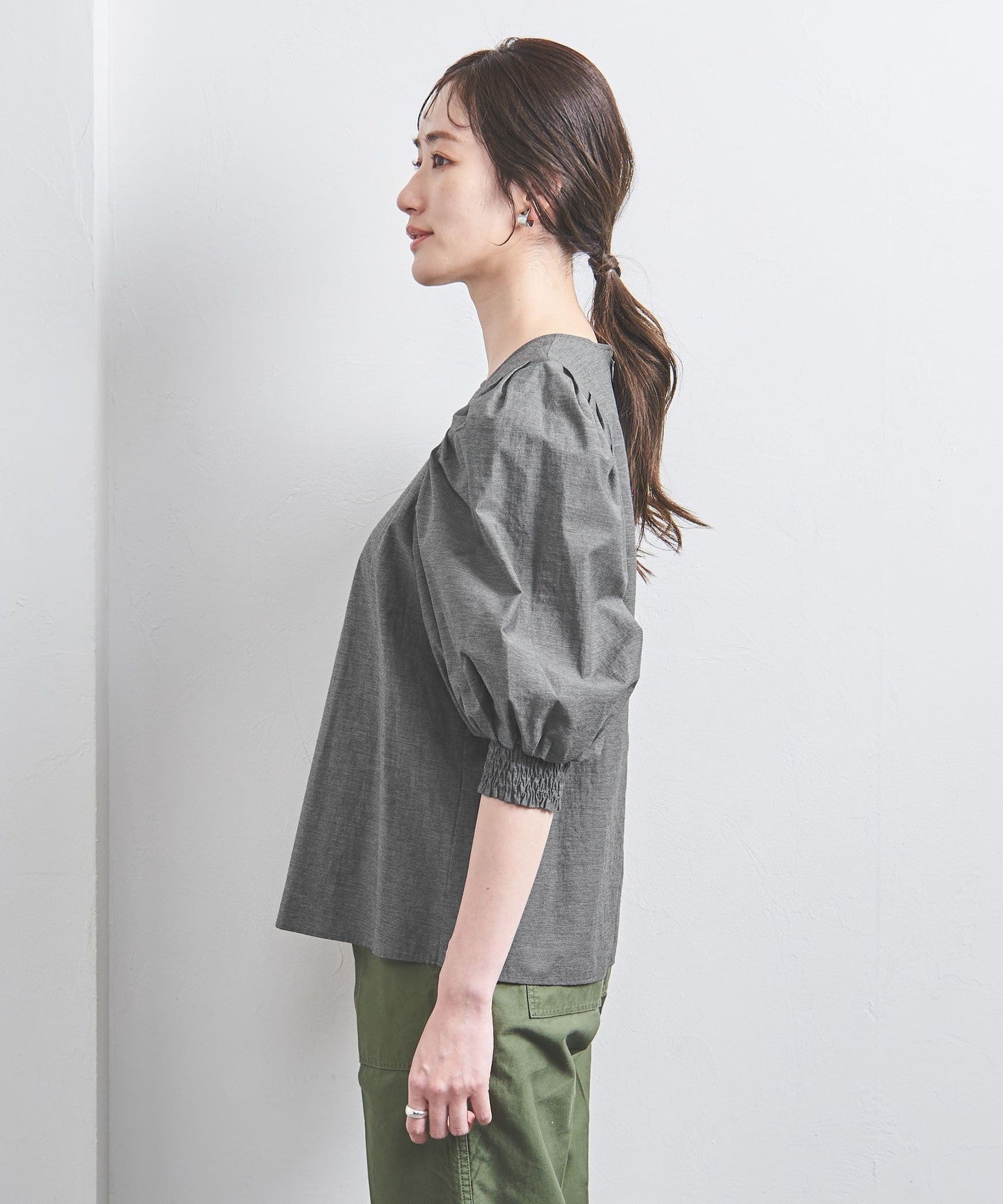 This blouse is below the elbow length and has narrow shoulders and attractive puff sleeves with tucks at the shoulders to add volume.