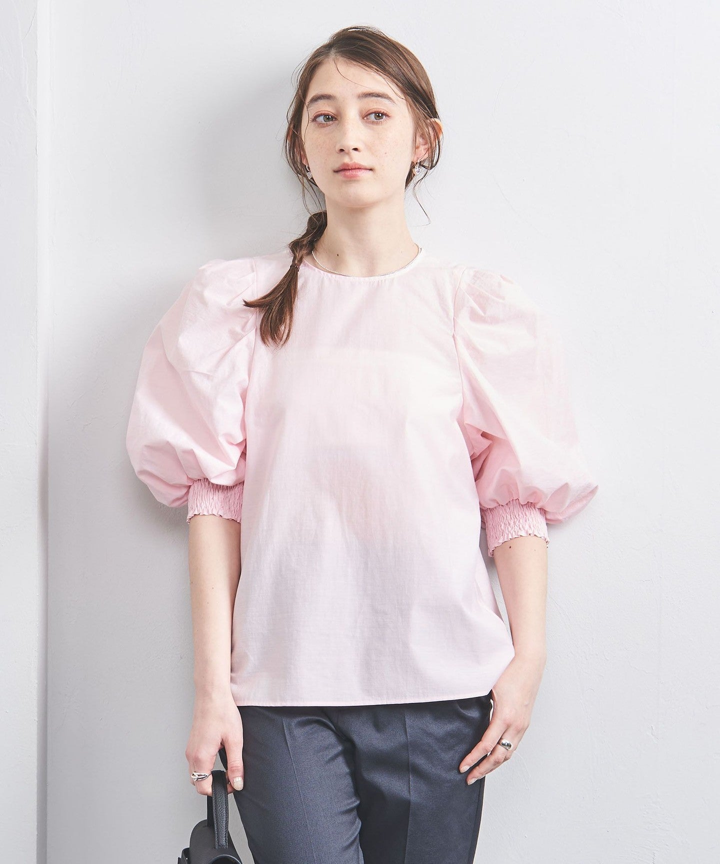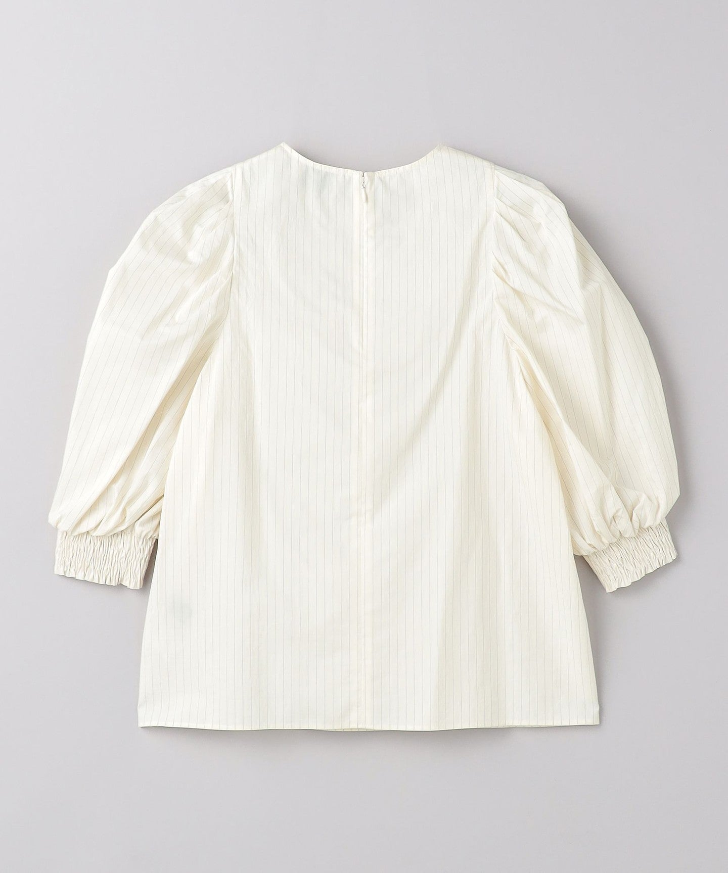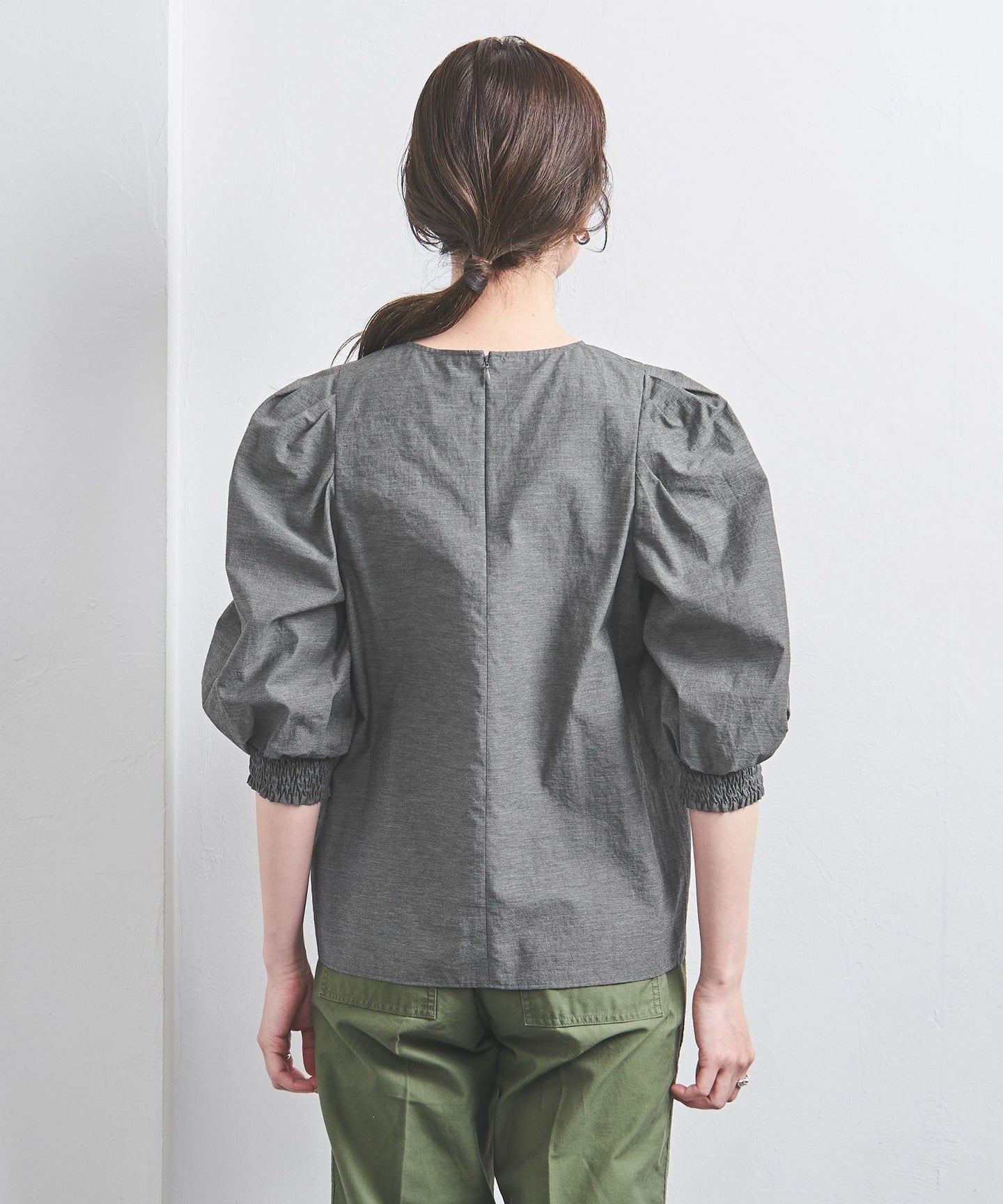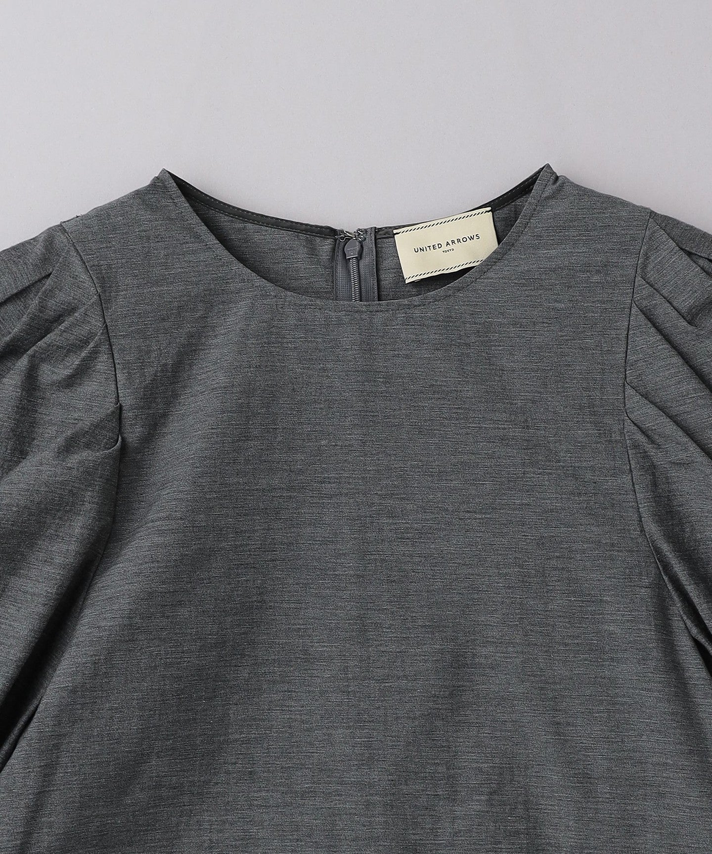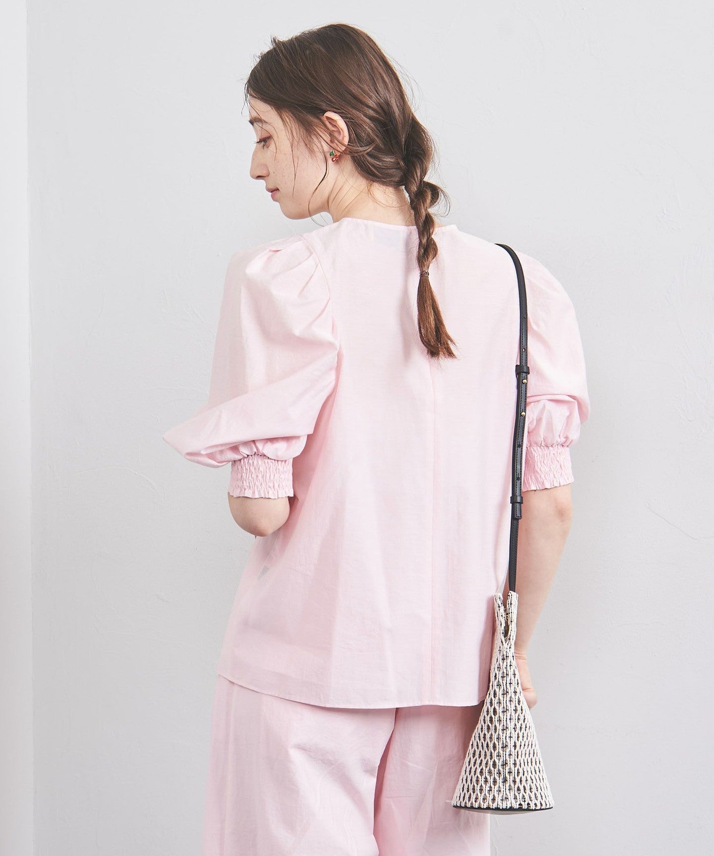 This blouse is below the elbow length and has narrow shoulders and attractive puff sleeves with tucks at the shoulders to add volume.