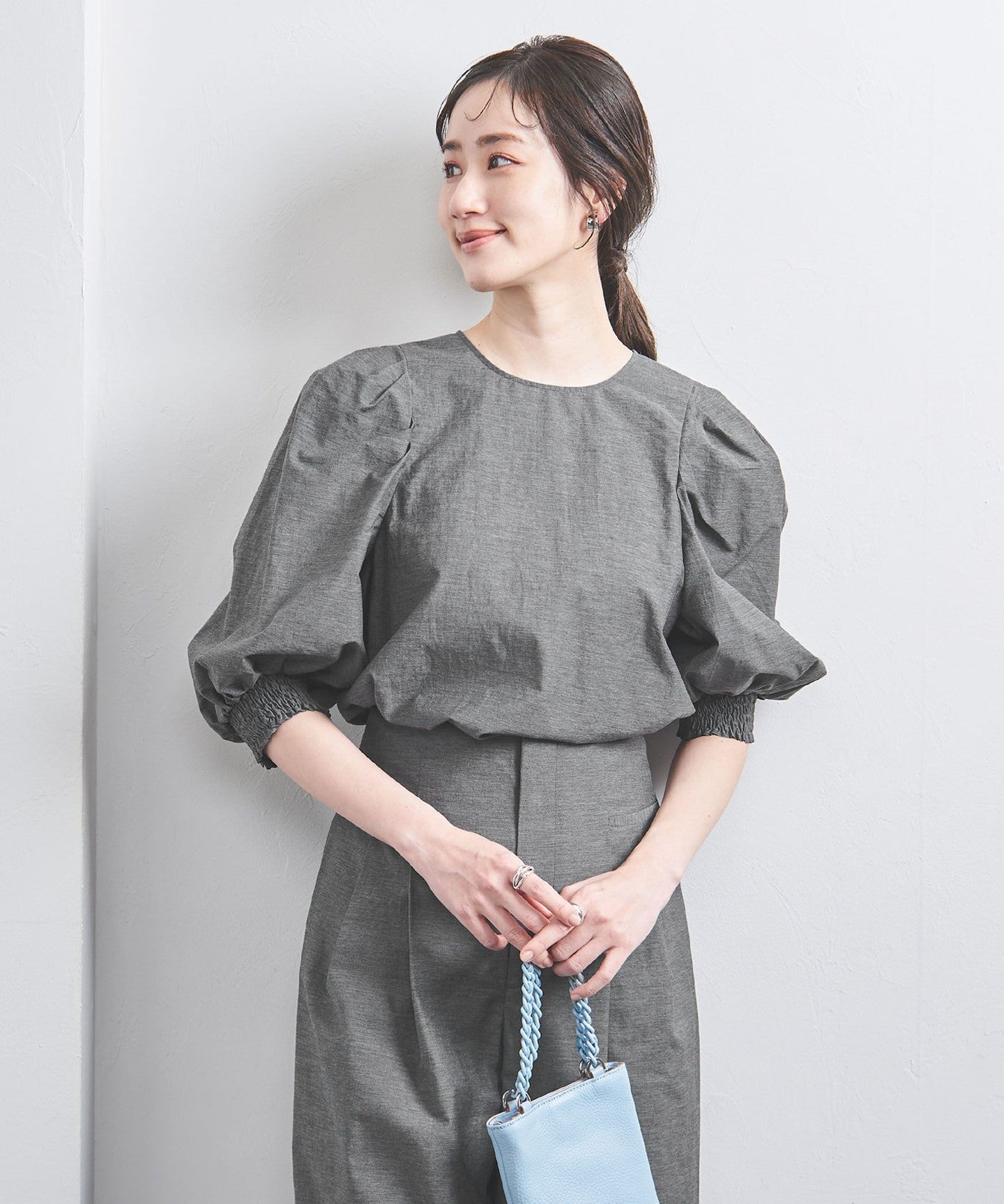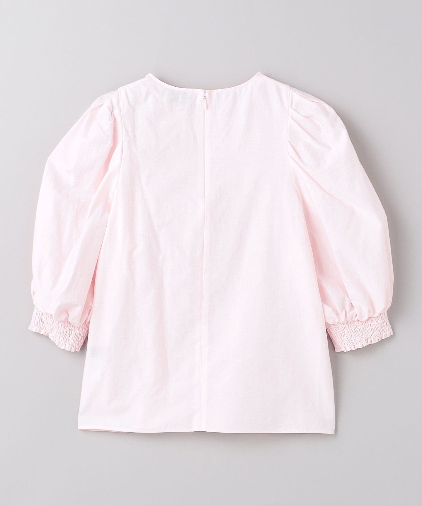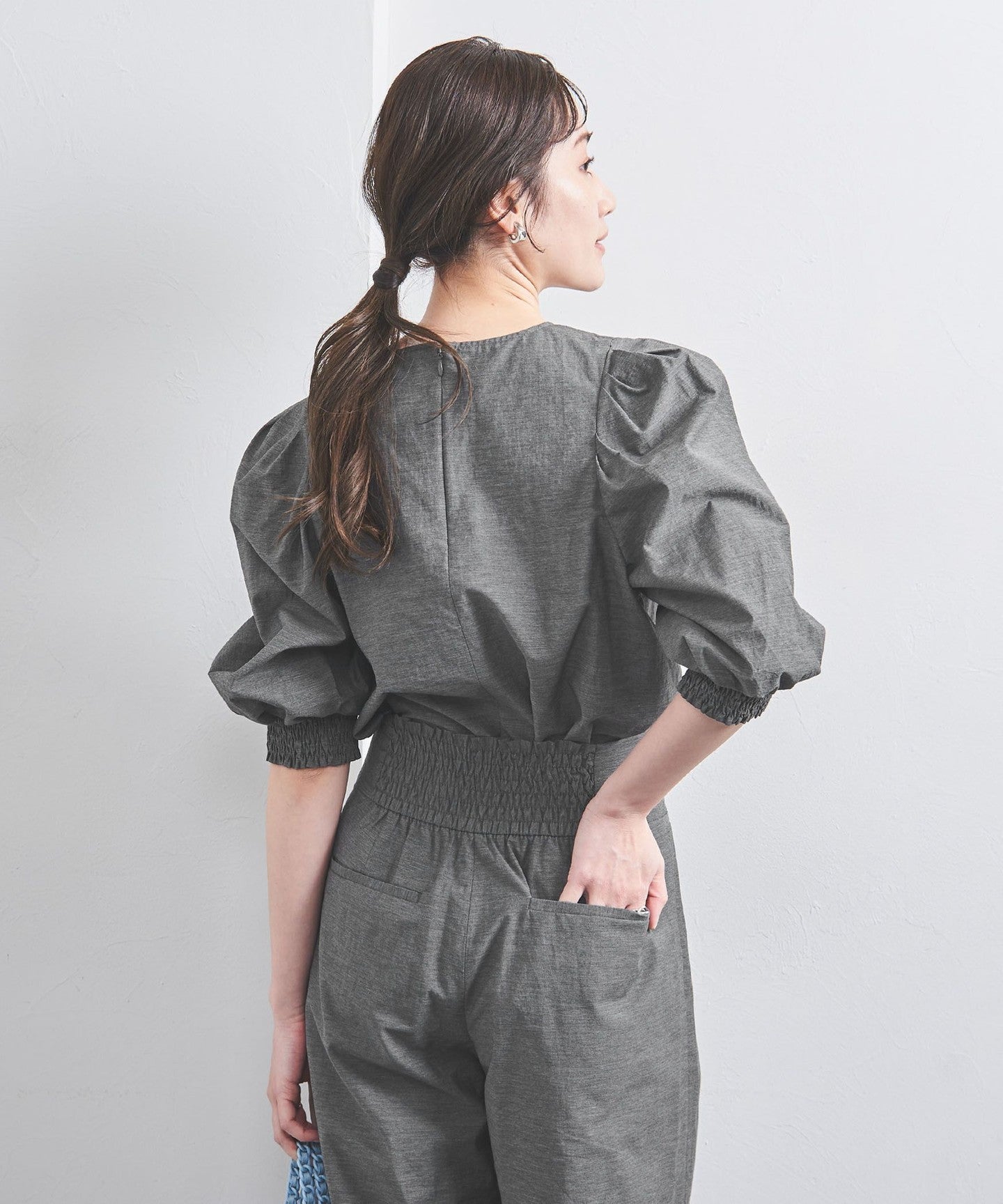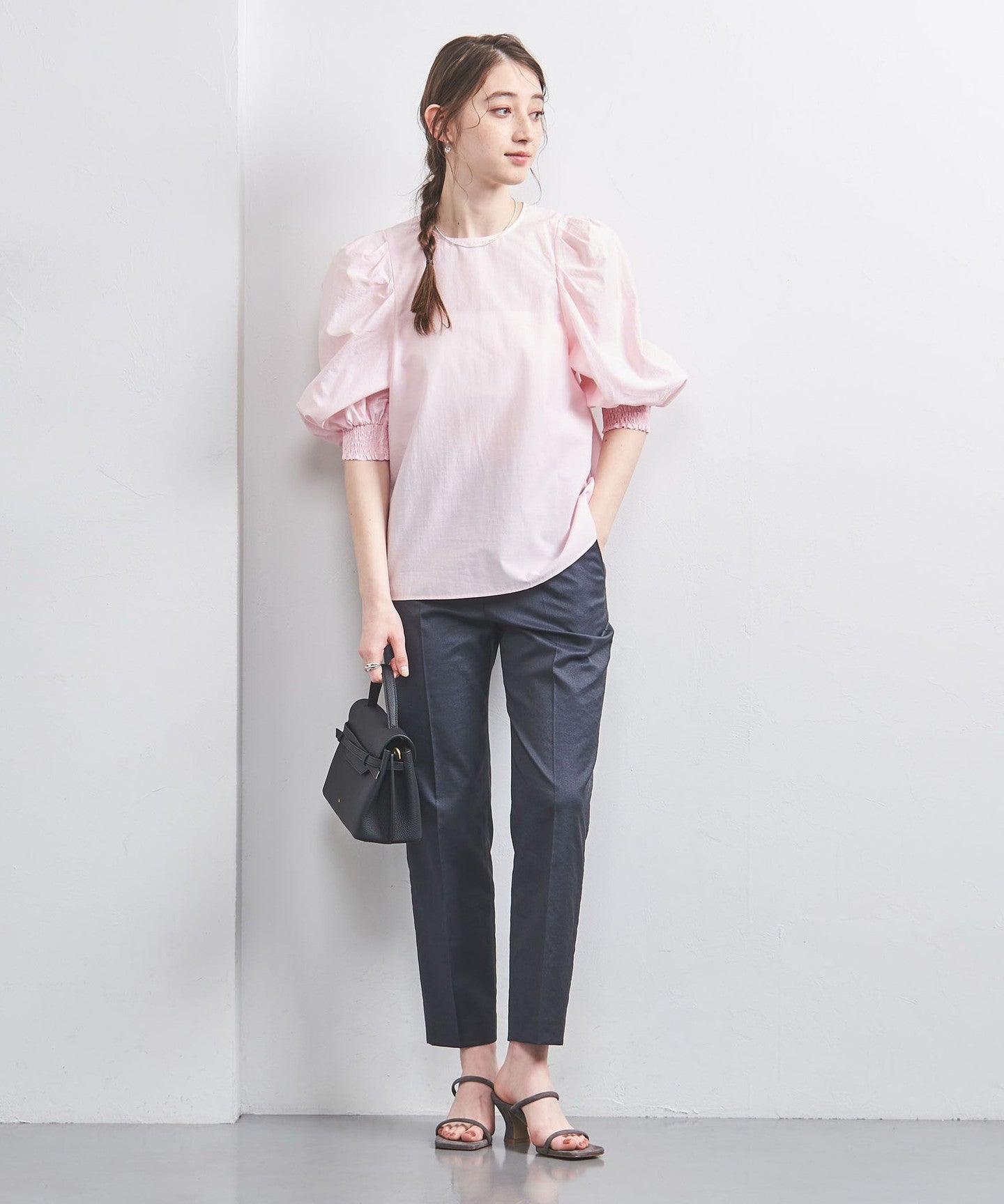 This blouse is below the elbow length and has narrow shoulders and attractive puff sleeves with tucks at the shoulders to add volume.