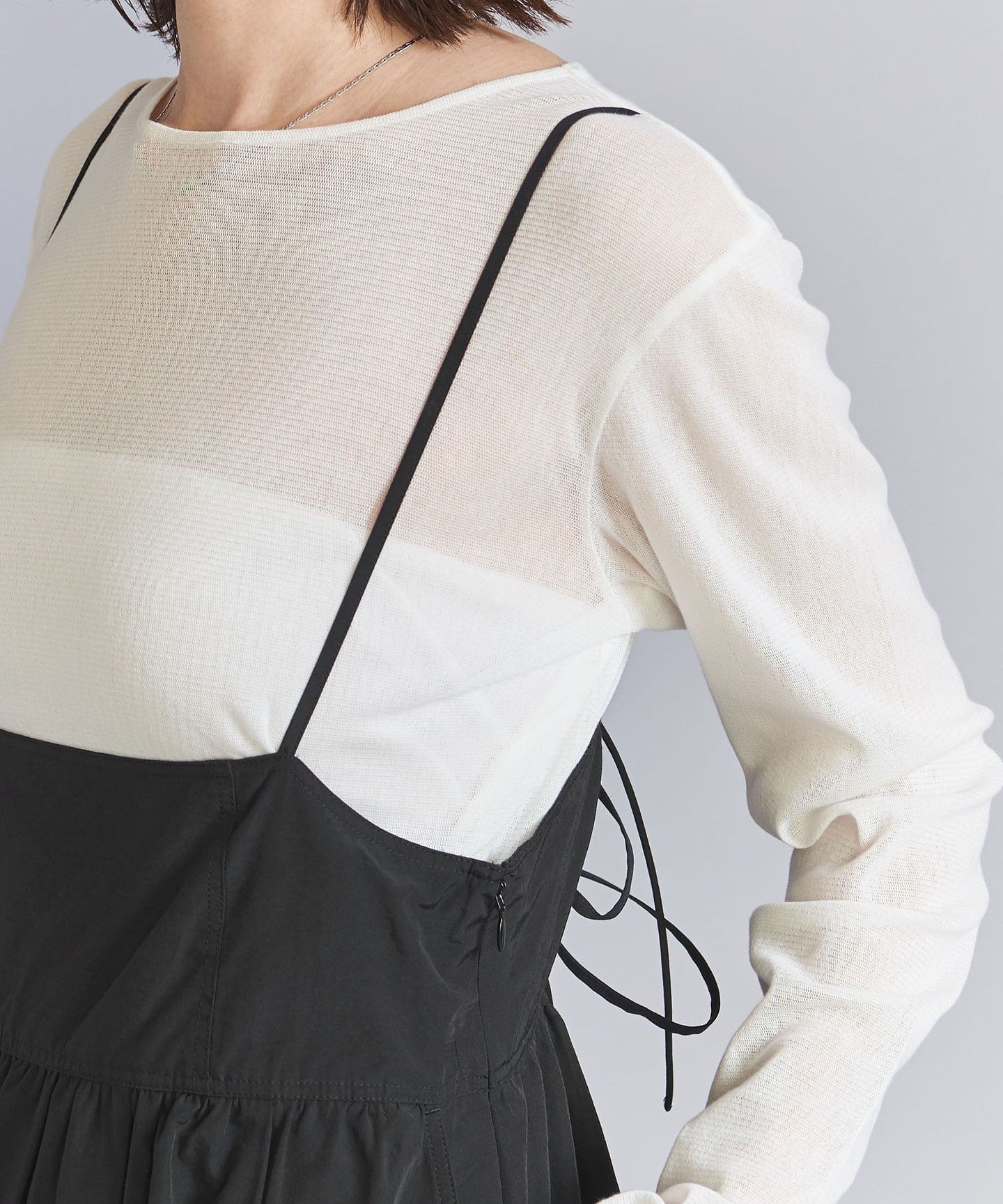 delicateSTRING The compact chest piece remains the same, but the back has a cutout design with lace-up details for a more backless look. TIE We have created a look that makes the product stand out.