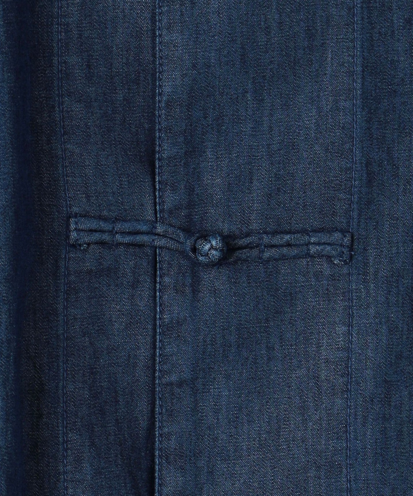This piece makes use of the unique material of denim to create a voluminous silhouette that is comfortable to wear, and can also be worn as a jacket by leaving the front open.