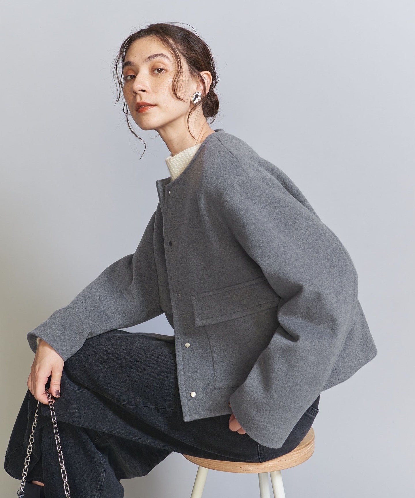 The clean, no-collar design goes well with turtlenecks and STOLE It's easy to match with anything, and is recommended for a look that's unique to autumn and winter.