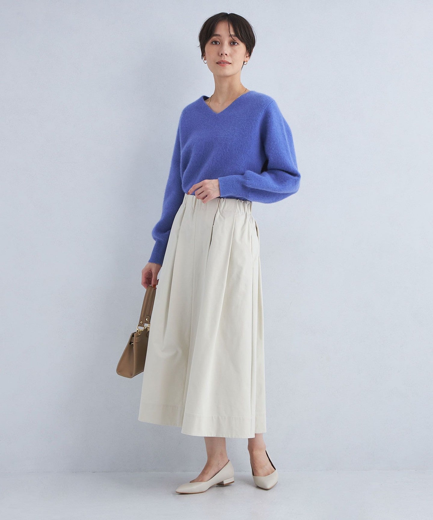 The softly flowing silhouette gives a mature and feminine impression.