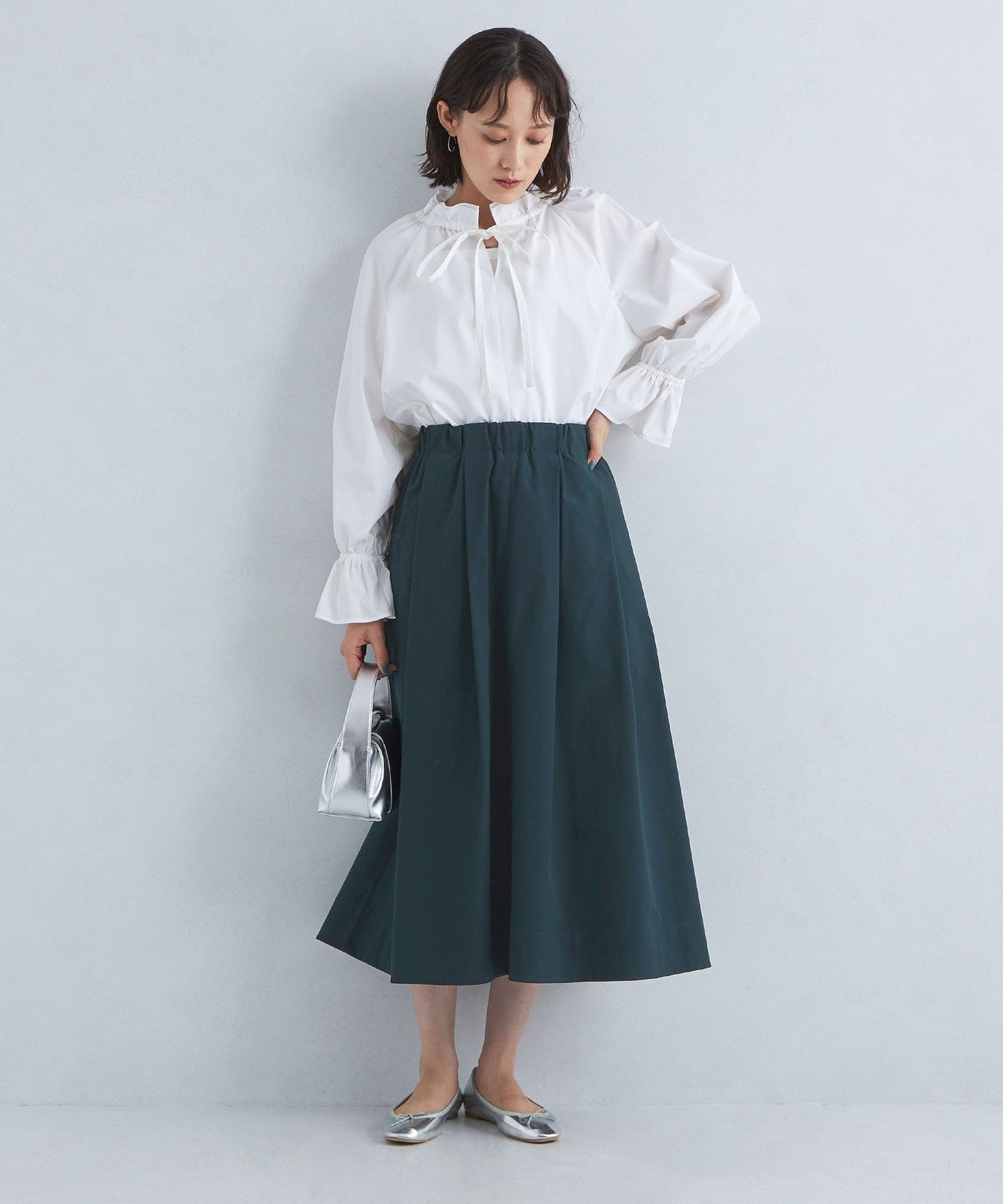 We recommend pairing it with a top that has a clean, compact silhouette.