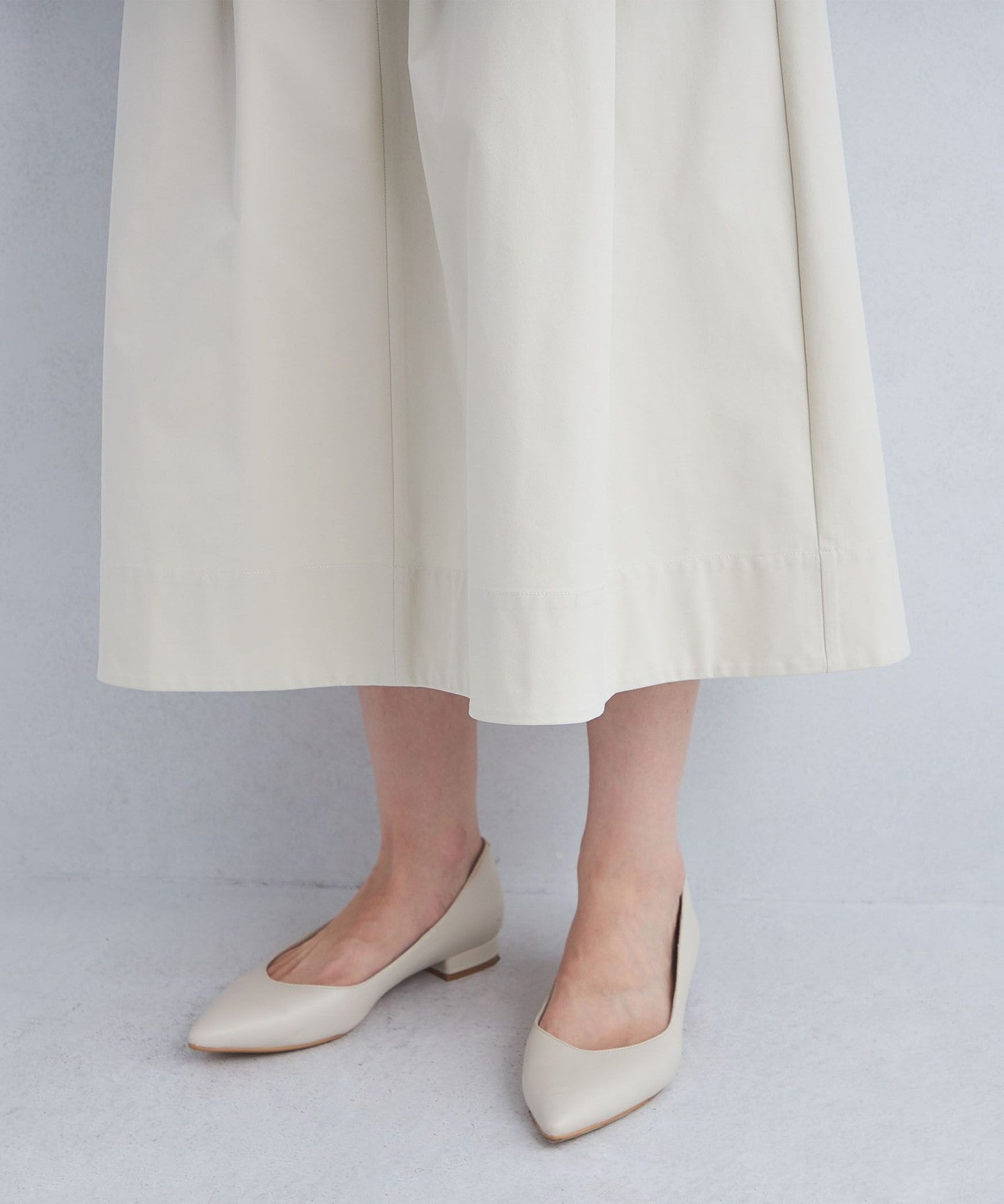 A flared skirt with a tuck design.