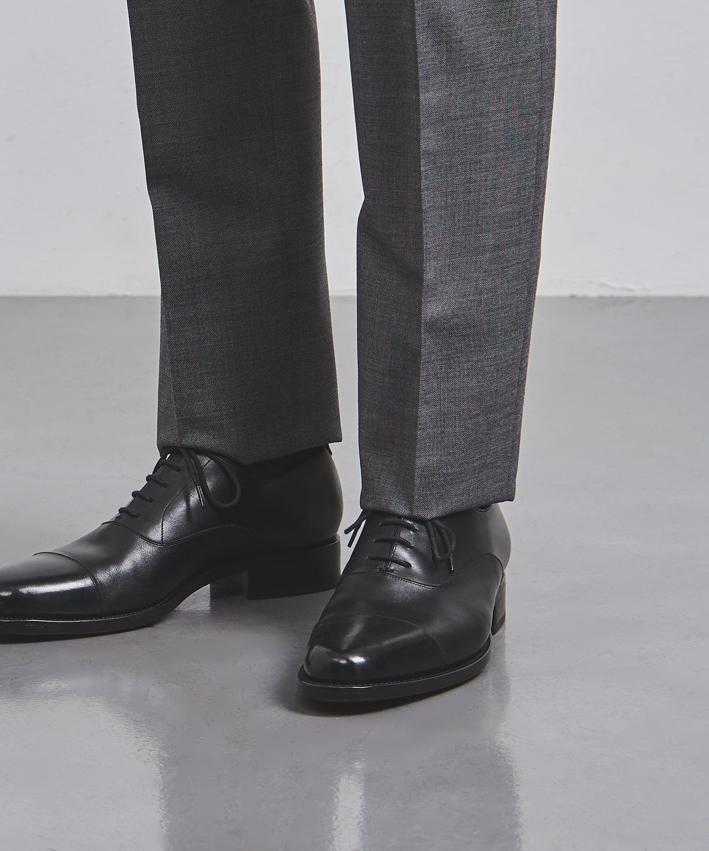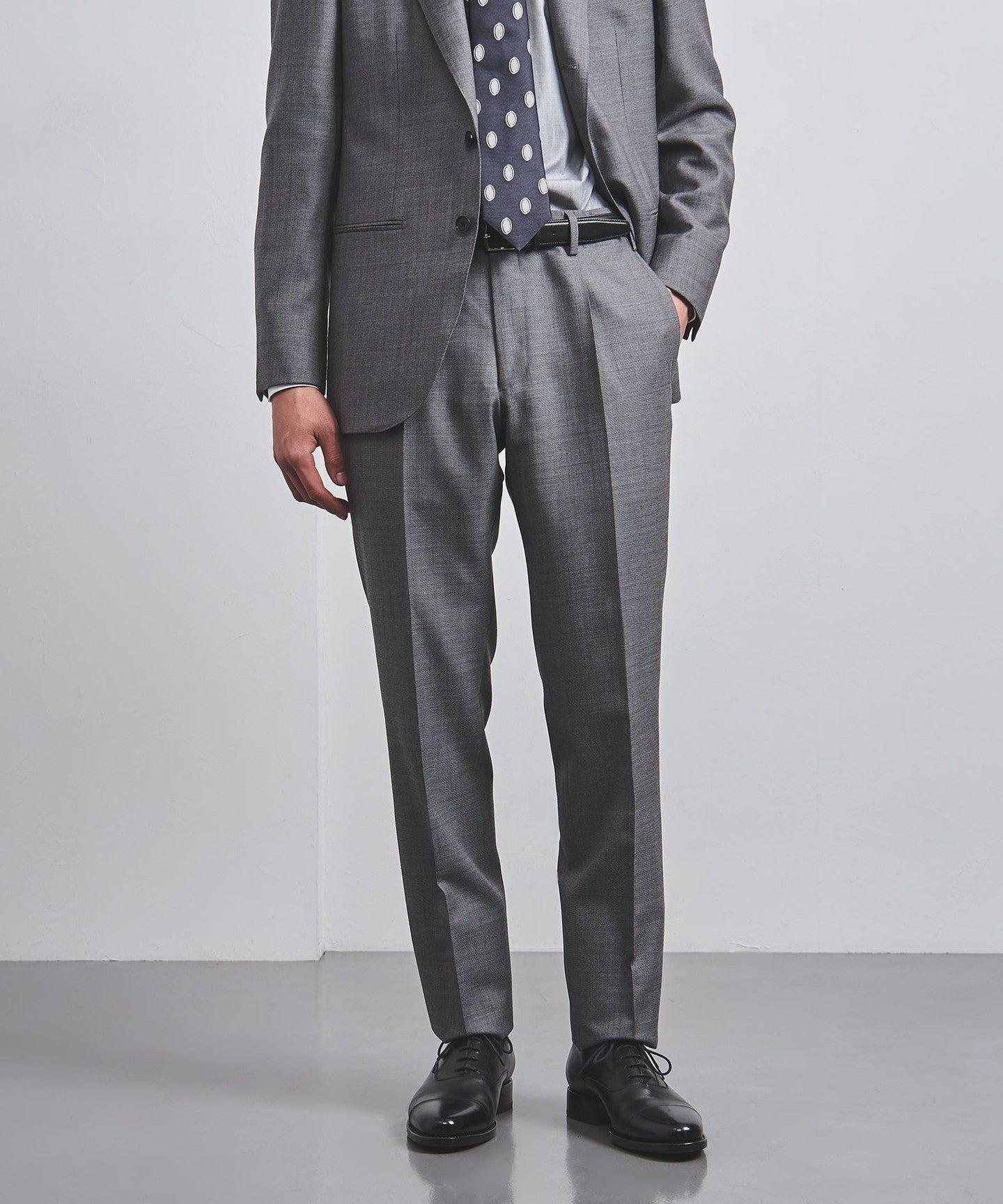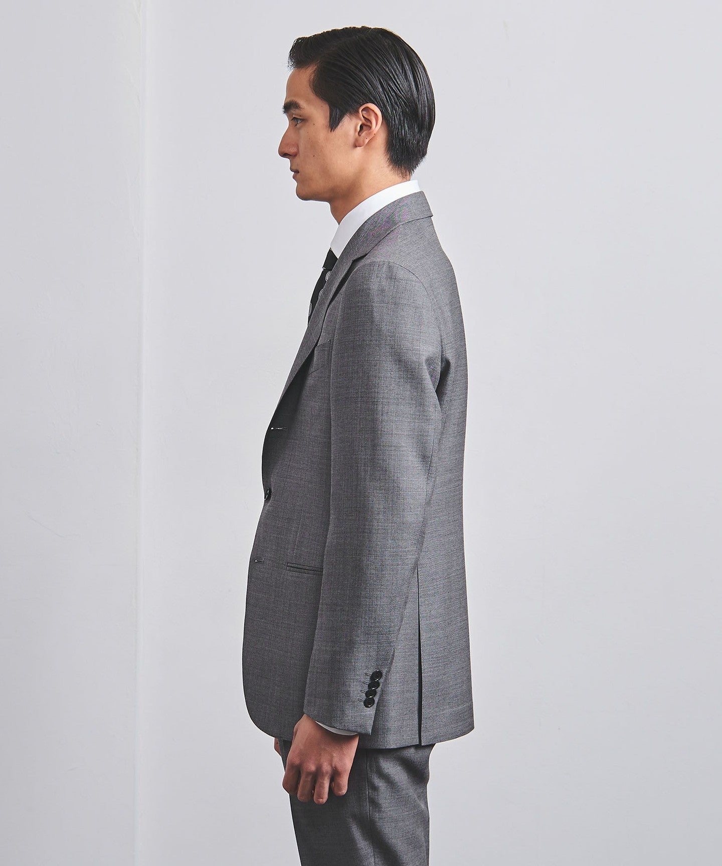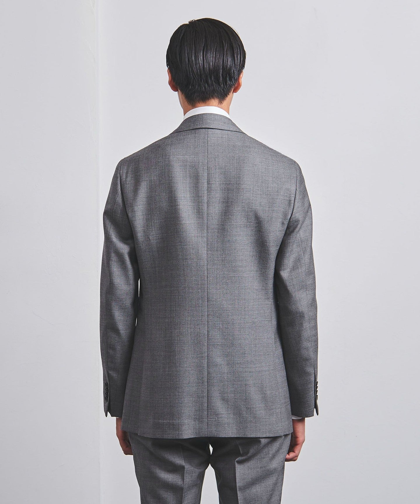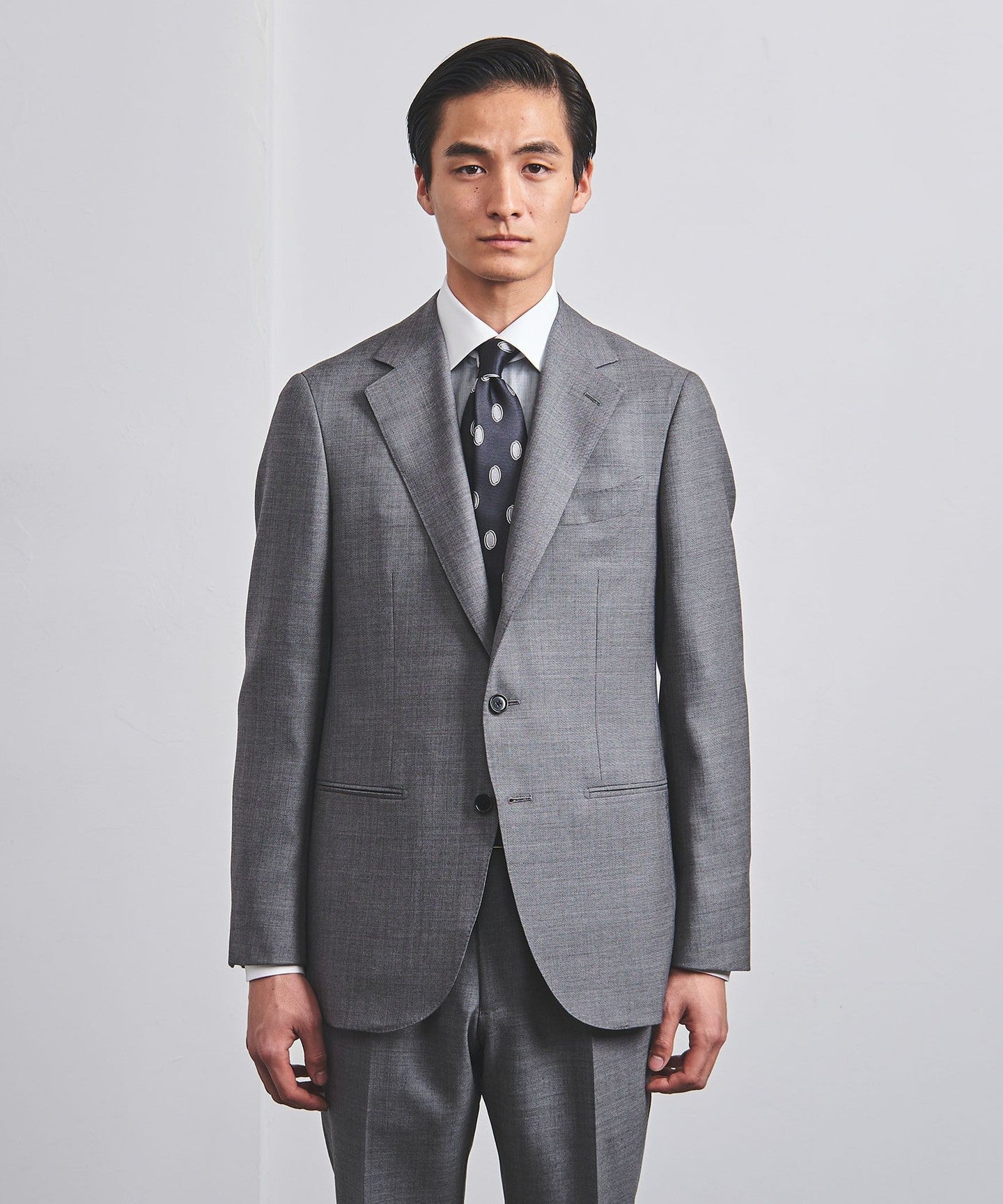 A standard suit model with a relaxed silhouette that captures the modern era.