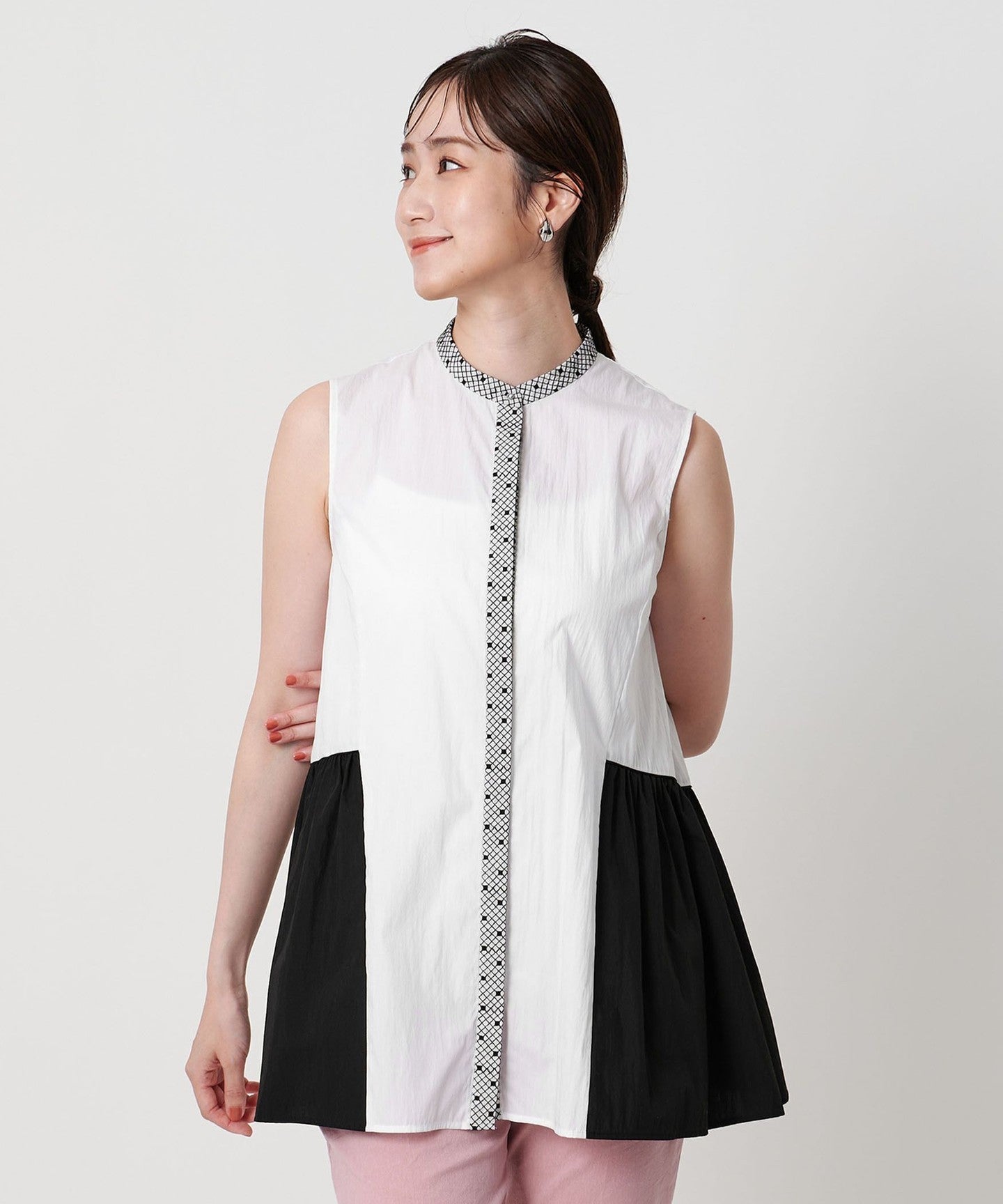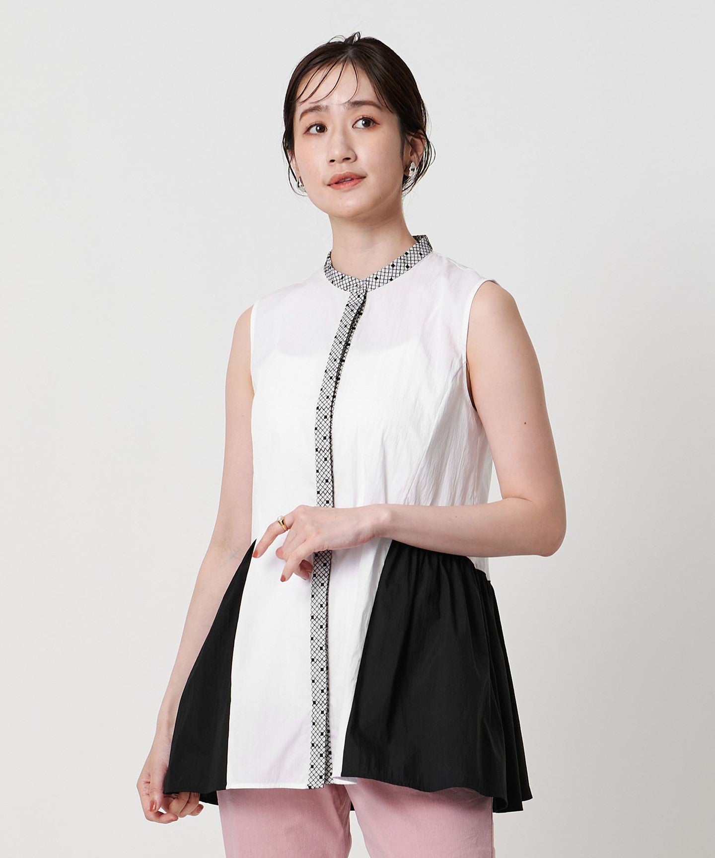 The color scheme of the peplum part is also a highlight, and the gathered silhouette gives a feminine impression.