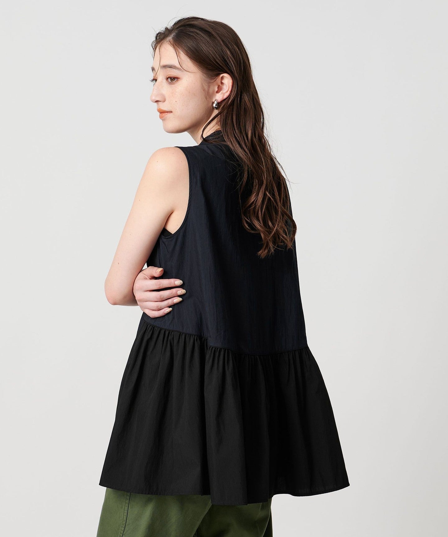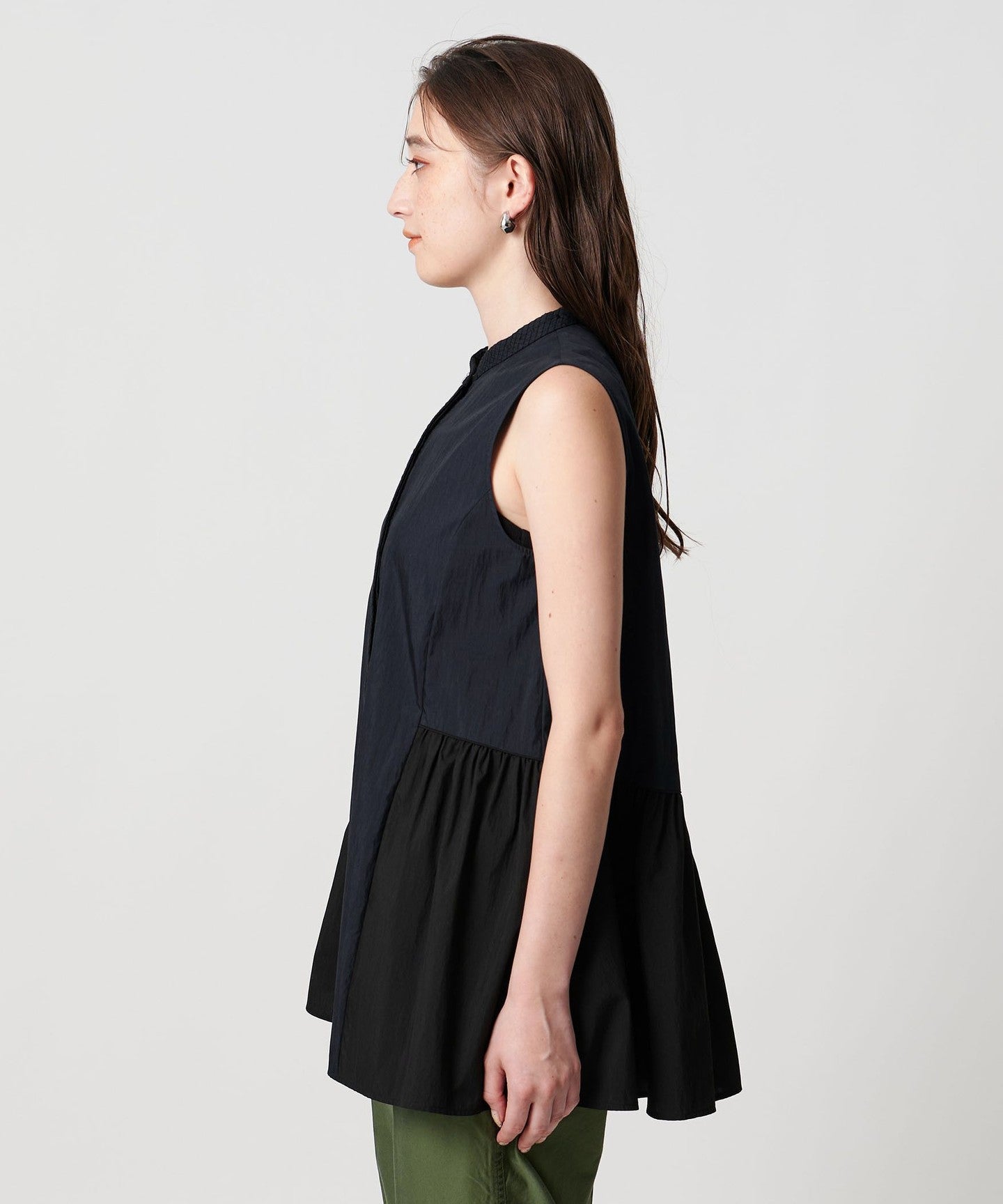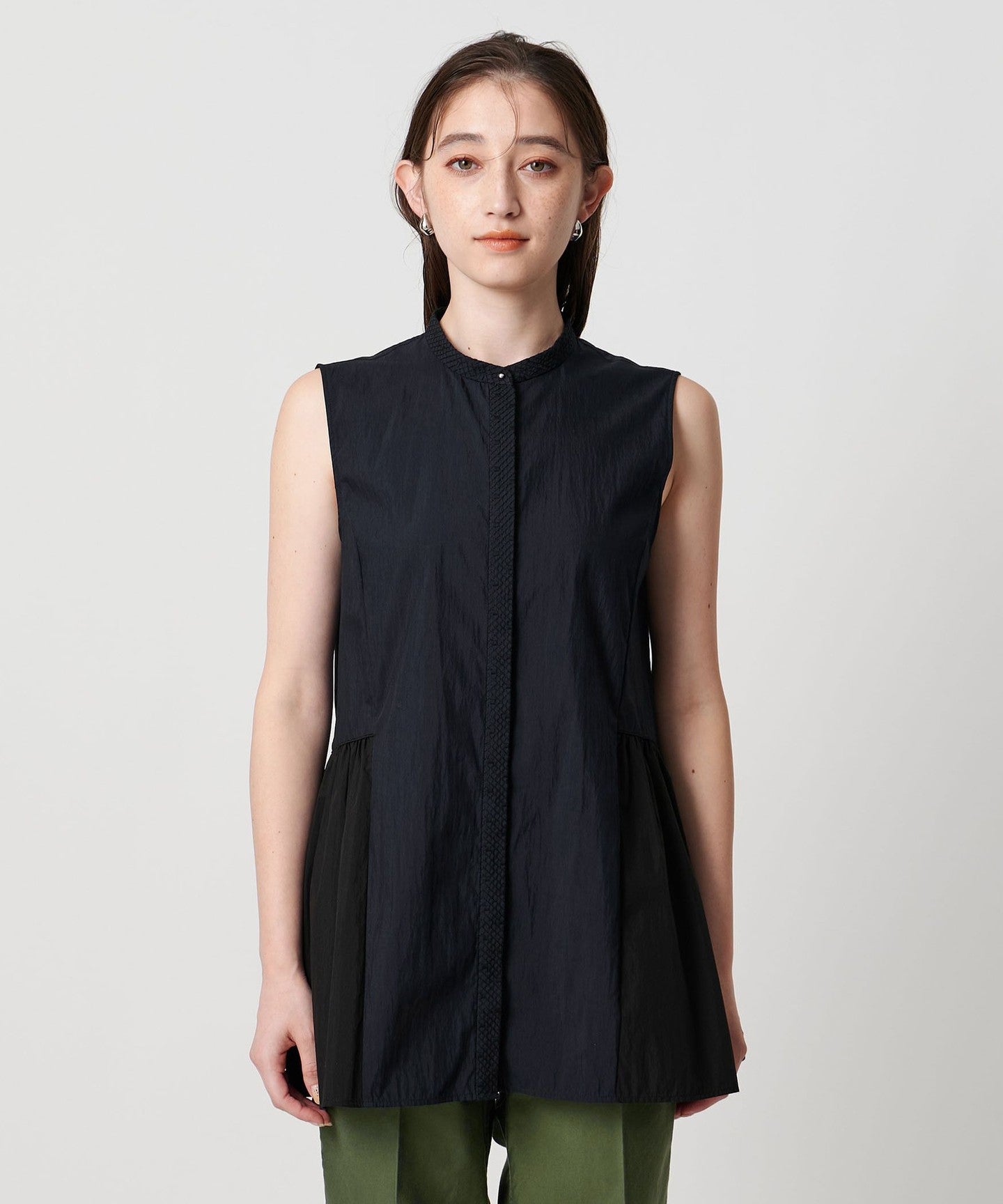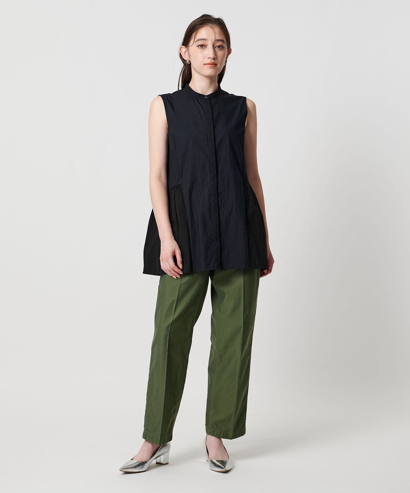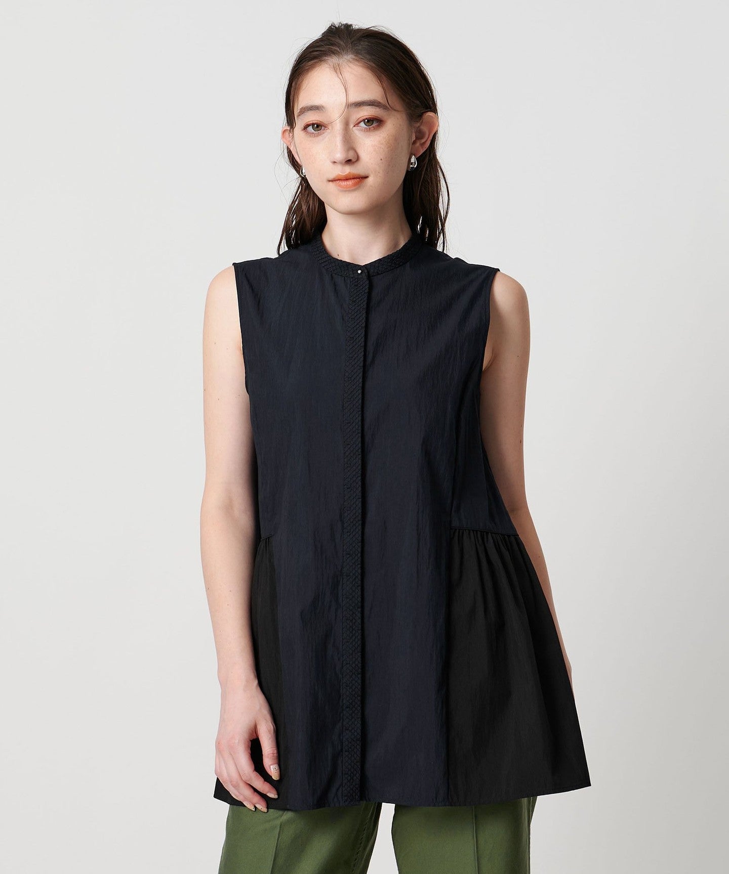 The flared hem design goes well with slim tapered pants or straight pants.