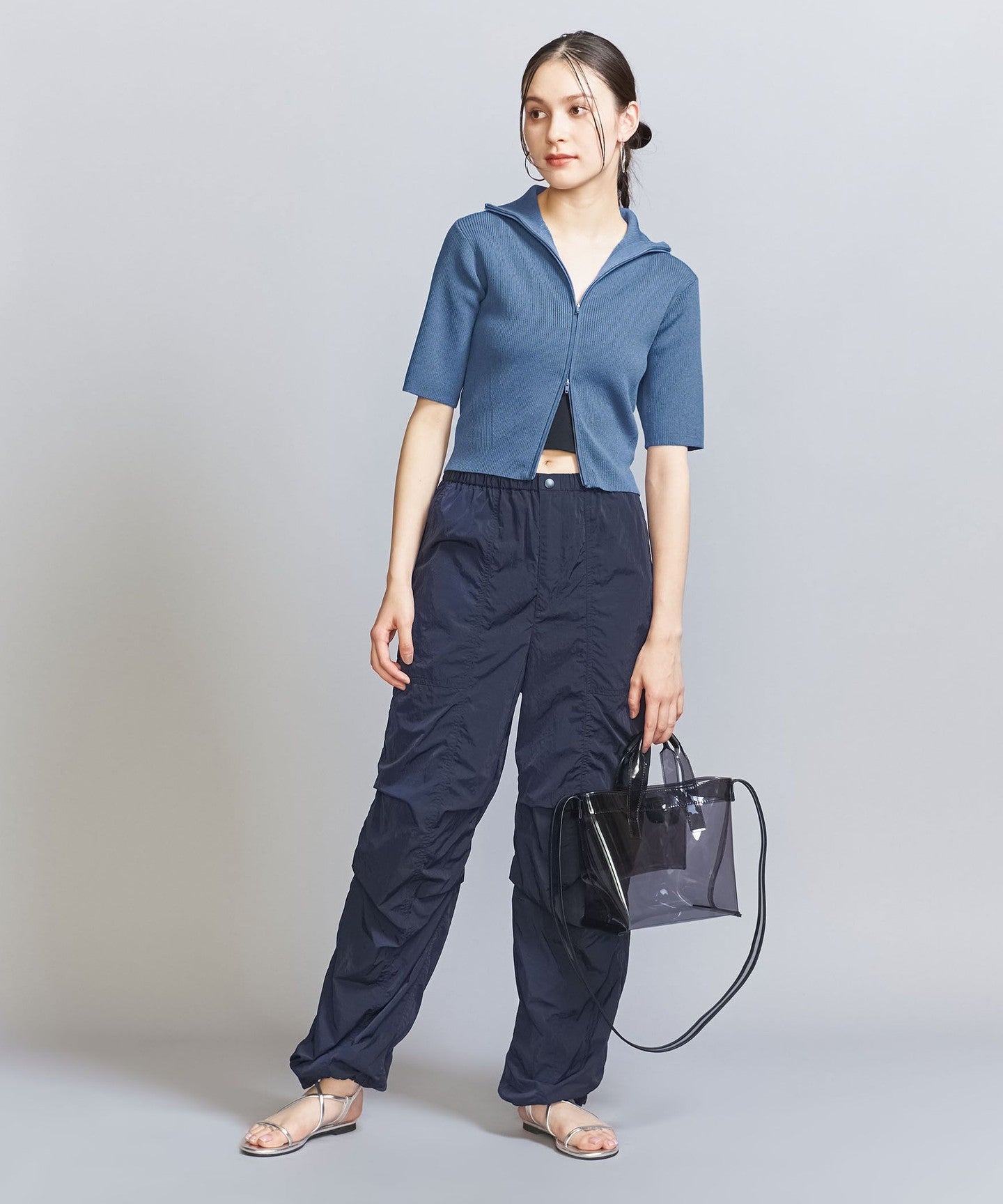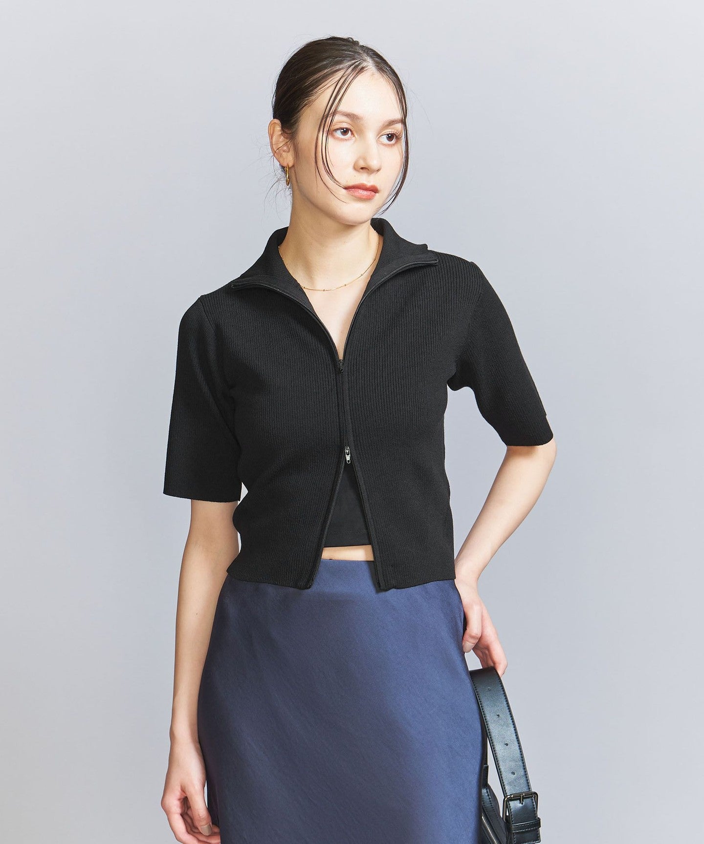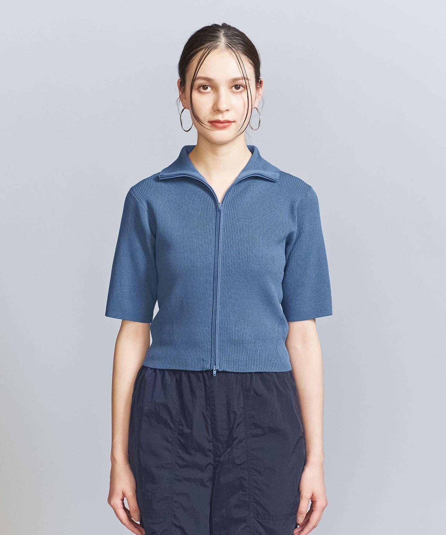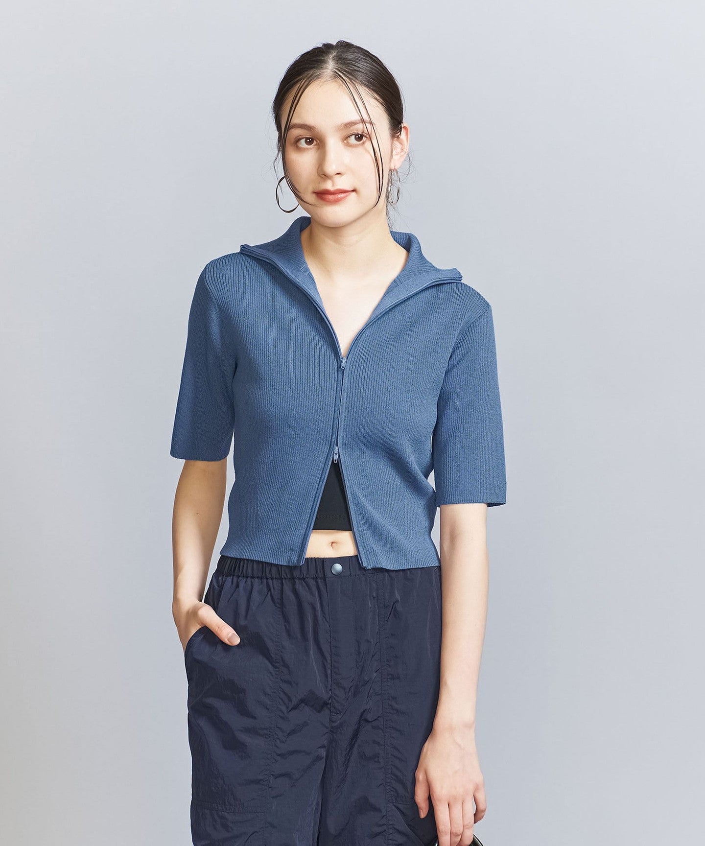 A compact, short-length zip cardigan made from a thin material that is easy to wear in midsummer.