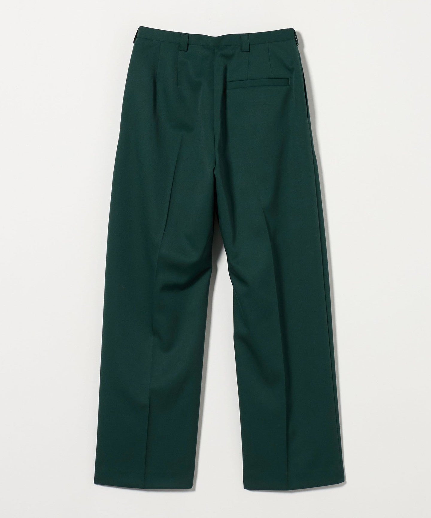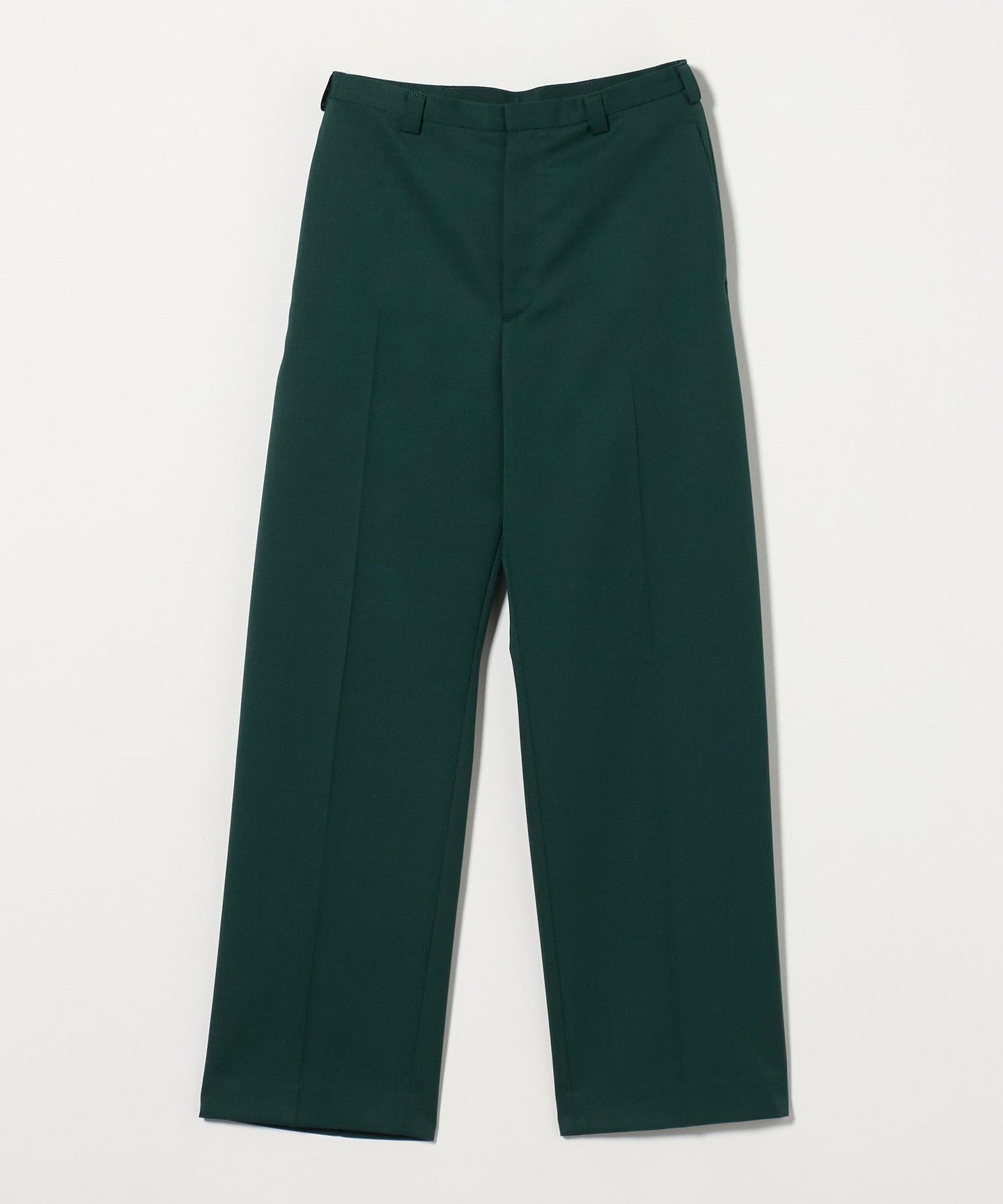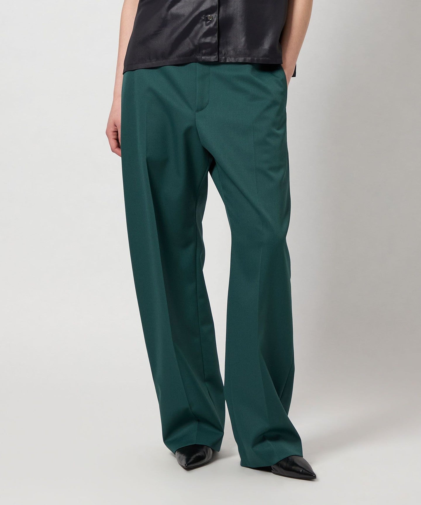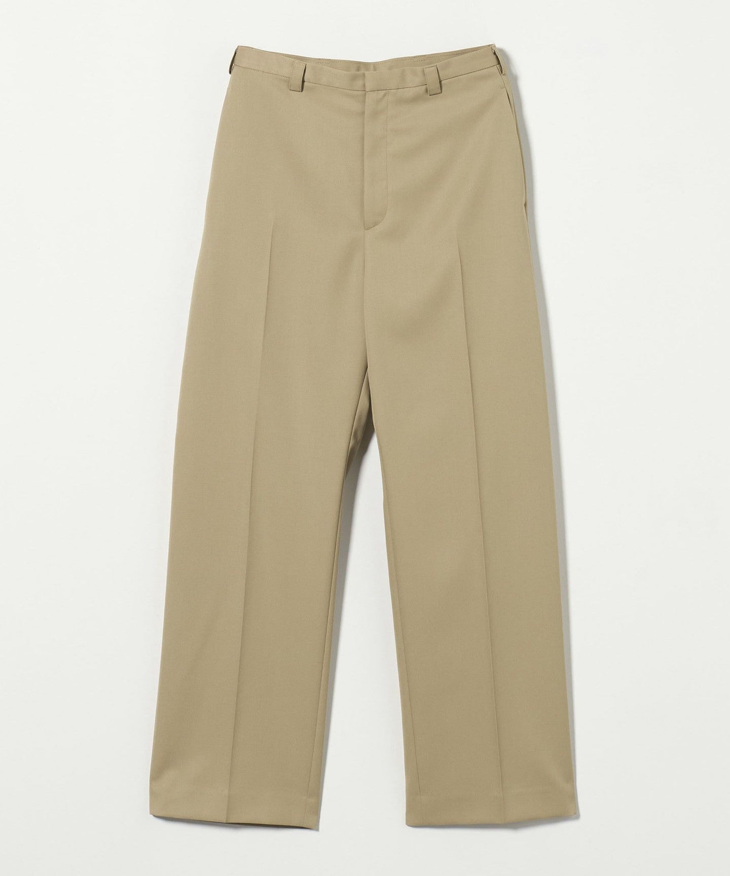 This masculine item is made from a fabric with just the right amount of tension, woven at a high density from a blend of polyester and wool, but it also features a clean silhouette with a center crease that emphasizes the vertical lines.