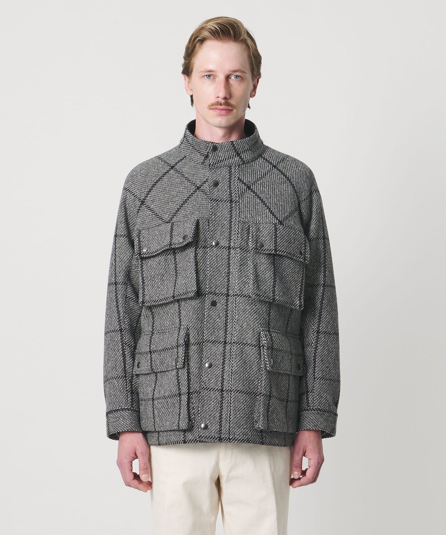 ブリティッシュなモーターサイクルブルゾンをベースにデザインしたスタンドカラージャケット。
