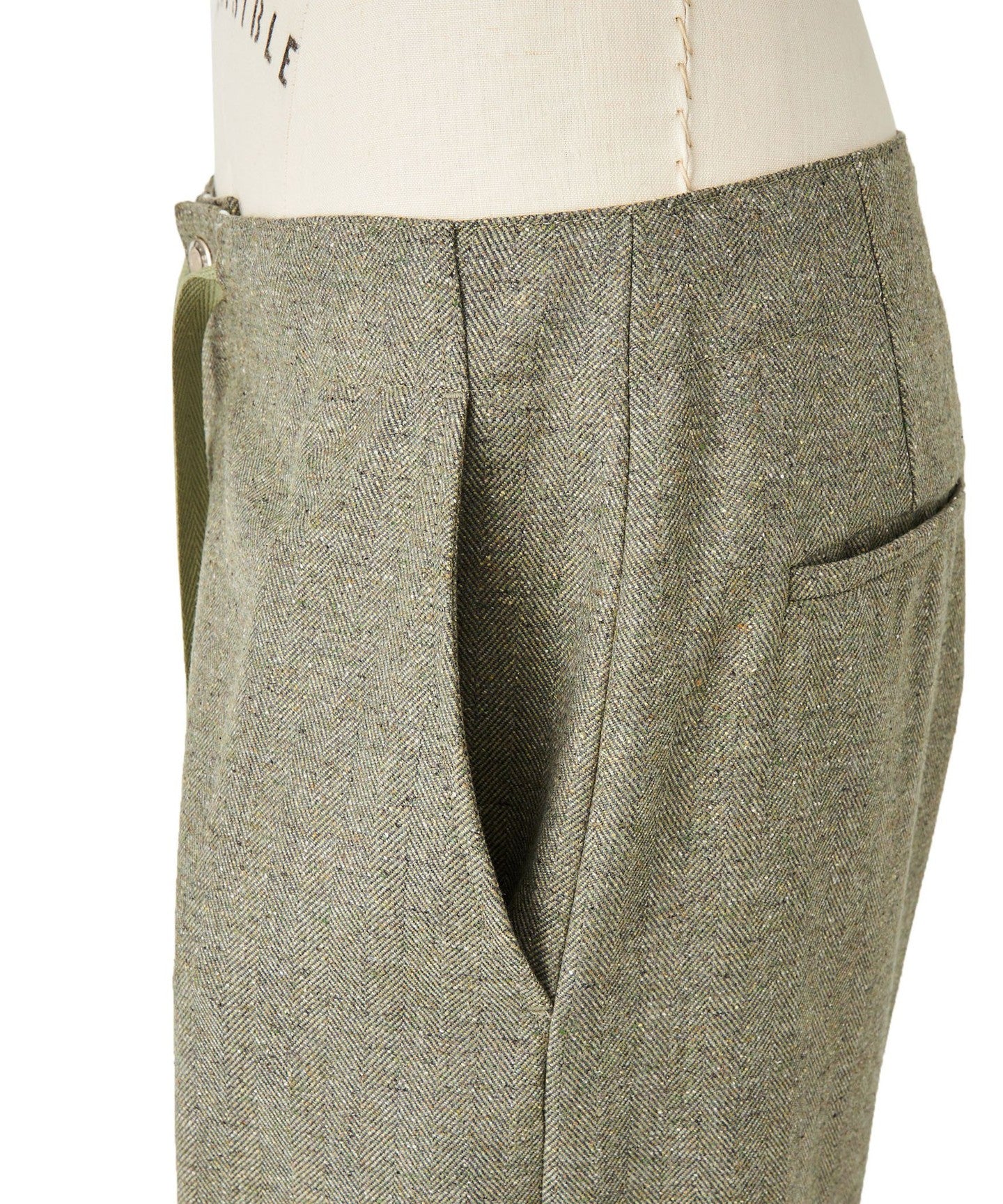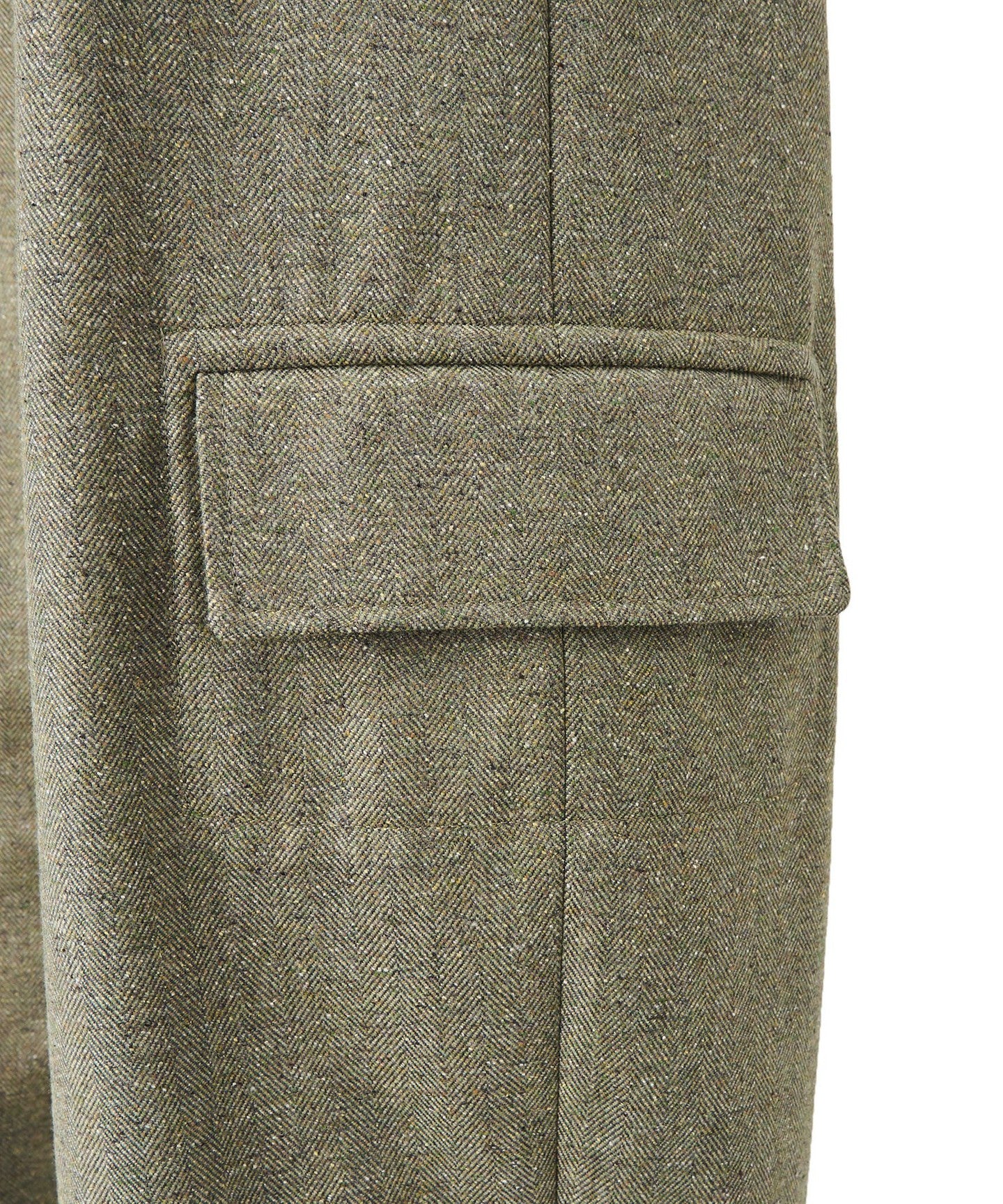 These pants feature a silhouette that curves slightly towards the hem and flap pockets as an accent.
