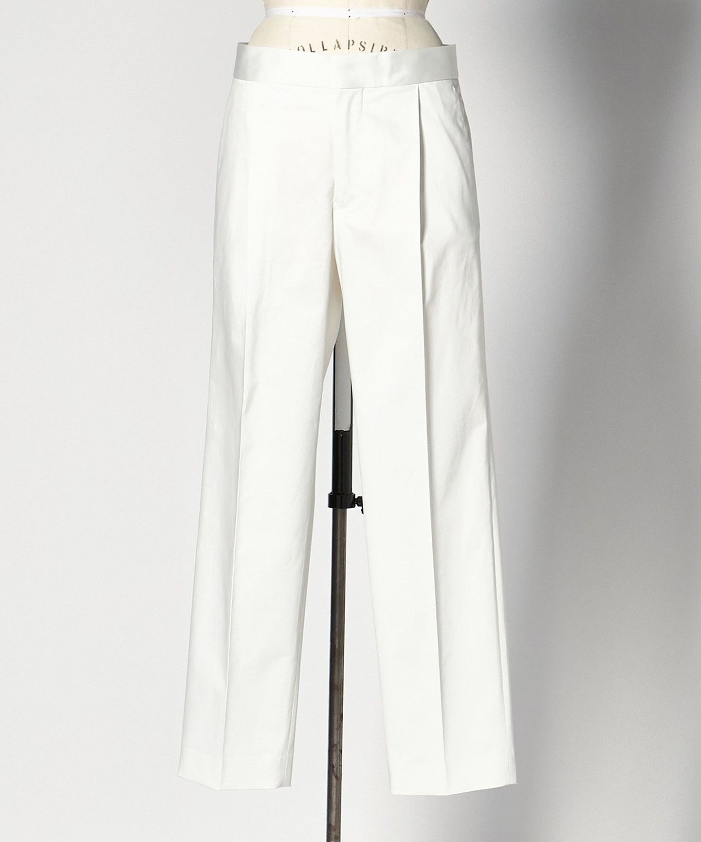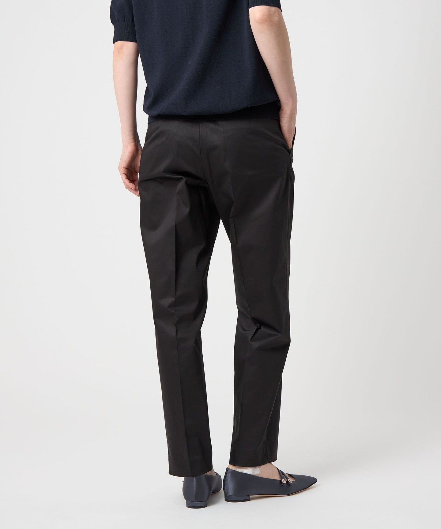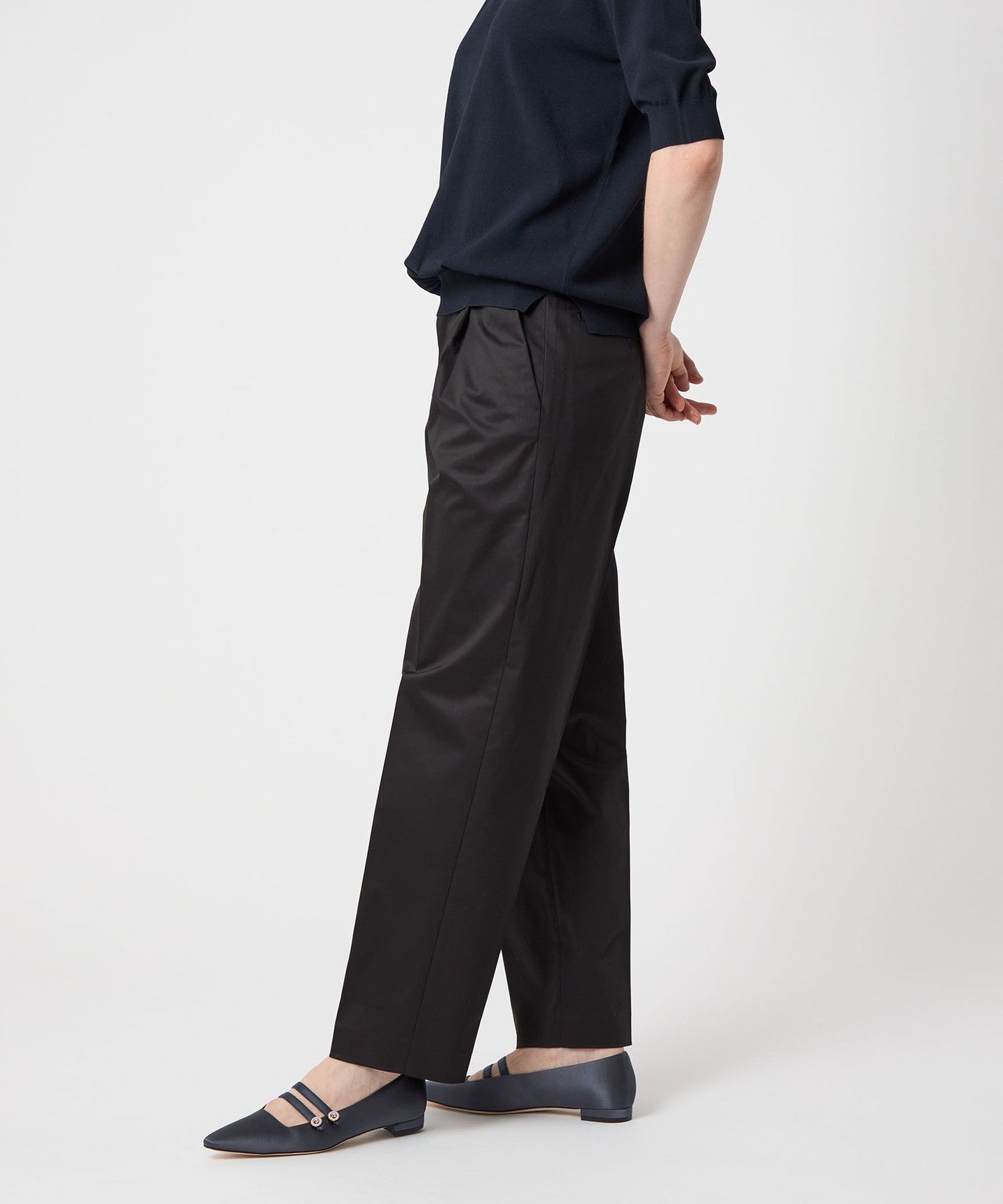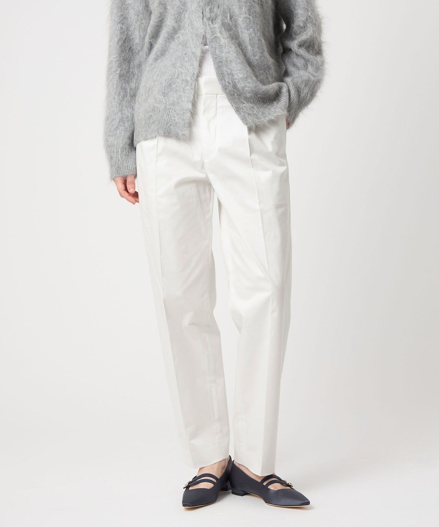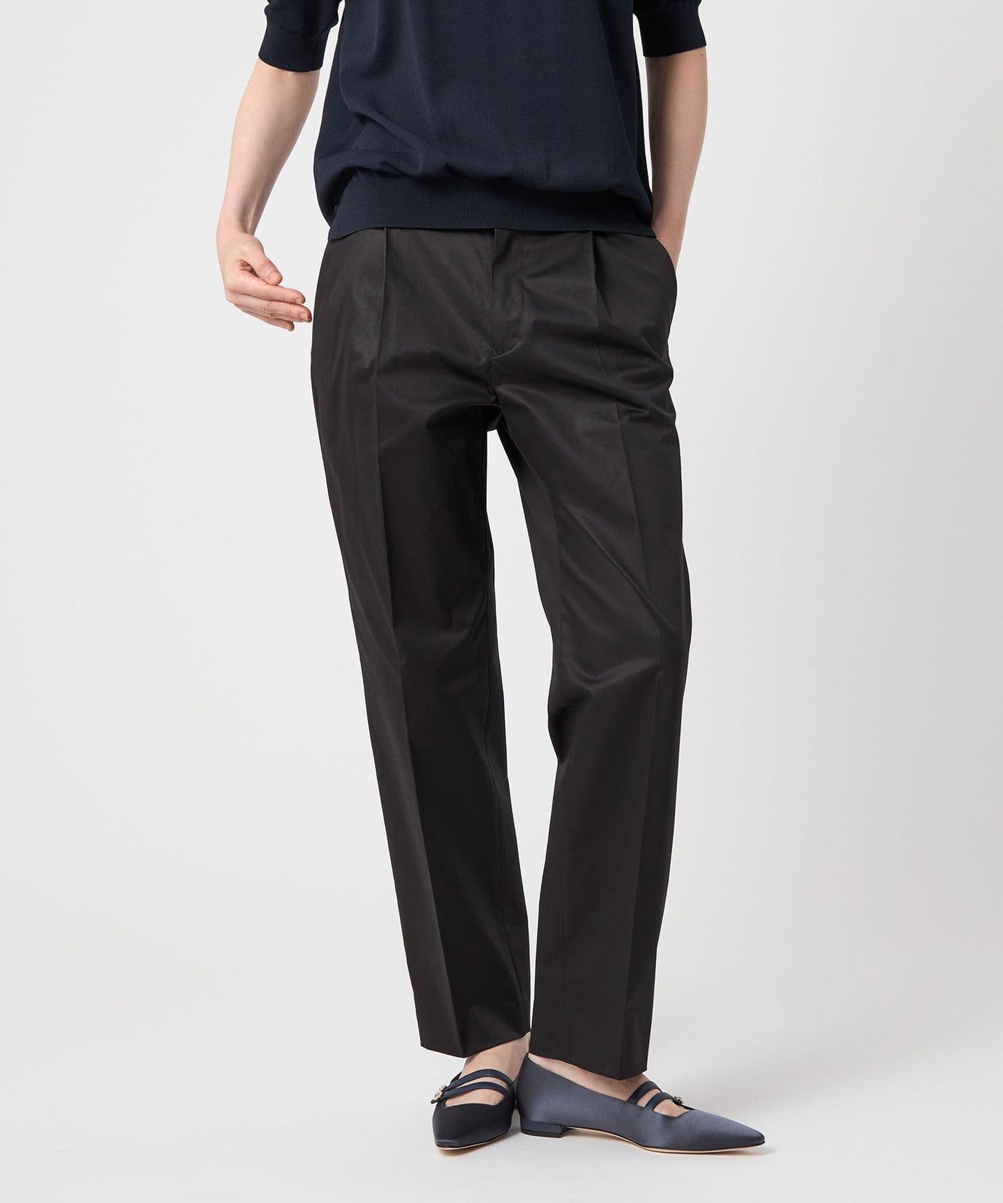 These pants have a single pleat around the waist for a relaxed fit and a tapered silhouette towards the hem.