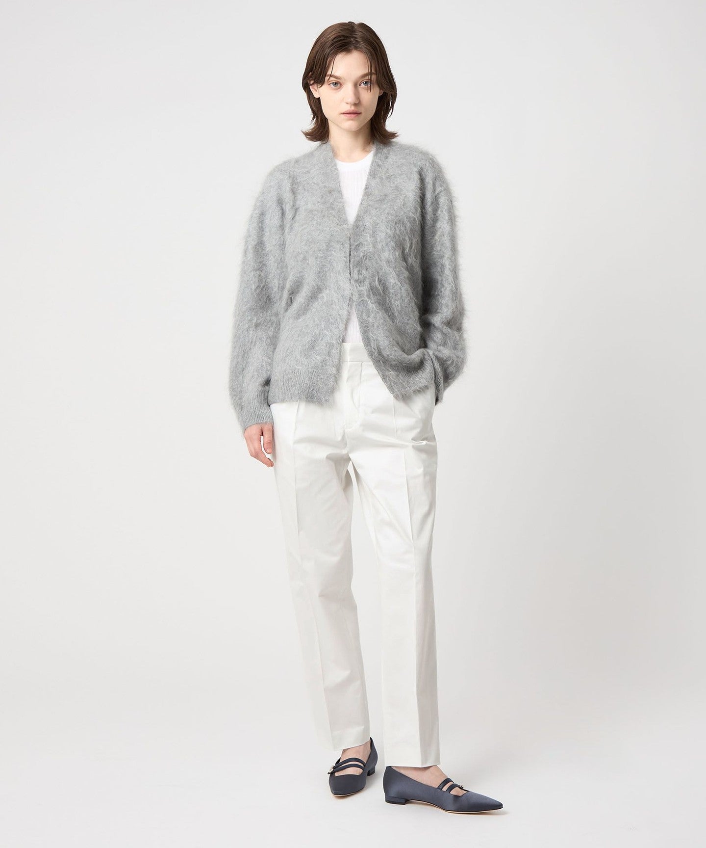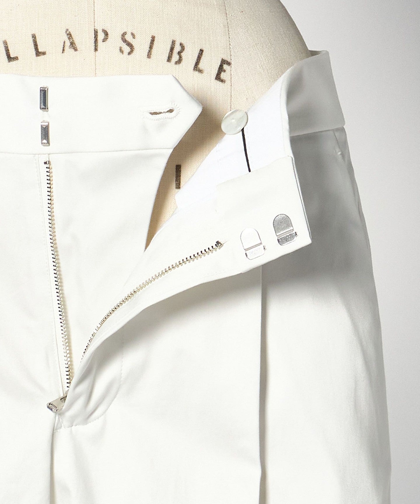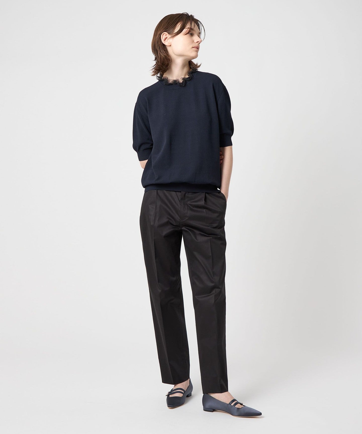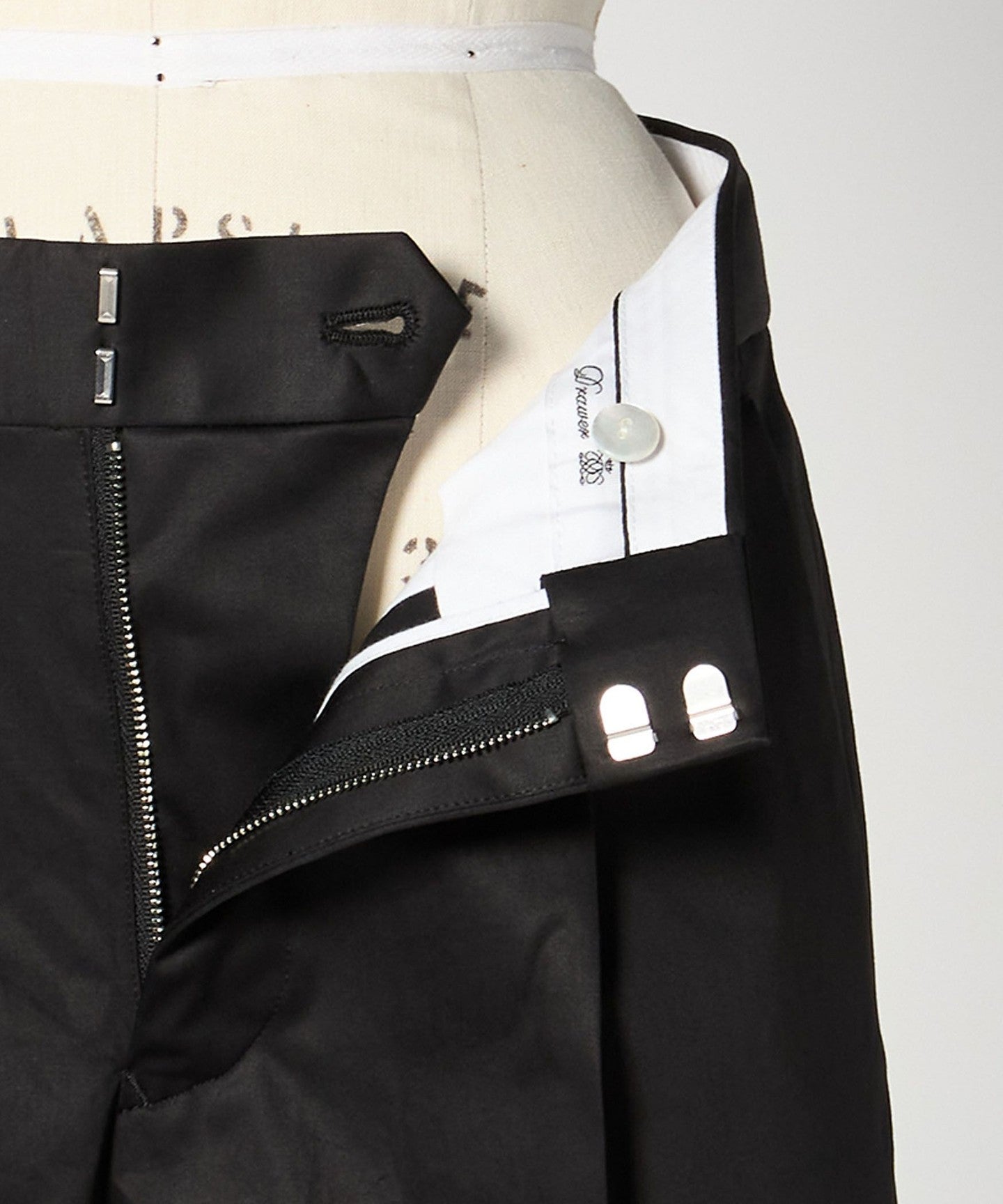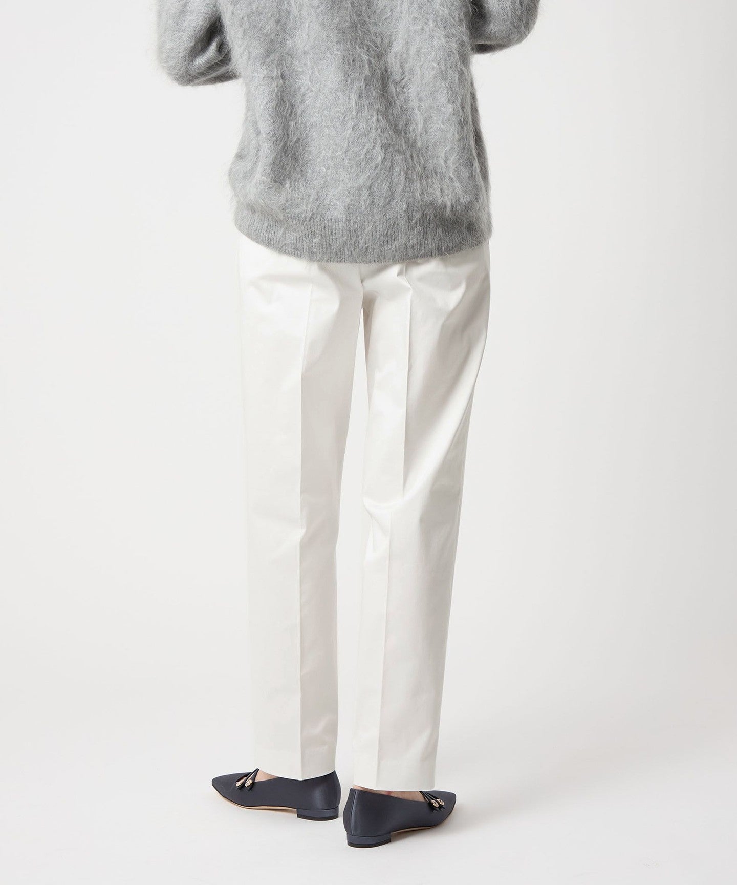 These pants have a single pleat around the waist for a relaxed fit and a tapered silhouette towards the hem.