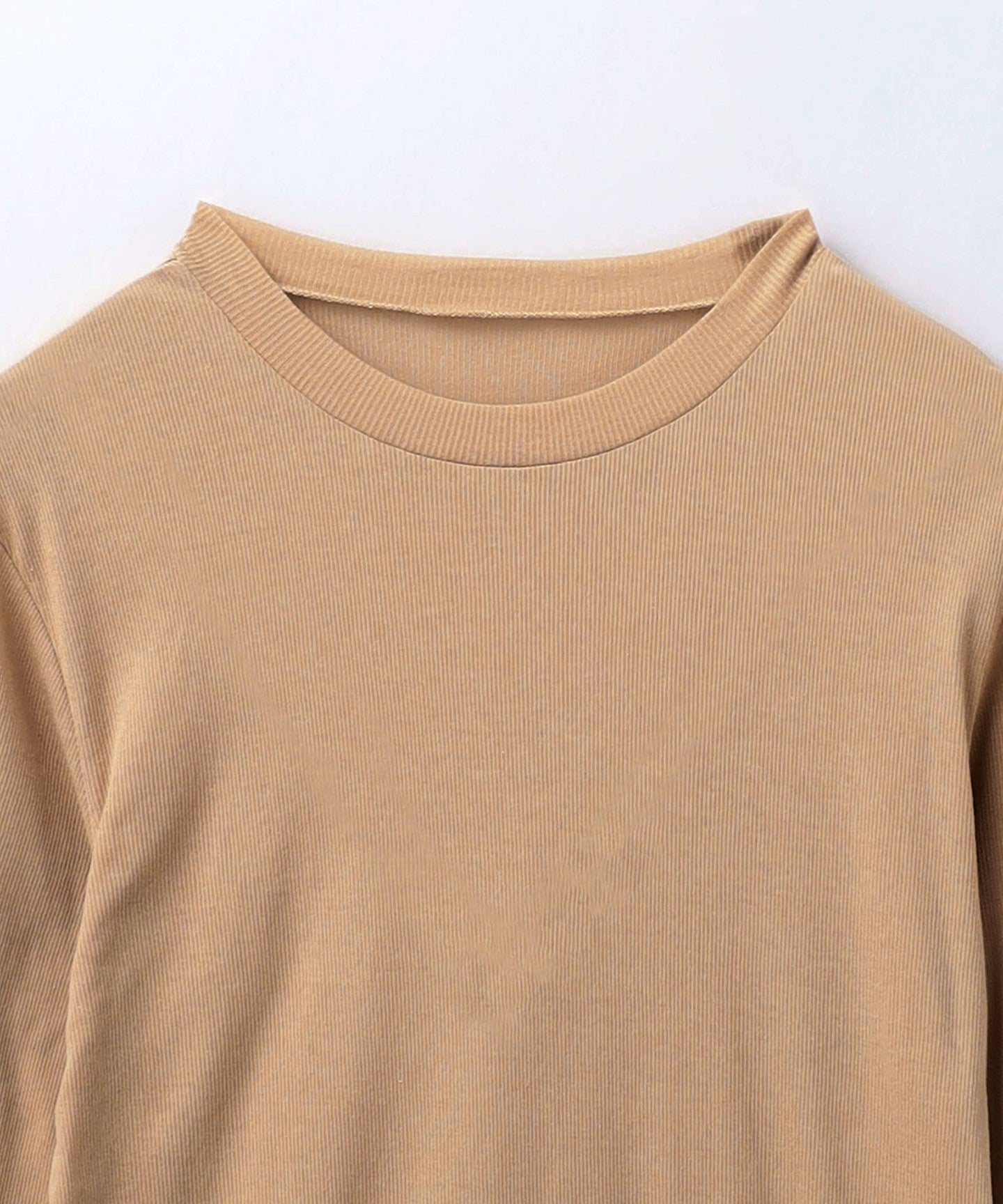 <6(ROKU)>Cotton Rib Crew Neck Cut and Sew