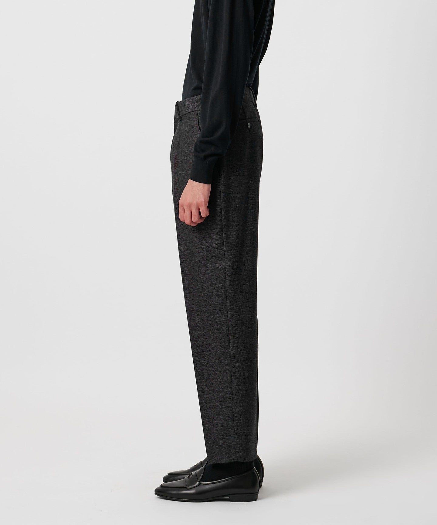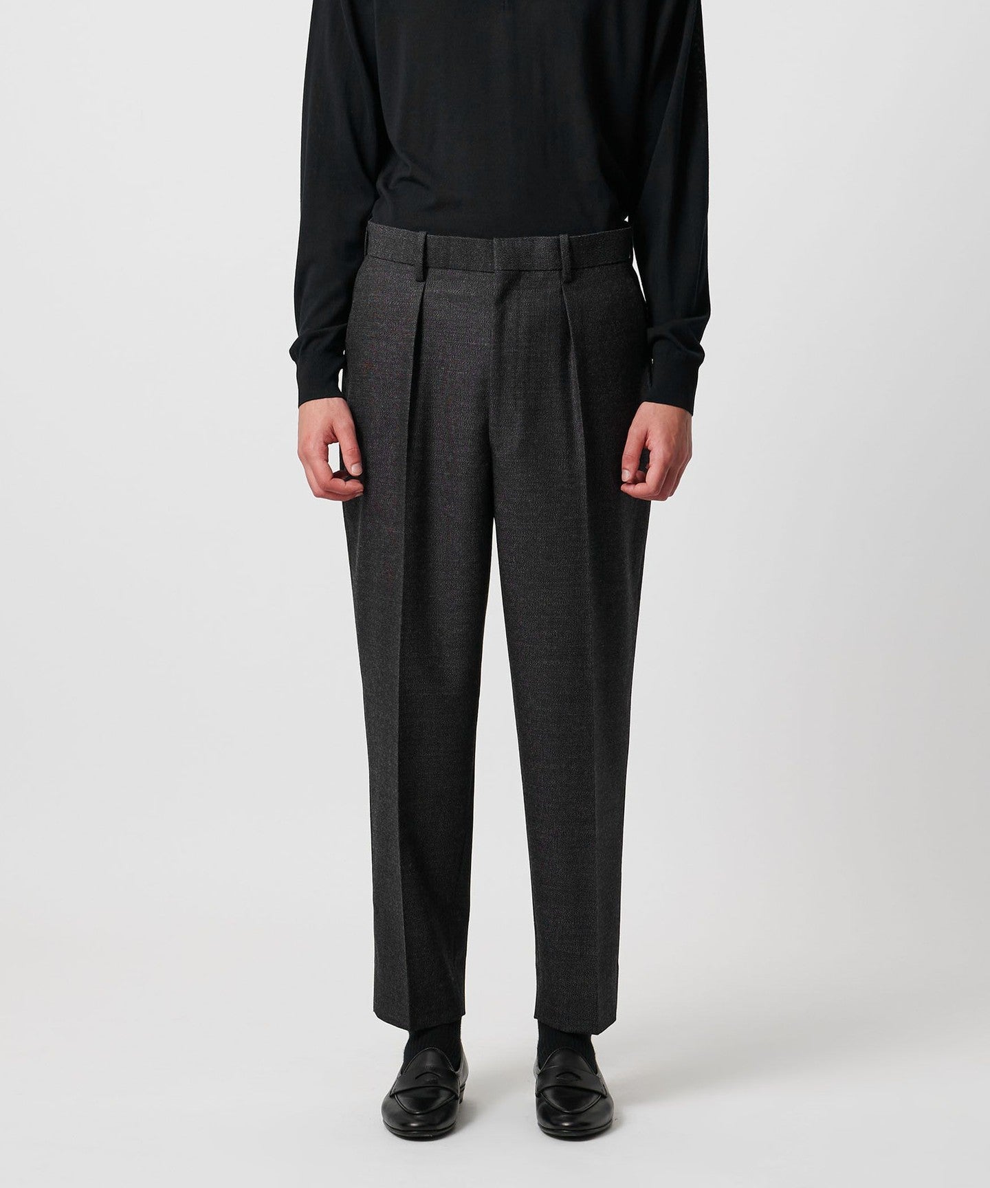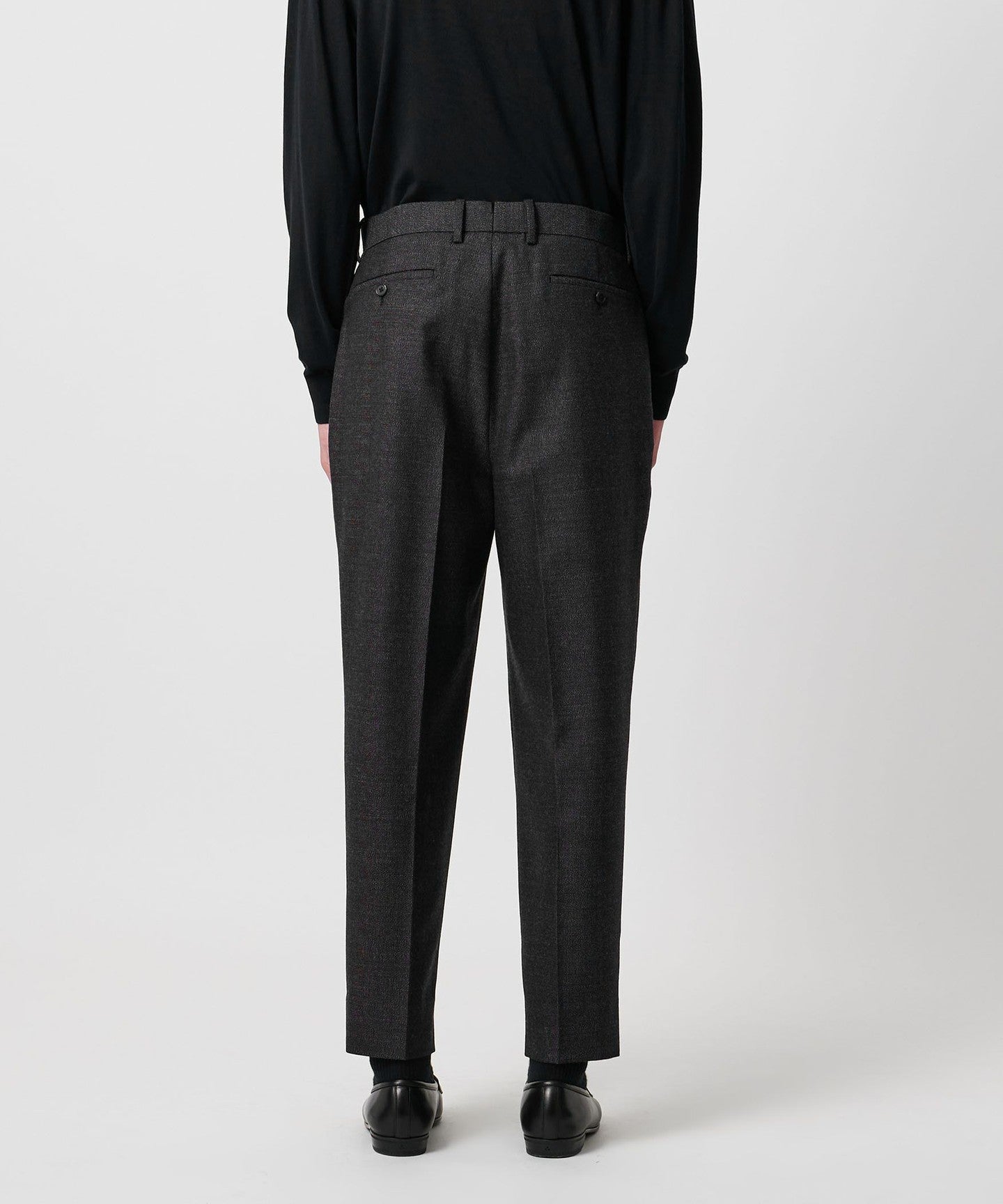 The classic color and texture created by the heathered yarns give it a voluminous feel. FABRIC The feeling is distinctive.