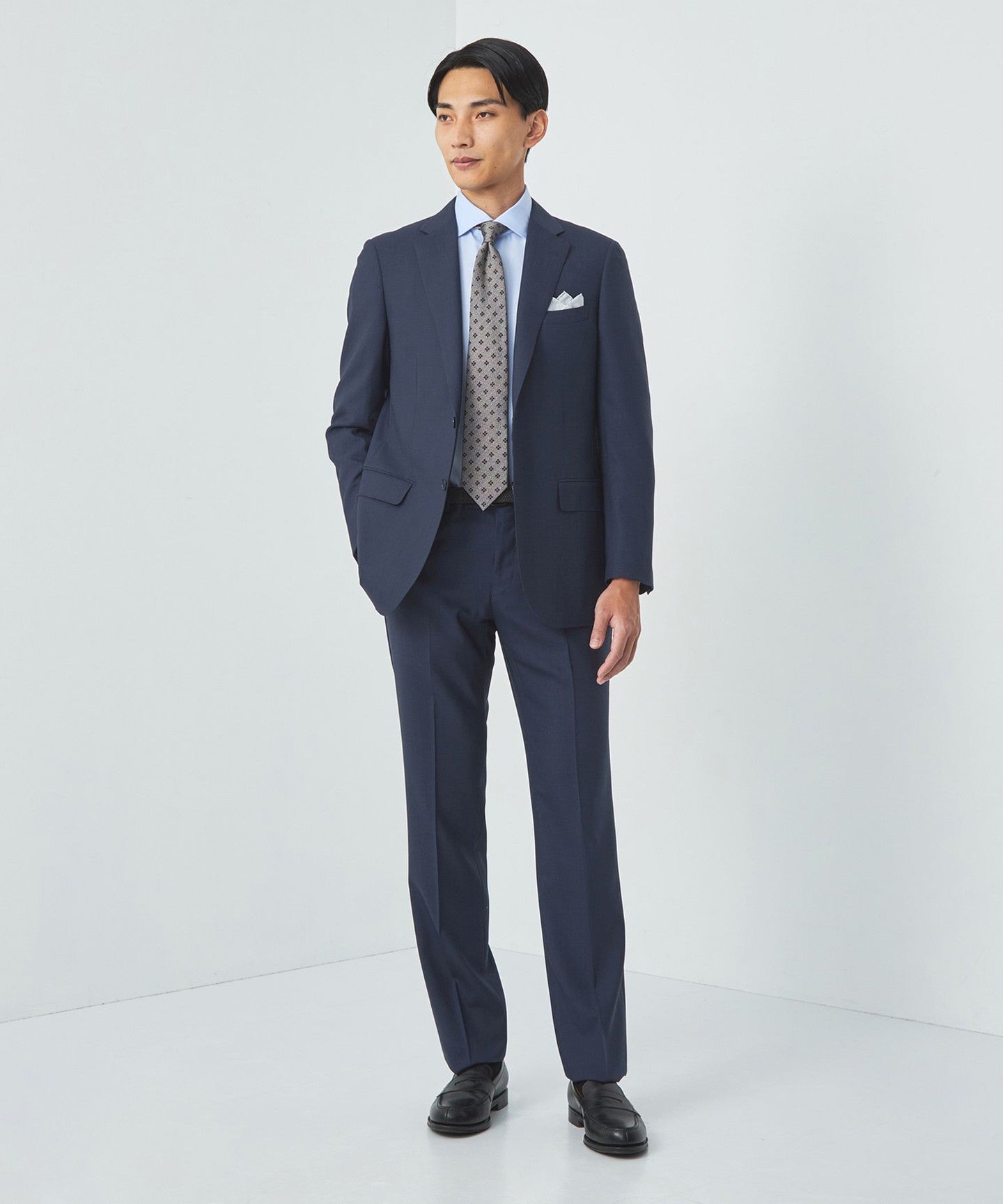 For navy, if you add contrast with a blue shirt and a navy tie, you can create a refreshing and sophisticated V-zone.