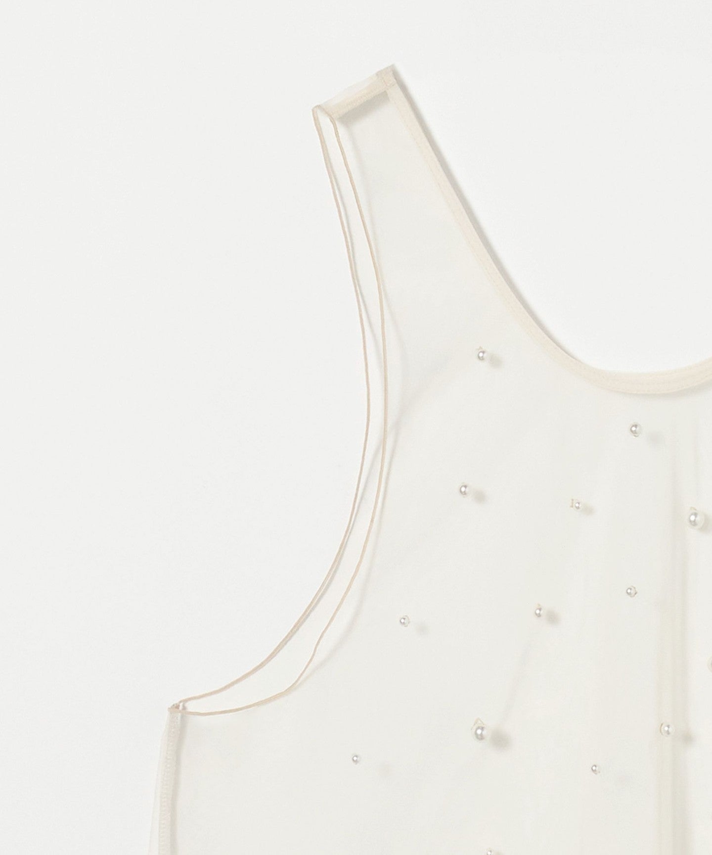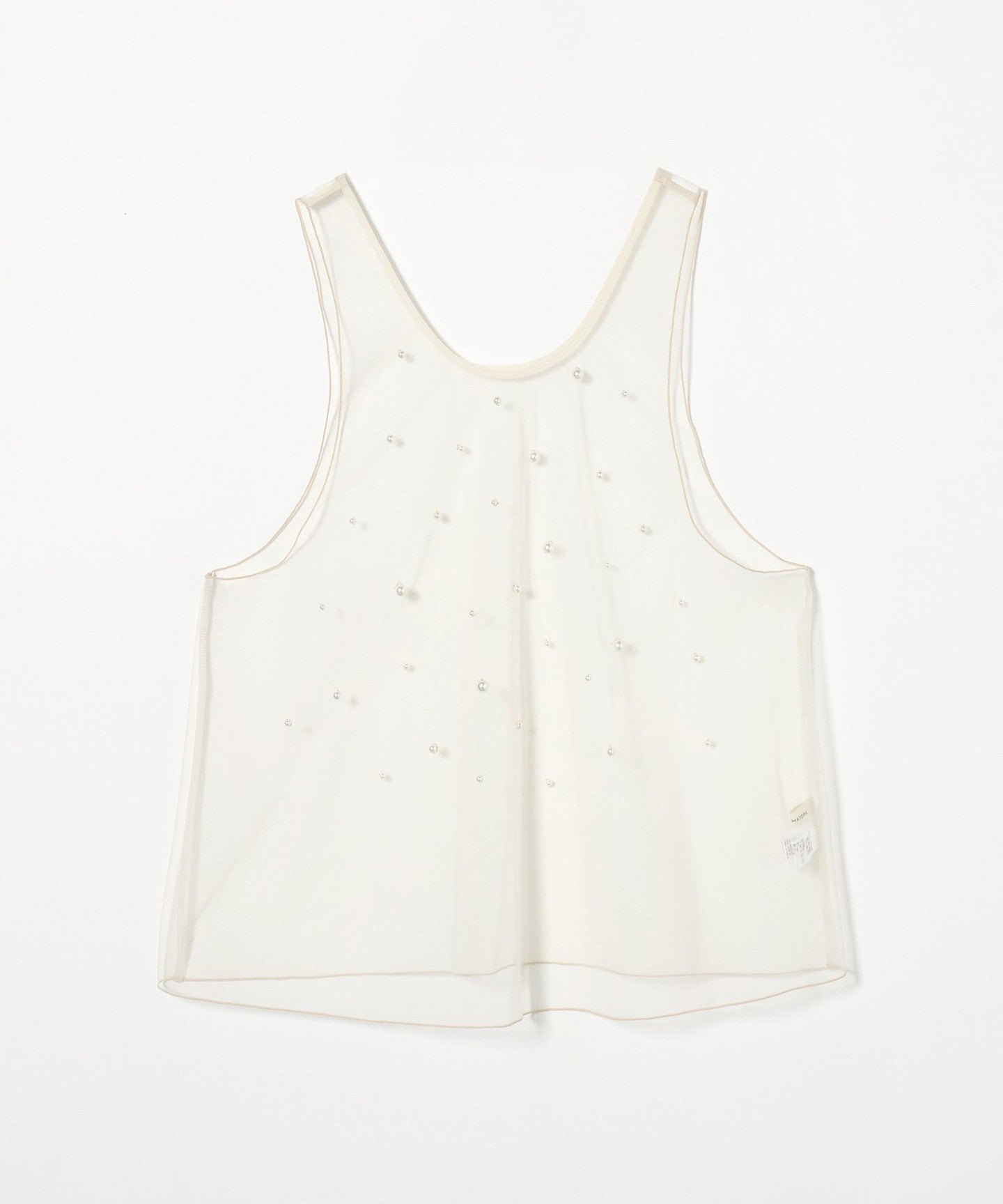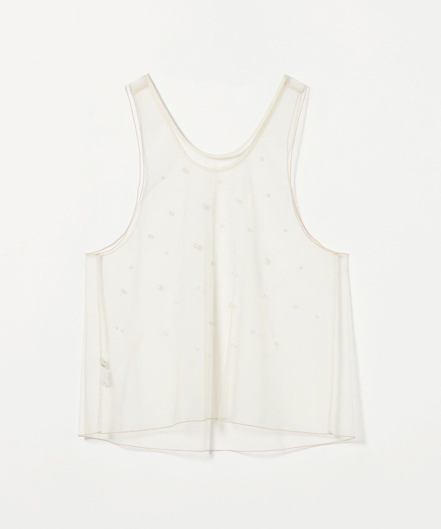 A sleeveless blouse with randomly placed imitation pearl beads.