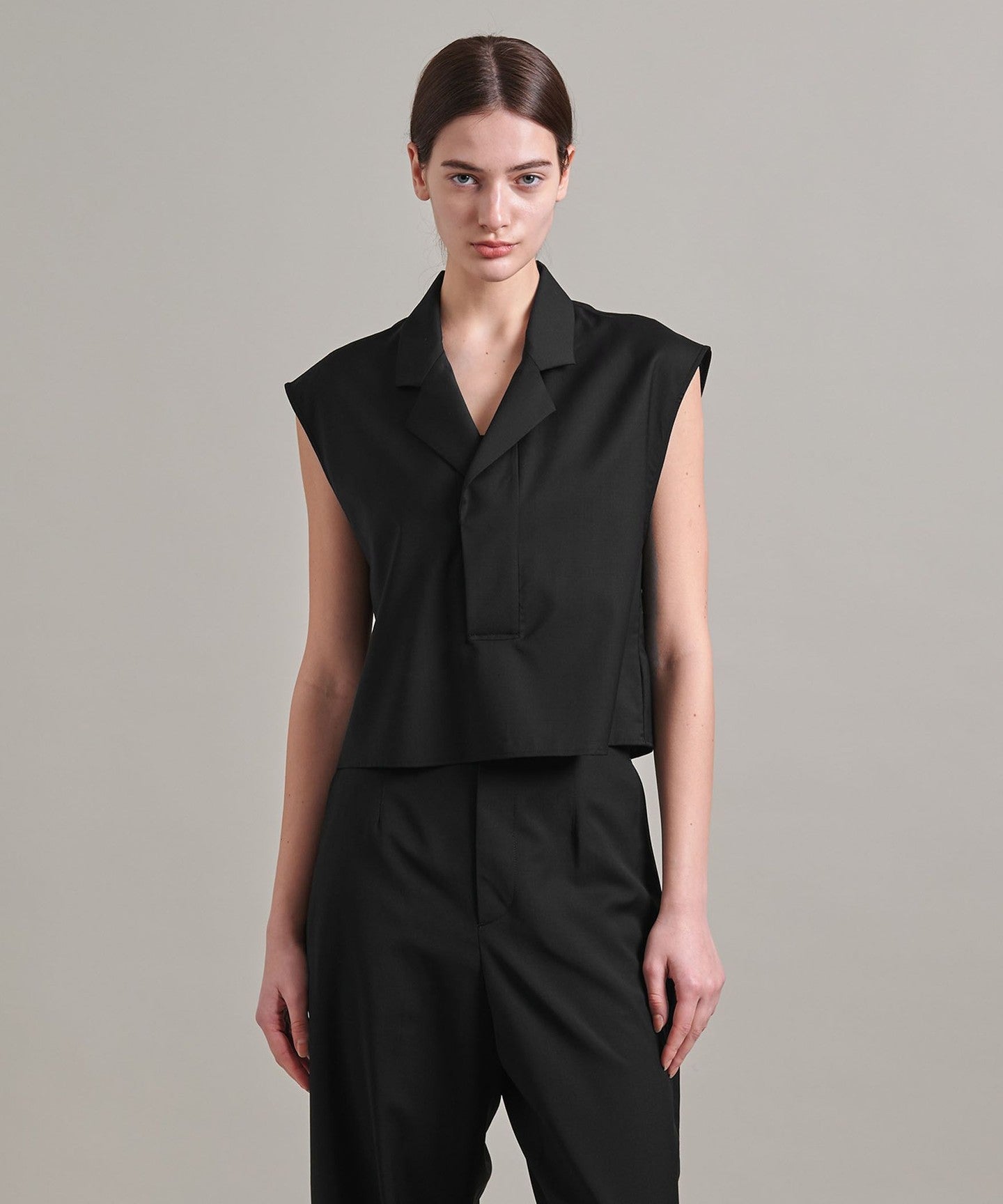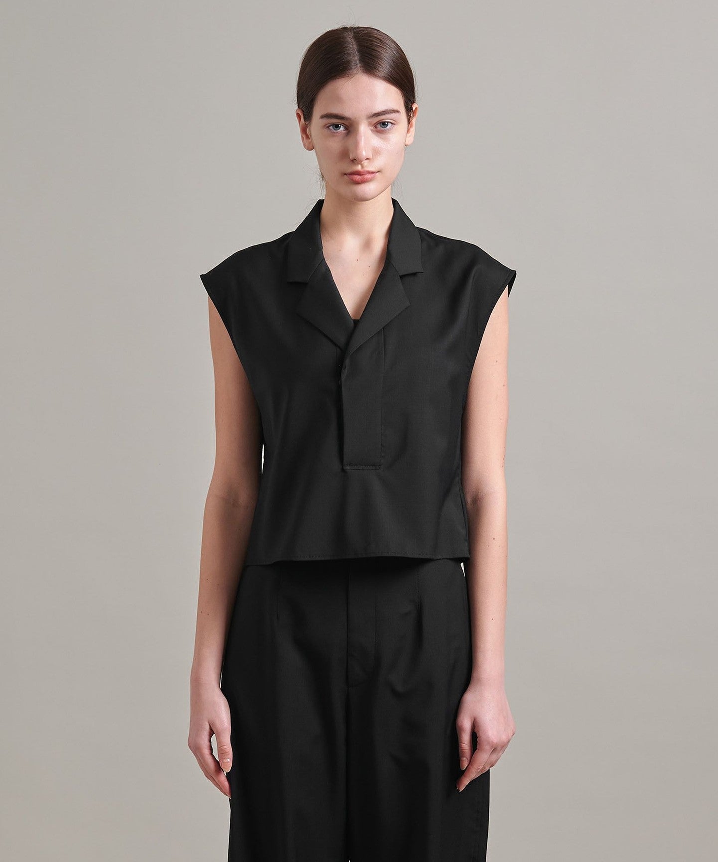 A sleeveless blouse that gives a sharp and sophisticated impression