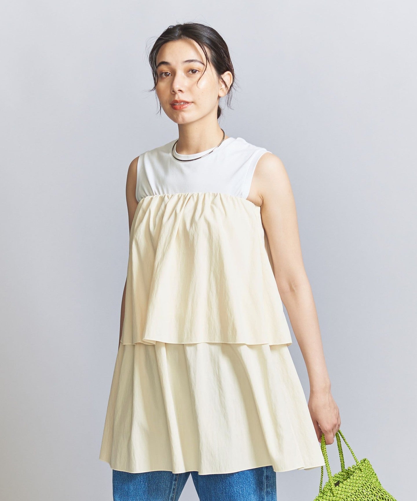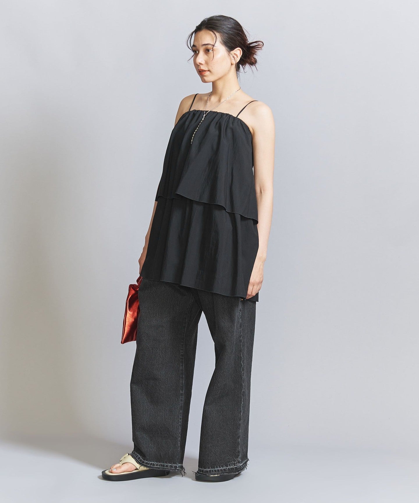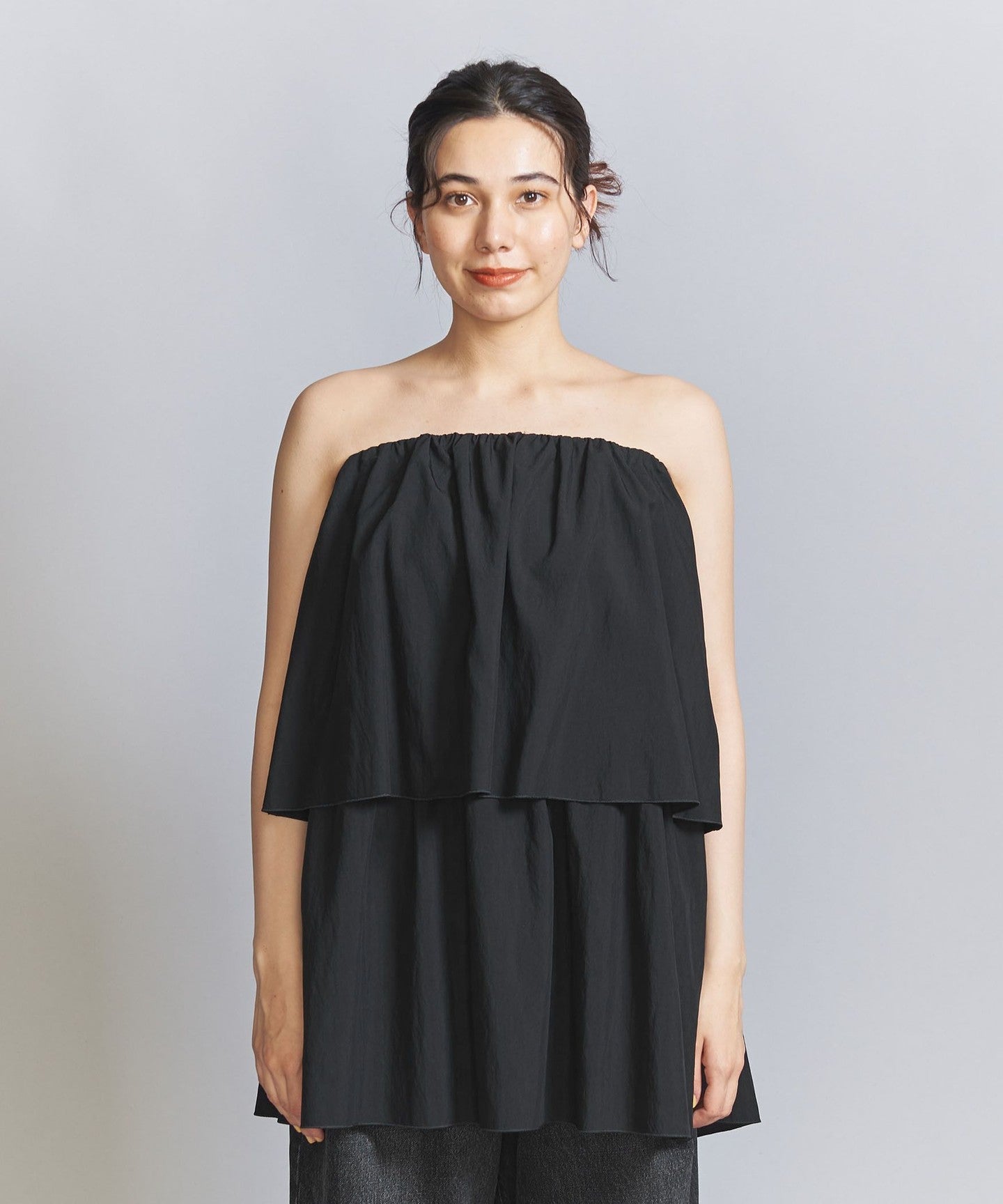 The elastic at the bust is set tight so that it can also be worn as a bare top, and the shoulder straps are removable, making it a two-way design.