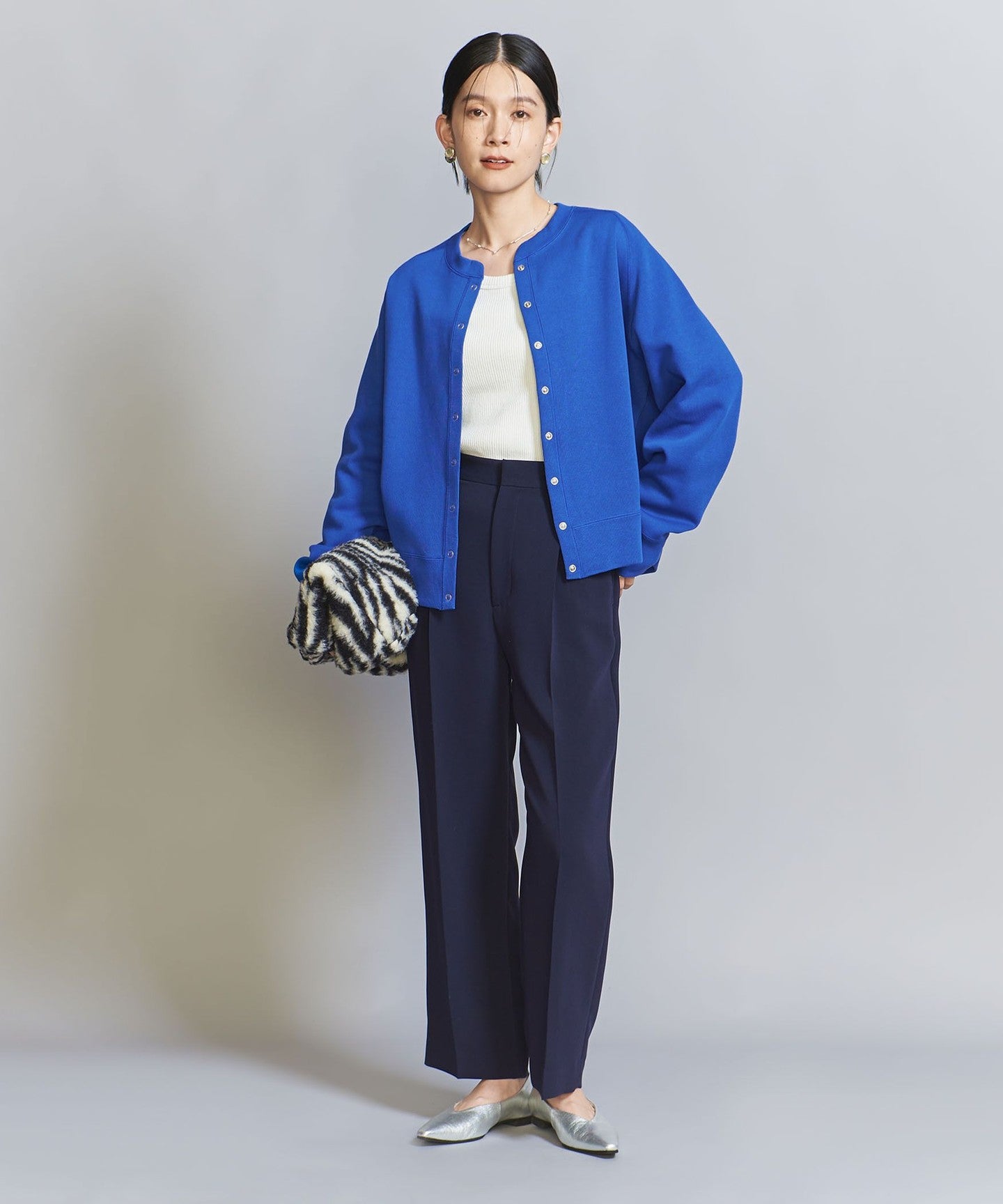 This item looks great worn as a single piece with the front fastened, or as a jacket when combined with prints or stripes.