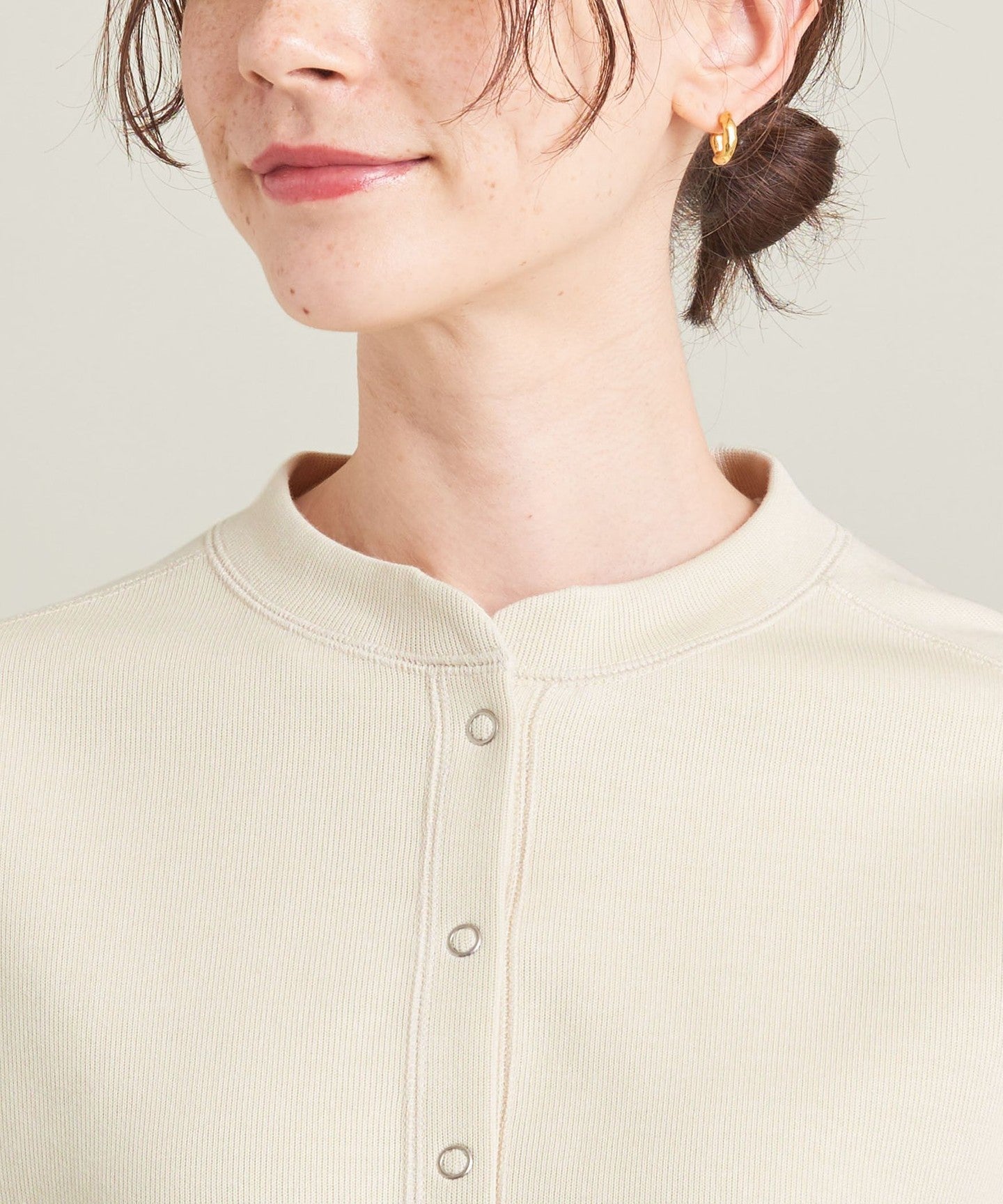 A crew neck with ring buttons as the highlight CARDIGAN .