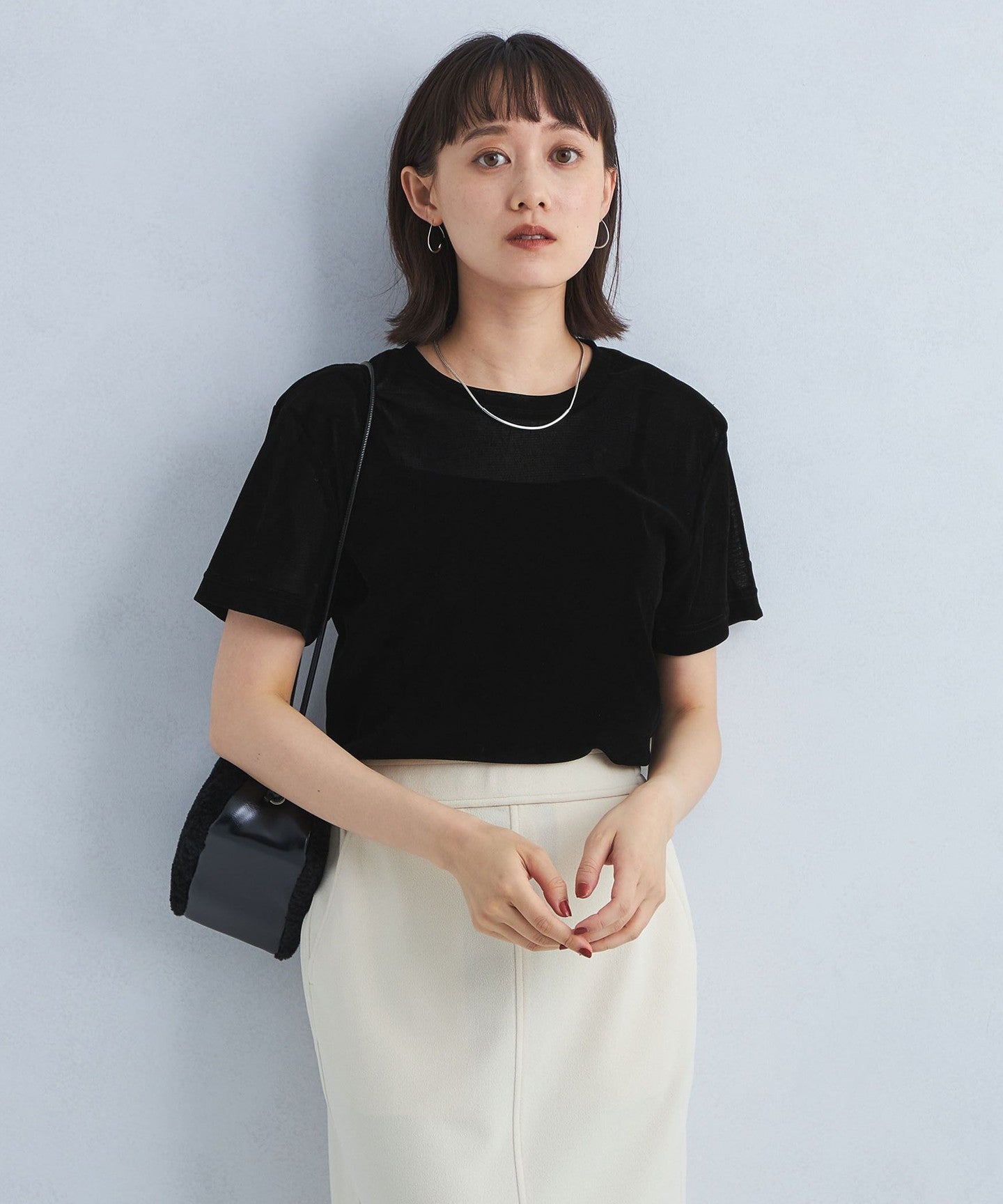 The compact silhouette makes it a perfect balance when paired with wide pants or skirts.